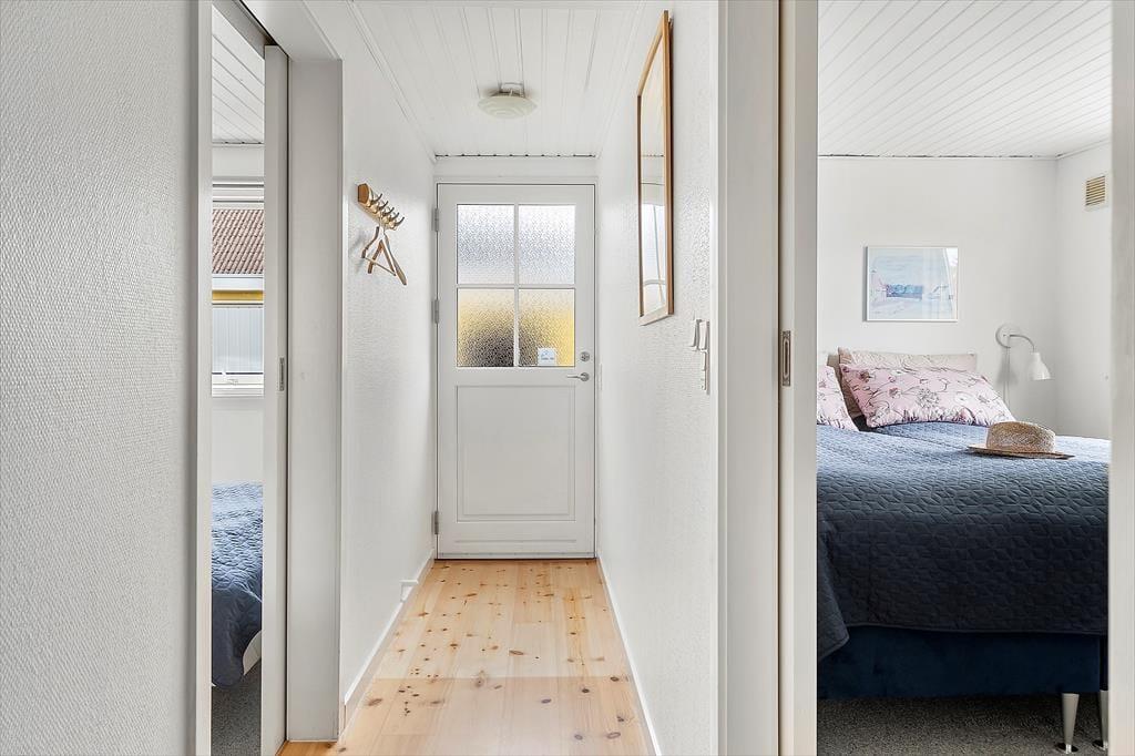 Badeværelset er praktisk indrettet med skydedør, og de to soveværelser tilbyder en rolig oase til natten, med en dobbeltseng på 180 cm i det ene og en 140 cm dobbeltseng i det andet. Sommerhuset er designet med handicapvenlige hensyn, da der er en rampe op til hoveddøren, hvilket giver alle gæster mulighed for at nyde ferien uden besvær.