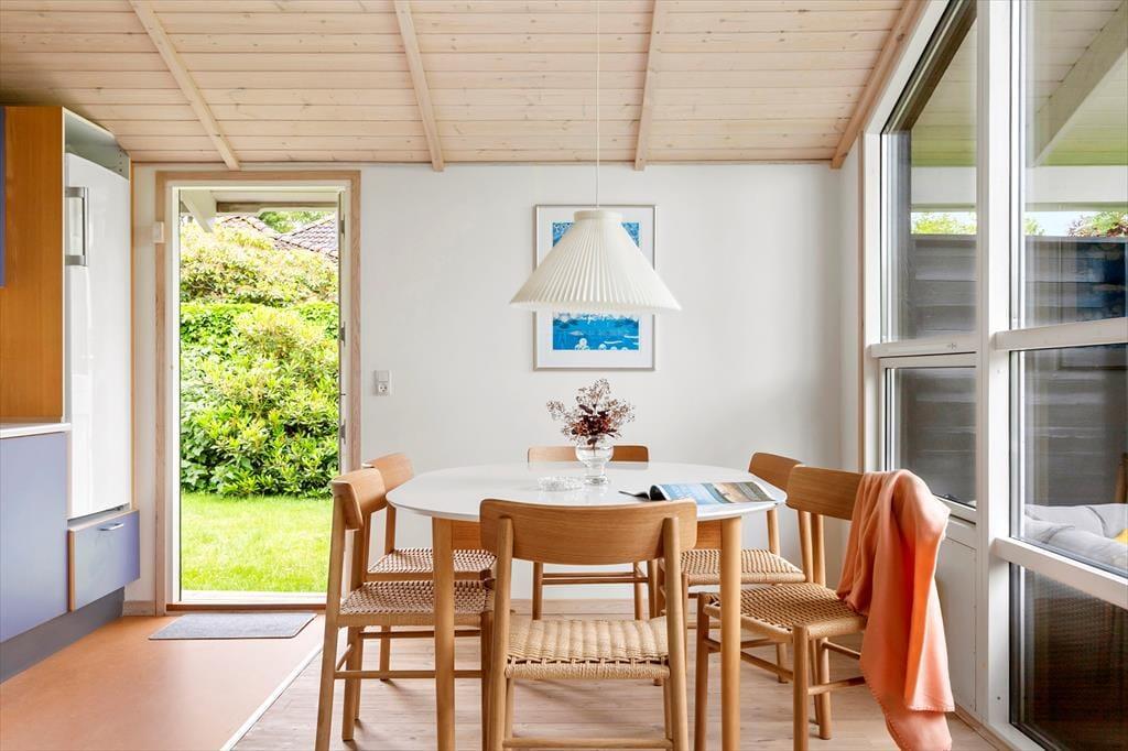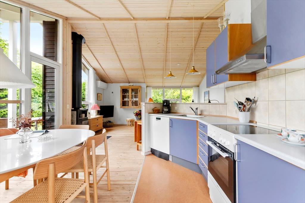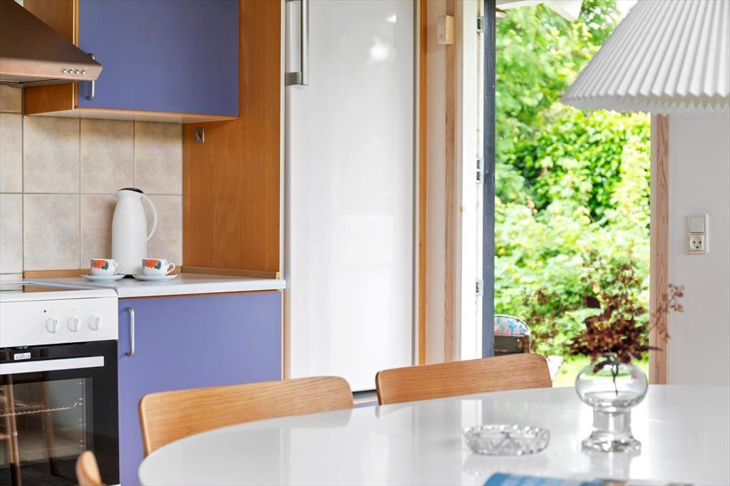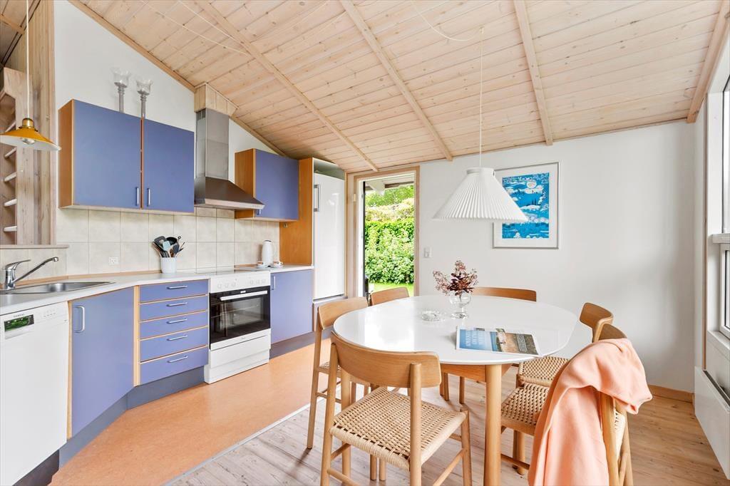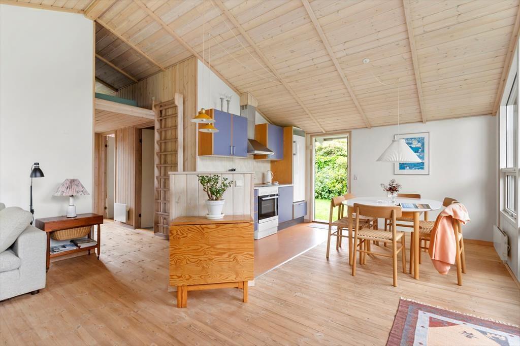 Køkkenet og spiseområdet er åbent og funktionelt indrettet, så du kan nyde måltider i en uformel og hyggelig atmosfære.