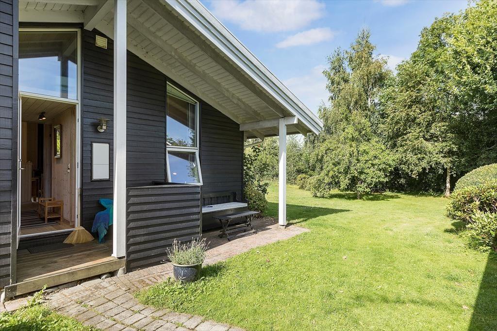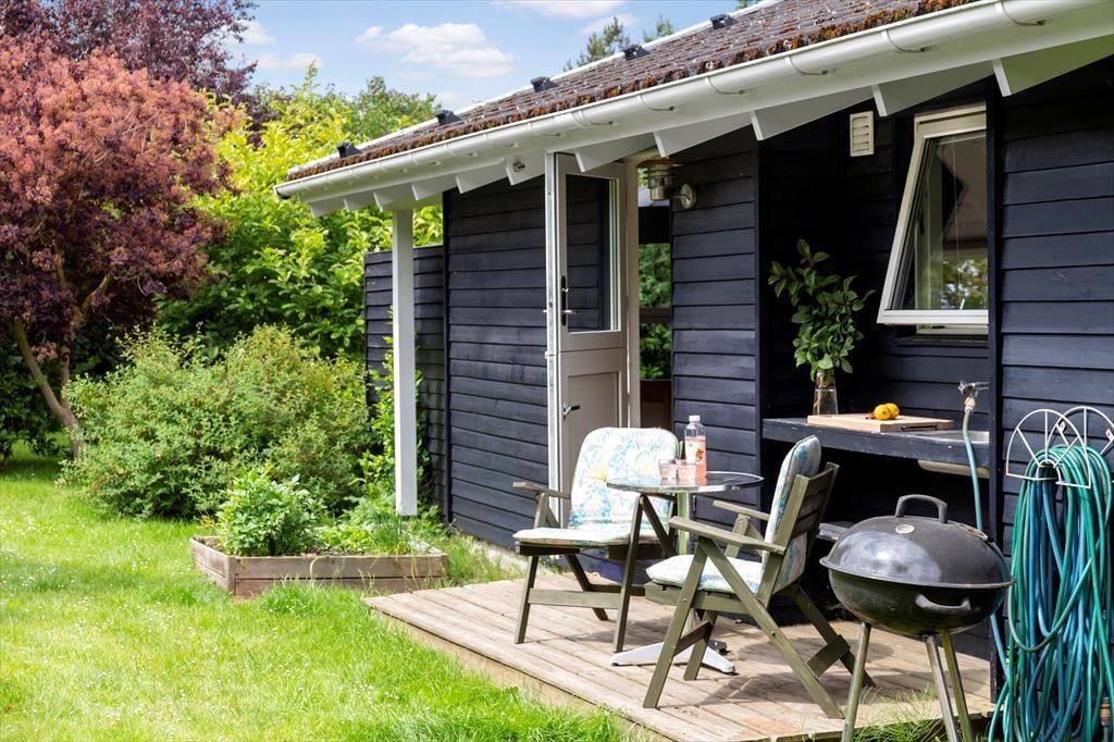 Sommerhuset har en dejlig terrasse og have, hvor du kan starte dagen med en kop kaffe i morgensolen. Om eftermiddagen kan du læne dig tilbage med en god bog, mens du nyder havbrisen og duften af sommer.