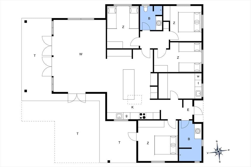Sommerhuset har flere gode soveværelser, hvor du kan vågne op til lyden af havet i det fjerne. Med to badeværelser er der god plads til hele familien, så ferien bliver komfortabel fra start til slut.