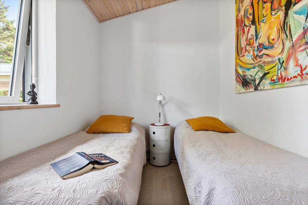 Huset fremstår velholdt og enkelt, uden at noget virker tilfældigt. De to gode værelser ligger roligt placeret og giver plads til både nattesøvn og en stille stund i løbet af dagen. Her er der tænkt i funktion og komfort, men uden at det tager opmærksomheden fra det vigtigste: at ferien føles ukompliceret og rar fra første dag.