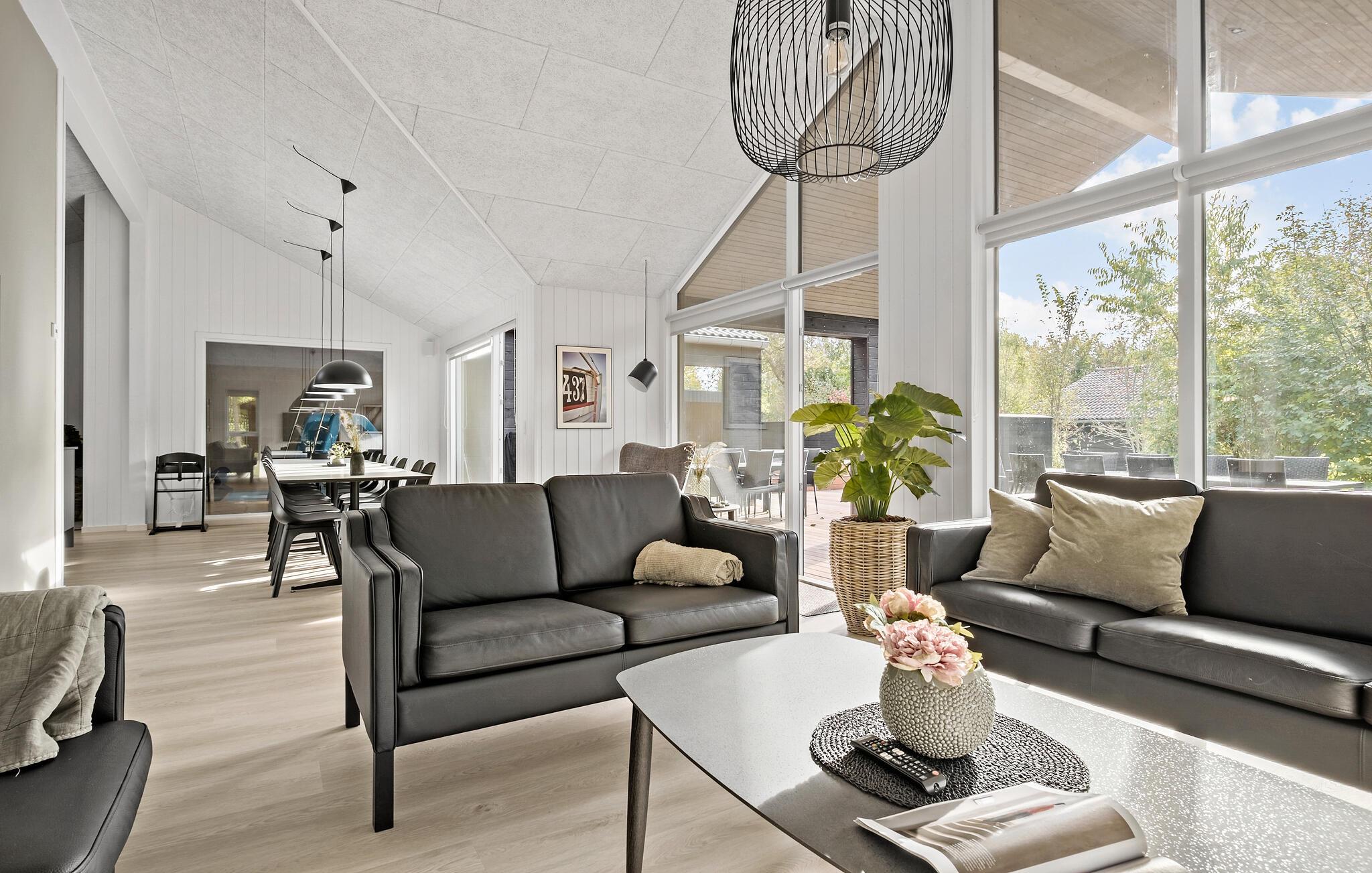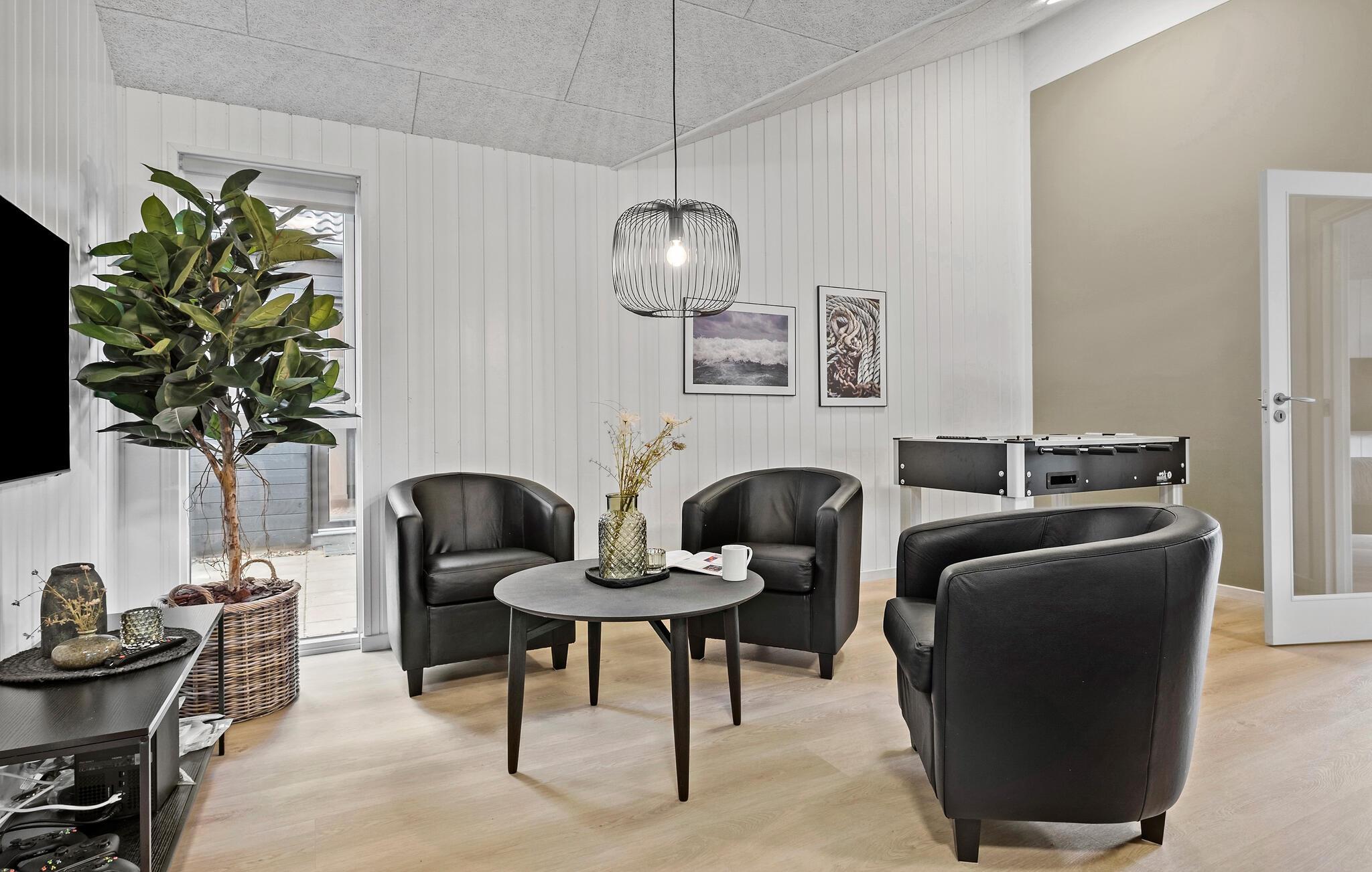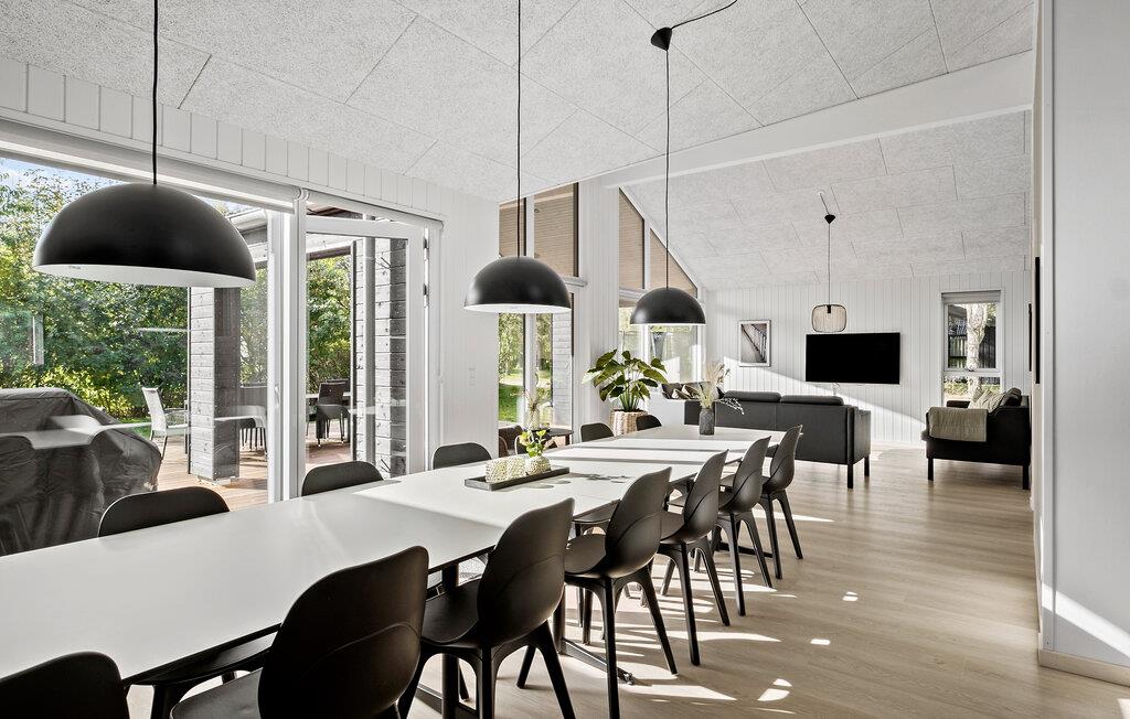 Indenfor venter jer et aktivitetsrum, der vil få ethvert spilleelskers hjerte til at banke hurtigere. Udfordr familien til et underholdende spil billard, bordfodbold, bordtennis eller dart. I stuen kan I slappe af i sofaområdet, se en film eller fordrive tiden med spillekonsollen og derved nyde hyggelige timer sammen. Det åbne og rummelige køkkenalrum byder alle feriegæster velkommen. Det er ikke blot et sted, hvor madlavningen er en fornøjelse, men også en social samlingsplads under jeres ferie.