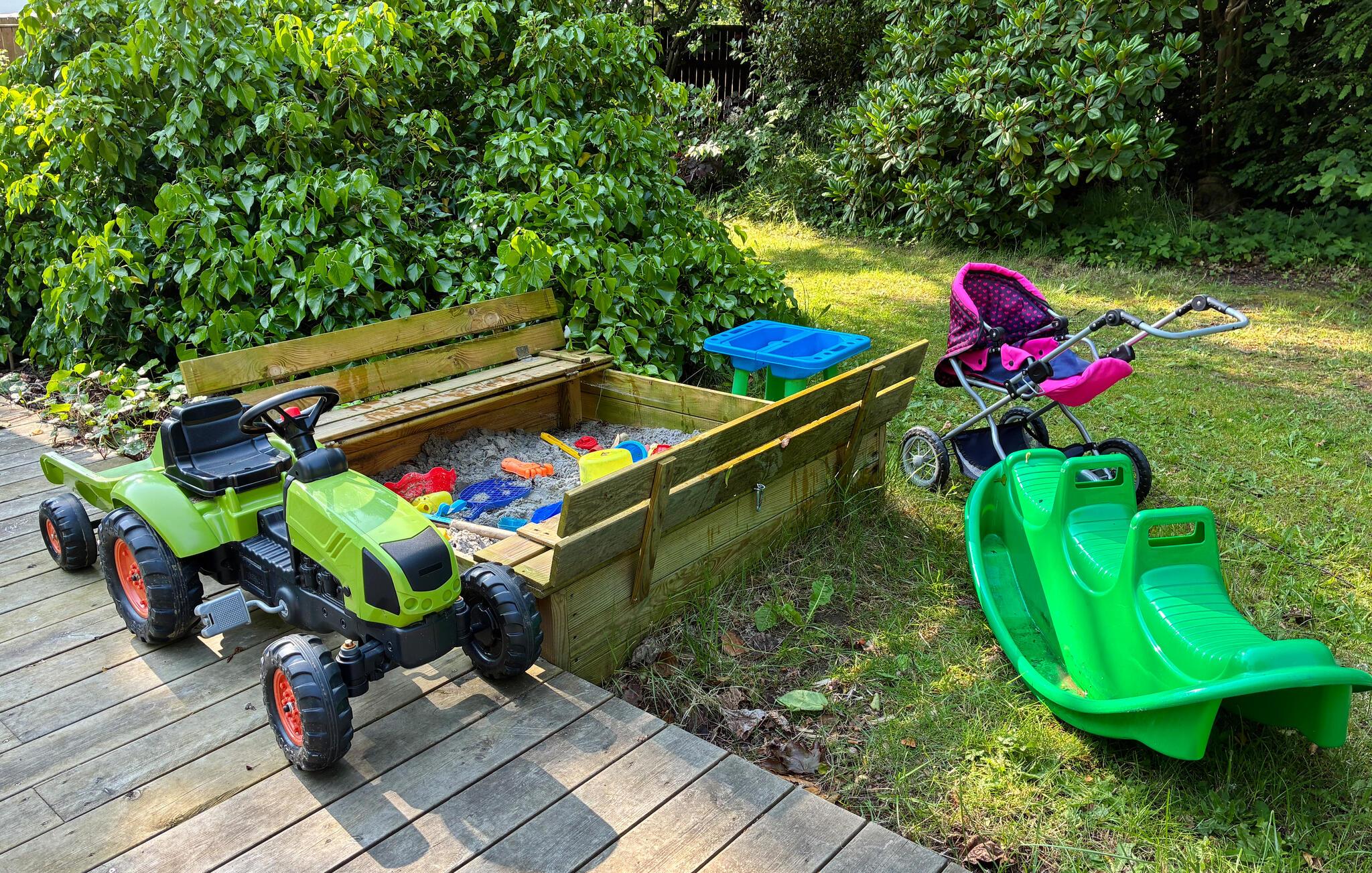 Udnyt de store terrasser med forskellige siddemuligheder til solrige eftermiddage eller lune sommeraftener. Tag plads i den overdækkede udestue eller nyd morgenmaden under åben himmel. Brug udekøkkenet til at nyde madlavningen udenfor. Den velholdte have har liggestole, legeredskaber, sandkasse og masser af plads til motion, hvilket gør den ideel for børnefamilier.