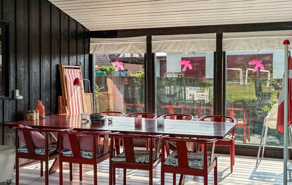 Dette feriehus er roligt beliggende og omgivet af frodigt grønt og giver jer en smuk blanding af komfort og funktionalitet. Opholdsstuen har store vinduer, en behagelig sofa og adskillige gennemtænkte detaljer. Læs en bog, se en film sammen eller planlæg jeres næste udflugt. Den tilstødende spiseplads lægger op til at nyde hyggelige måltider. Tilbered lækre retter i det lange køkken med udsigt over de grønne områder. Stuen med brændeovn giver jer en varm og hyggelig atmosfære, ideel selv på køligere dage.