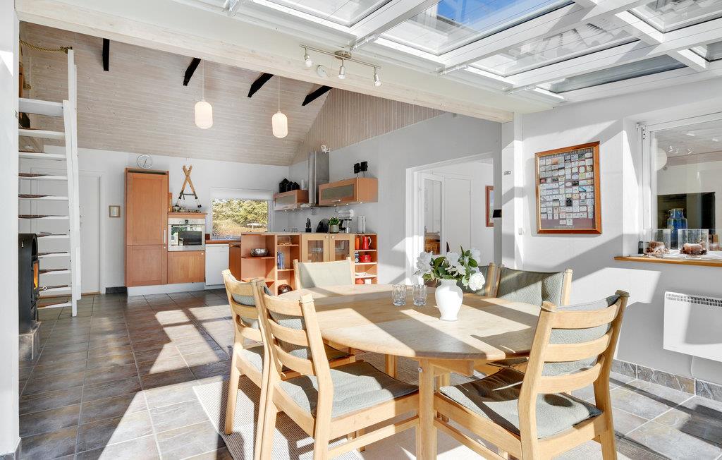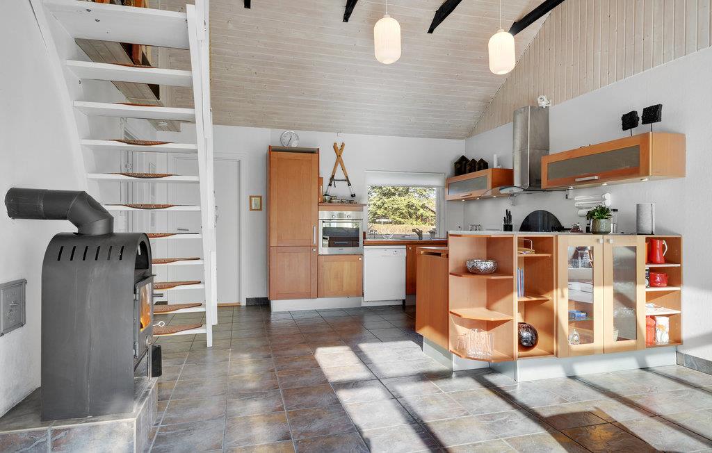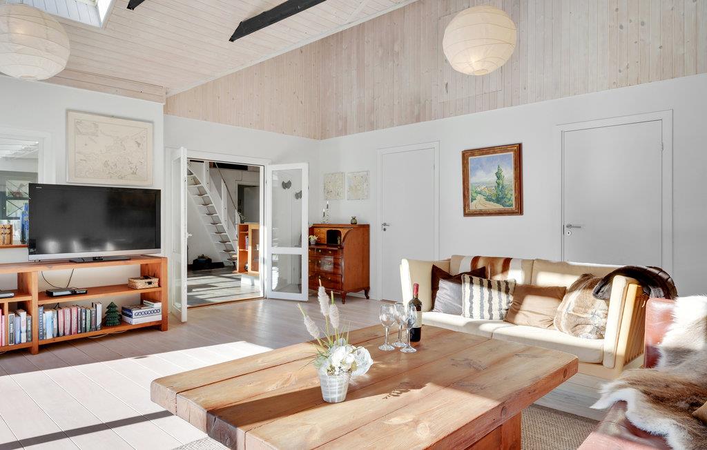 Her kan I se frem til et stort køkken-alrum med spiseplads, brændeovn og udgang til stor terrasse. Der er også en lys og rummelig stue med TV og højt til loftet, 3 gode værelser og et stort badeværelse med spa, vaskemaskine og tørretumbler samt et mindre badeværelse med brusekabine og skabe som kan bruges til pusleplads. Entreen tilbyder god plads til overtøj og sko.