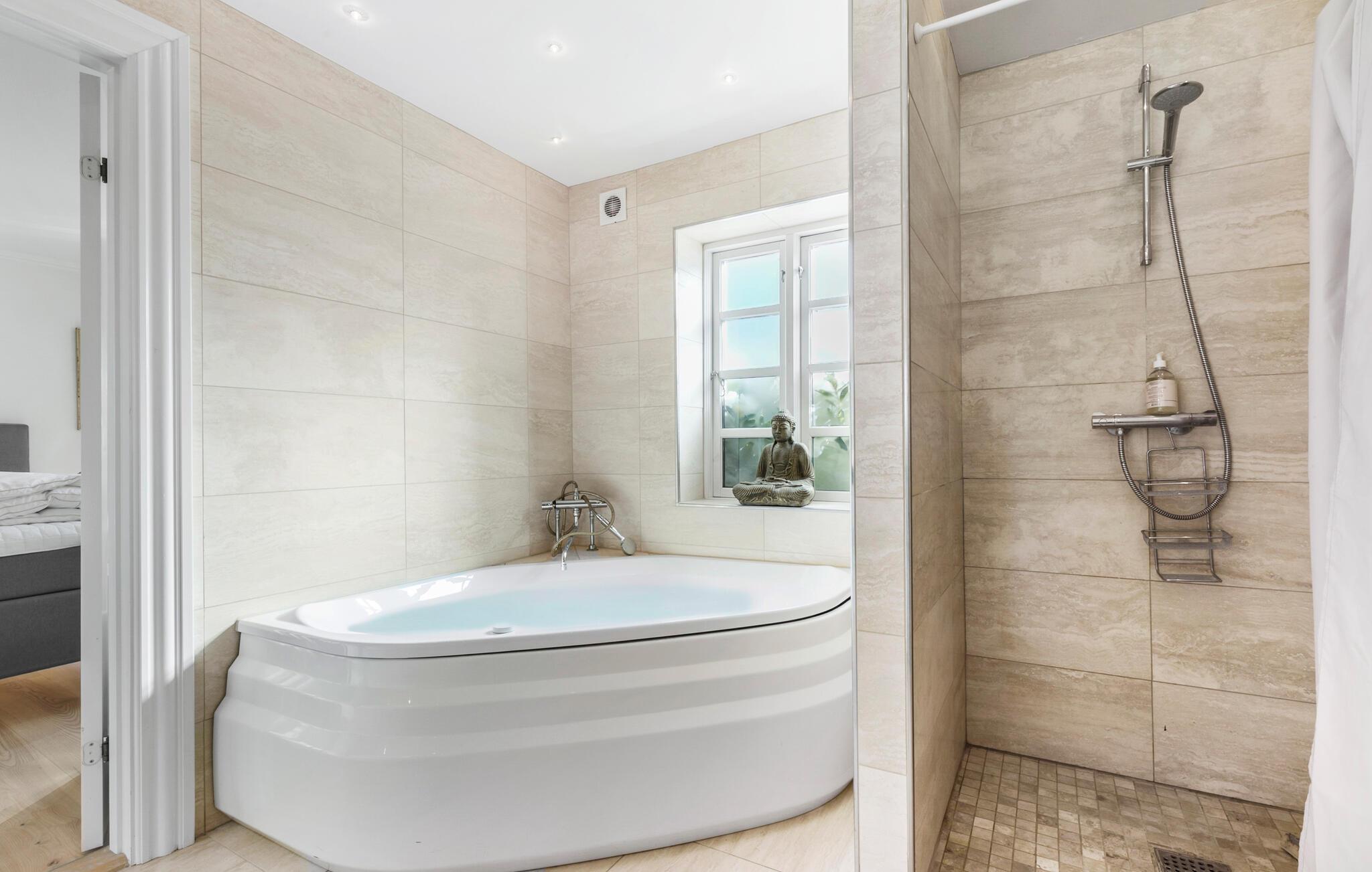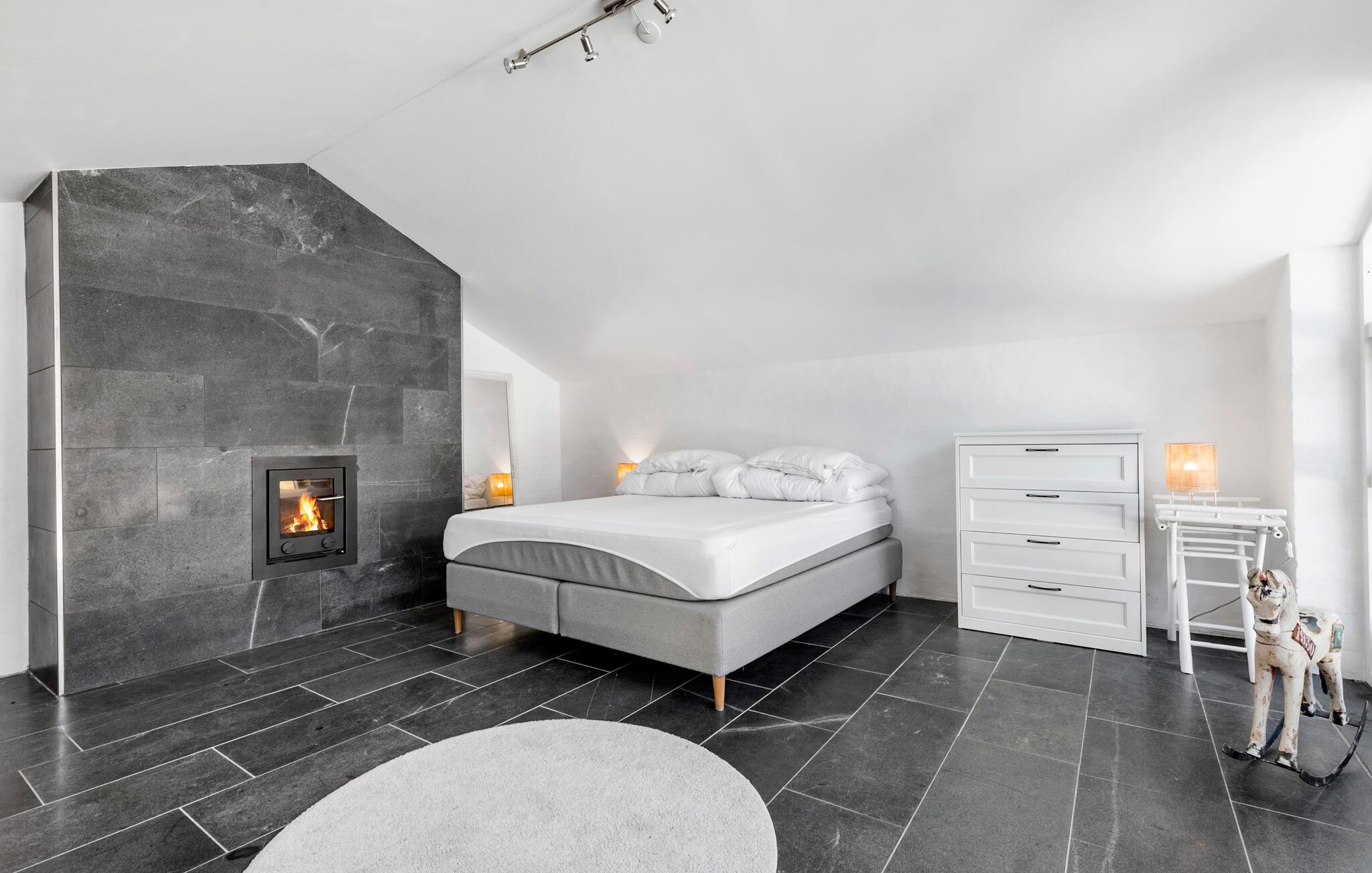 Her kan I læne jer tilbage og nyde ferien. Tænd op i pejsen, sæt en god film på og tilbring mange skønne timer sammen i opholdsstuen eller spisestuen, eller træk jer tilbage og nyd lidt alenetid i et af de lækre soveværelser. Soveværelset i annekset ved poolen indbyder også til ro og afslapning. Huset byder på masser af underholdningsmuligheder i form af blandt andet bøger og brætspil. Her er desuden mange moderne faciliteter, så komforten altid er i top, uanset om vejret måtte invitere til at være inde eller ude. Efter en aktiv dag er det skønt med en tur i spabadet, hvor man virkelig kan koble af.