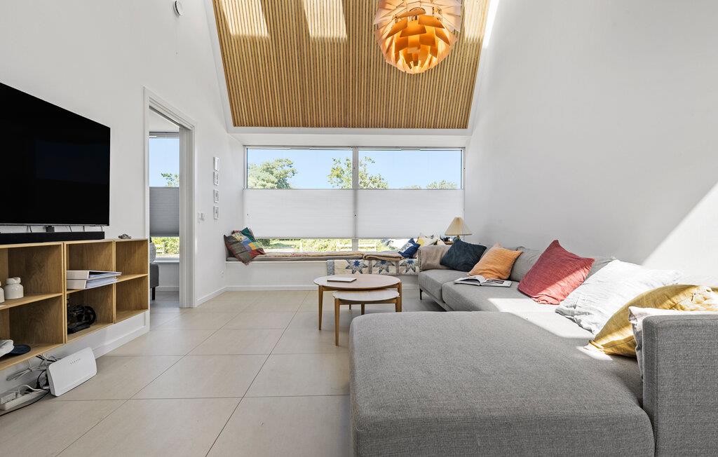 Moderne og lyst sommerhus i Gilleleje tæt på strand og feriecenter med pool og sauna.