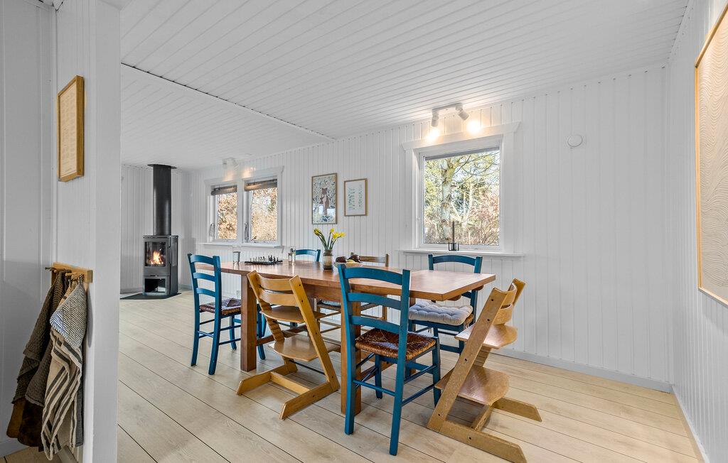 Glæd jer til nogle afslappende dage i dette lyse, moderne feriehus i Gilleleje. Her får I gode rammer med masser af plads og naturligt lys gennem vinduerne. Huset kan rumme en stor familie eller to vennefamilier. Den smagfulde indretning, en hyggelig brændeovn og det åbne, veludstyrede køkken sørger for en rar atmosfære. Nyd dagens måltider på en af ??de solrige terrasser og lad børnene lege i den store have, mens I læner jer tilbage og lægger planer for næste dag.
