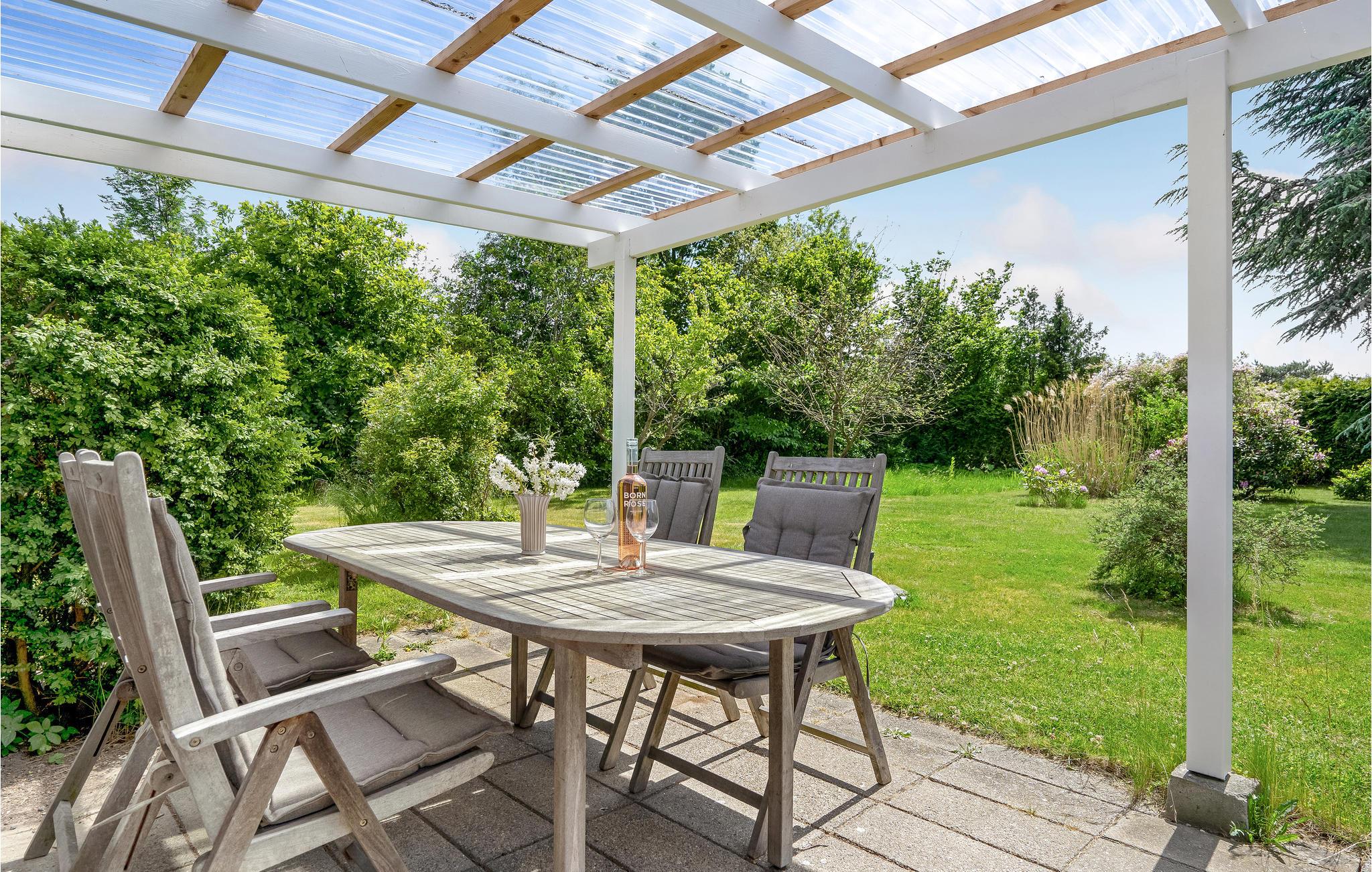 Udenfor inviterer terrassen jer til at nyde dejlige øjeblikke udendørs. Start dagen her med en lækker morgenmad og planlæg dagens aktiviteter. I finder smukke lounge møbler på den overdækkede terrasse.
