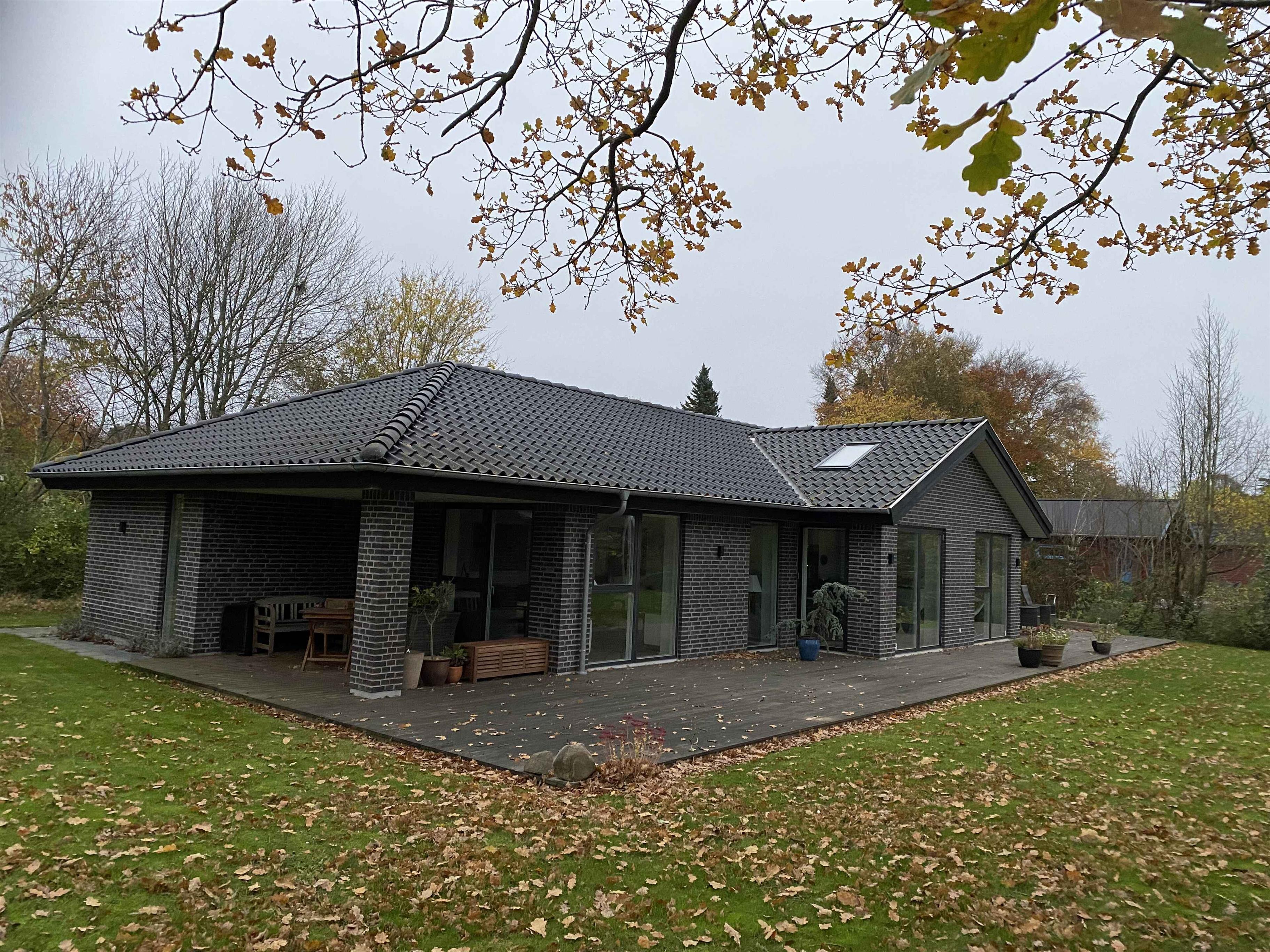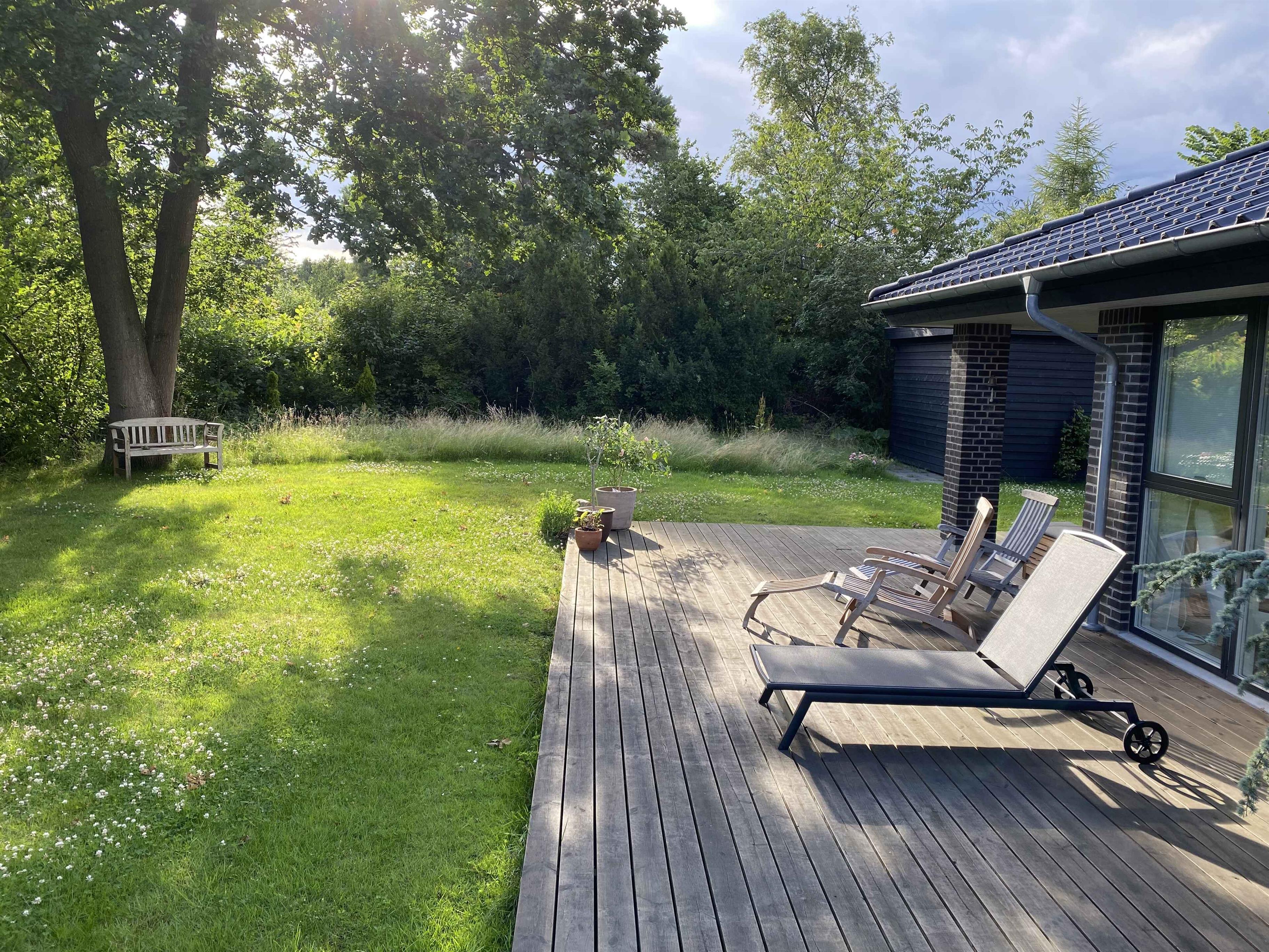 Rummeligt sommerhus nær kysten i Gilleleje med to badeværelser og stor terrasse til afslapning.