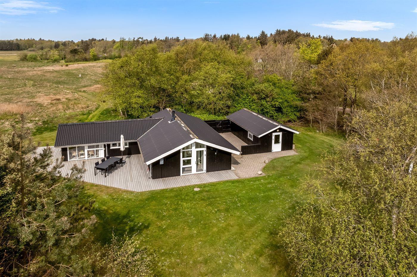 Ferieboligen er beliggende på en 5623 m² stor naturgrund. Der er 200 m til fjorden. Nærmeste forretning er beliggende i en afstand af 2000 m. Til ferieboligen hører 50 m² terrasseareal. Ligeledes er der adgang til udestue. Der er redskabsrum. Parkering ved ferieboligen.