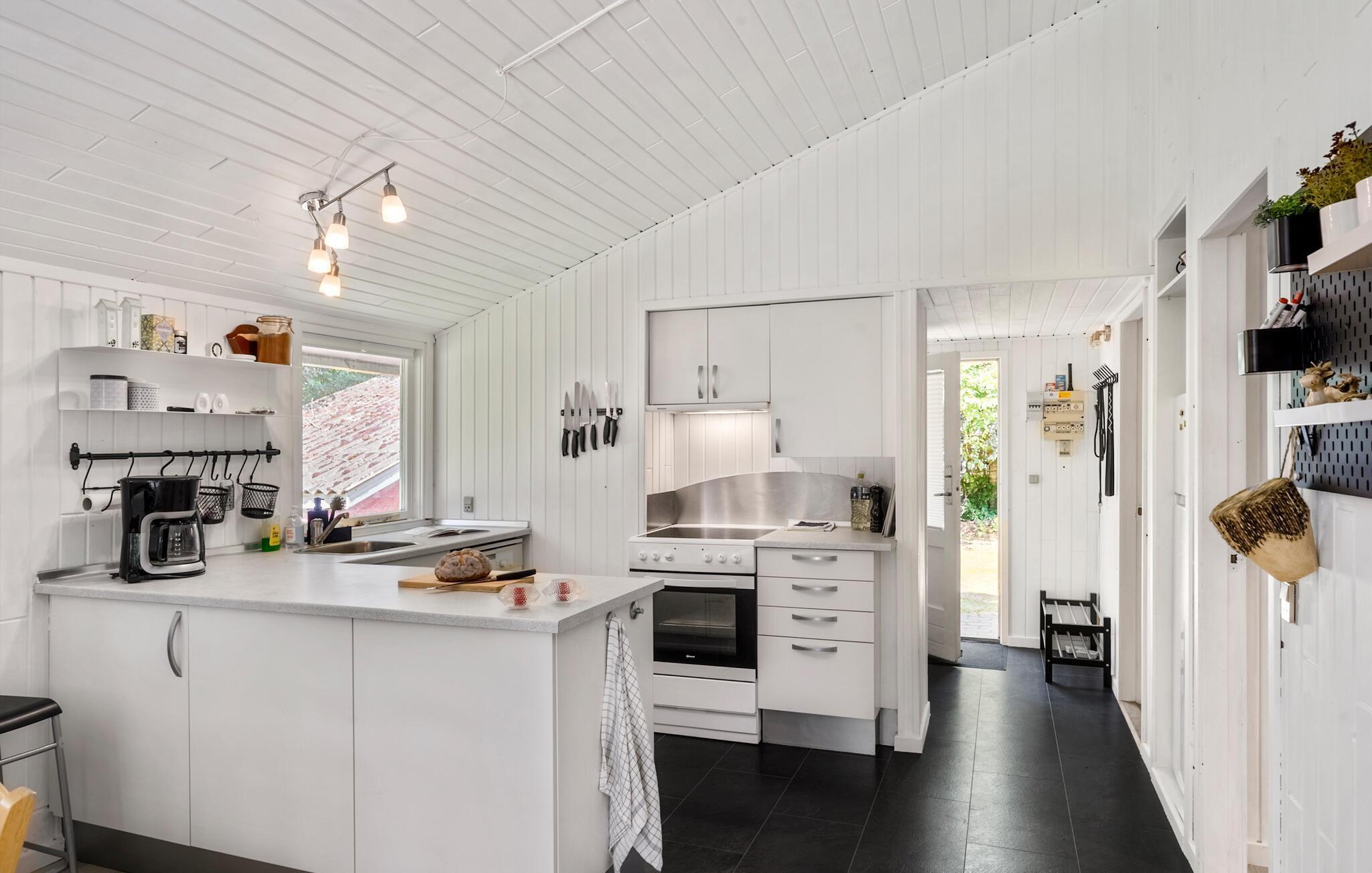 Dette etplanshus har en skøn, frodig have og giver jer en herlig base til en familieferie. Huset er lyst og indbydende. Tilbered lækre retter i det åbne køkken og hold snakken kørende med resten af familien, mens de spiller brætspil ved spisebordet. Senere kan I læne jer godt tilbage i de bløde møbler og mærke den hyggelige varme fra brændeovnen, mens I læser en god bog – eller ser en film.