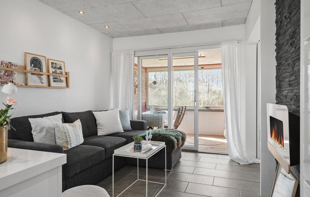Denne dejlige lejlighed ligger lige ud til Lemvig Strand og har et væld af gode faciliteter til et ophold med tid både afslapning og aktiviteter. Indenfor venter der jer en lys opholdsstue med en moderne, stilfuld indretning. Læn jer tilbage i den komfortable sofa eller nyd udsigten over de idylliske omgivelser fra den indbydende udestue-altan. Tilbered dagens måltider i det åbne, moderne køkken og nyd retterne ved det tilstødende spisebord.