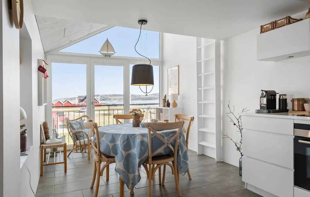 Nyd en ferie i denne lejlighed med panoramaudsigt, fælles pool og sauna ved Gjellerodde Strand.