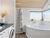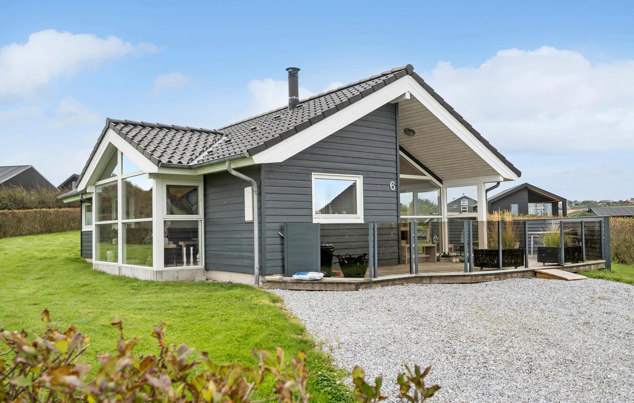 Hyggeligt feriehus ved Gjellerodde Strand med panoramaudsigt, spa, sauna og stor terrasse tæt på vandet.