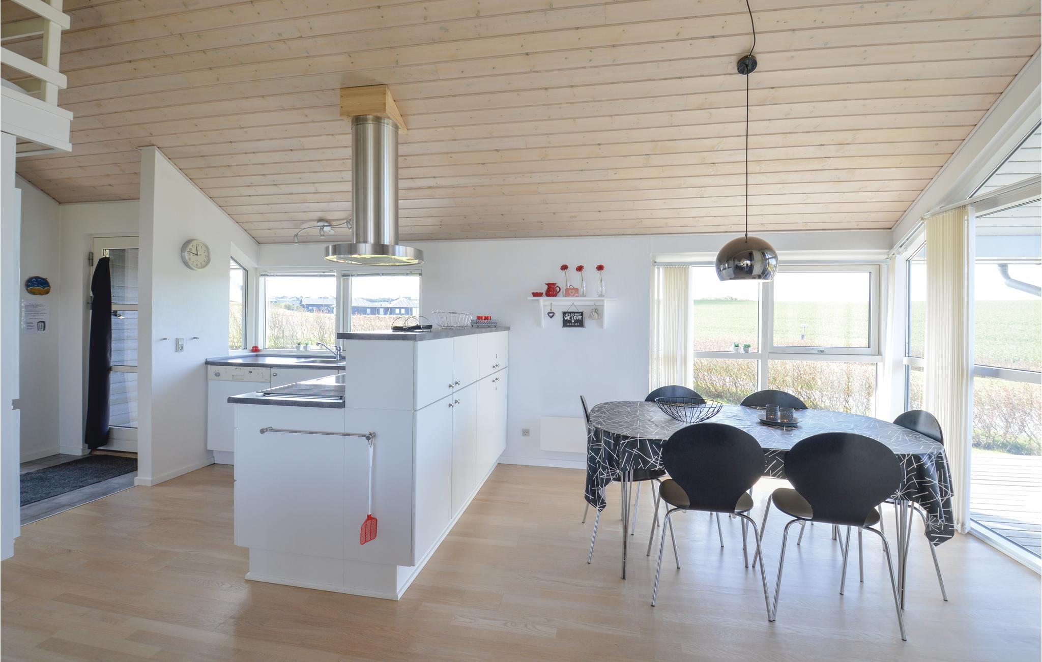Dette flotte og meget velholdte sommerhus ligger i det smukke Gjellerodde med den skønneste udsigt over Nissum Bredning. Udsigten er fantastisk lige meget i hvilket af husets rum I befinder jer, enten har I udsigt over vandet, ellers har I udsigt over de dejlige, fredfyldte marker. Huset er indrettet med tre soveværelser samt en hems. Endvidere findes der et stort badeværelse med både spabad og sauna samt et lyst køkken, der ligger i åben forbindelse med stuen. Fra stuen er der udgang til terrassen og til den store have, hvor I kan boltre Jer. ca. 400 m fra huset er der en stor legeplads, også med direkte udsigt over vandet. Kan I ønske jer et bedre udgangspunkt for den kommende ferie?