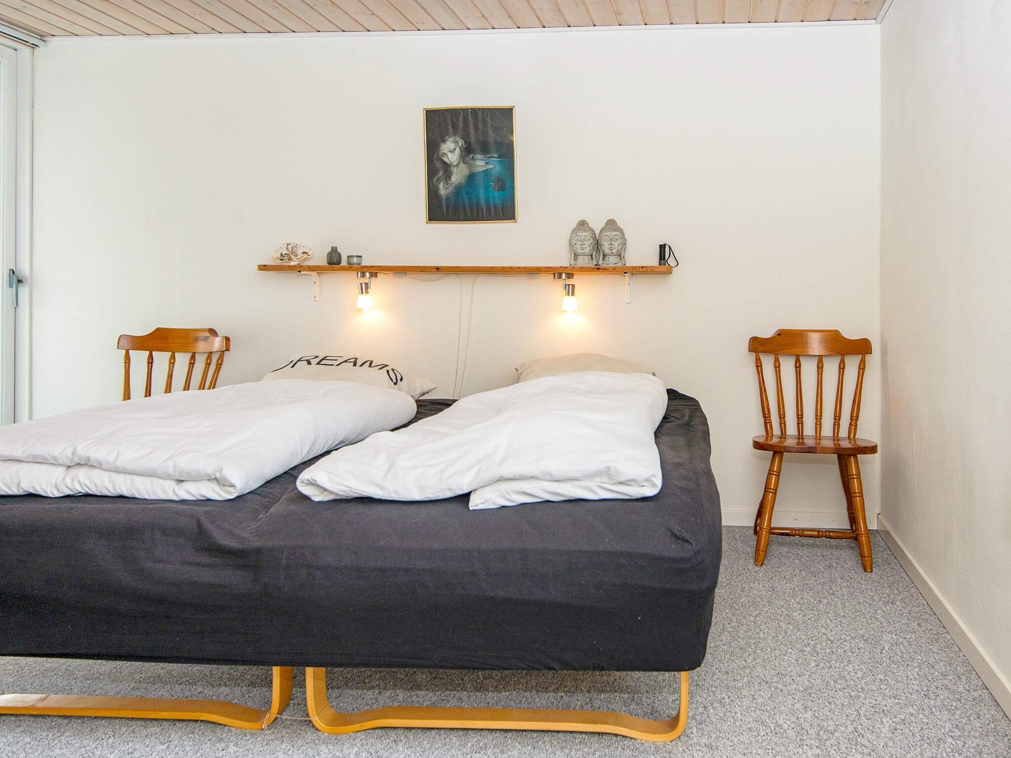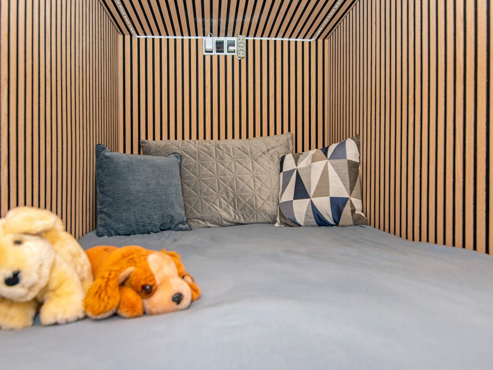 Sommerhuset har et værelse i selve huset med en komfortabel dobbeltseng og en dobbeltseng i en alkove, som primært er velegnet til 1-2 børn.