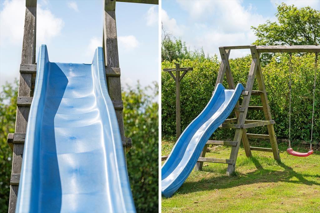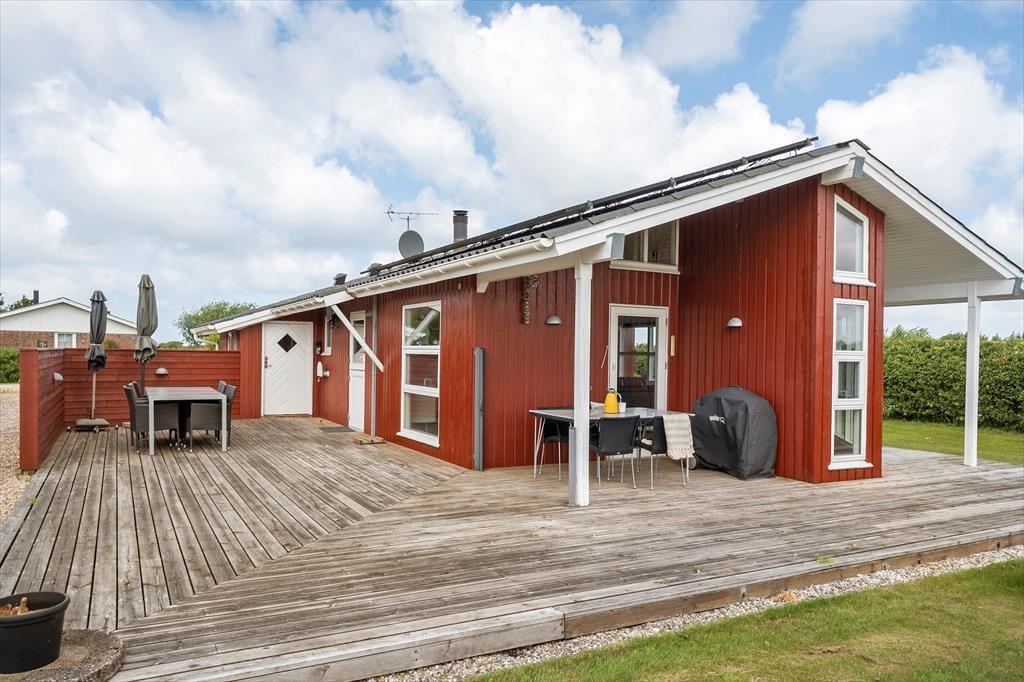 Det er oplagt at rykke så meget af ferielivet udenfor som muligt, når man har adgang til en have som denne. Den store og grønne grund omkring sommerhuset er perfekt til både boldspil, gemmeleg og afslapning under åben himmel. For de mindste er haven et rent slaraffenland med både legetårn, rutsjebane og trampolin – her er det næsten kun fantasien, der sætter grænser for legen. På de solrige dage er den fine terrasse et ideelt sted at nyde dagens måltider, og når aftenen falder på, kan ferien afrundes omkring bålstedet med snobrød og lune tæpper. Duften af bål og lyden af latter under stjernehimlen gør det nemt at mærke, at ferien er i gang.