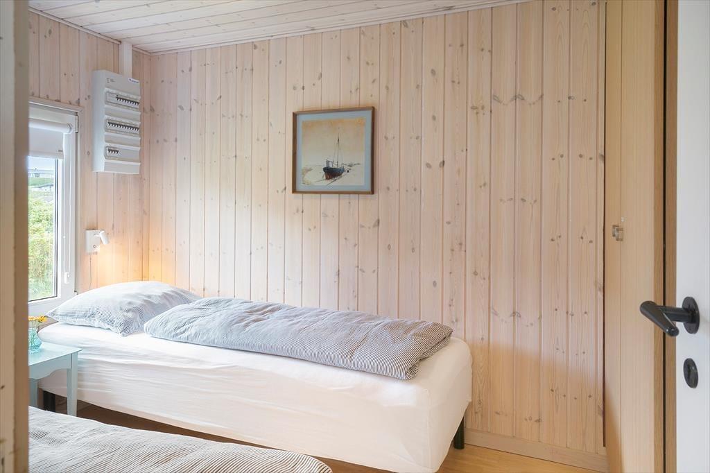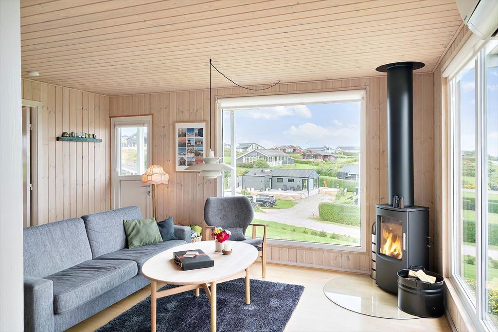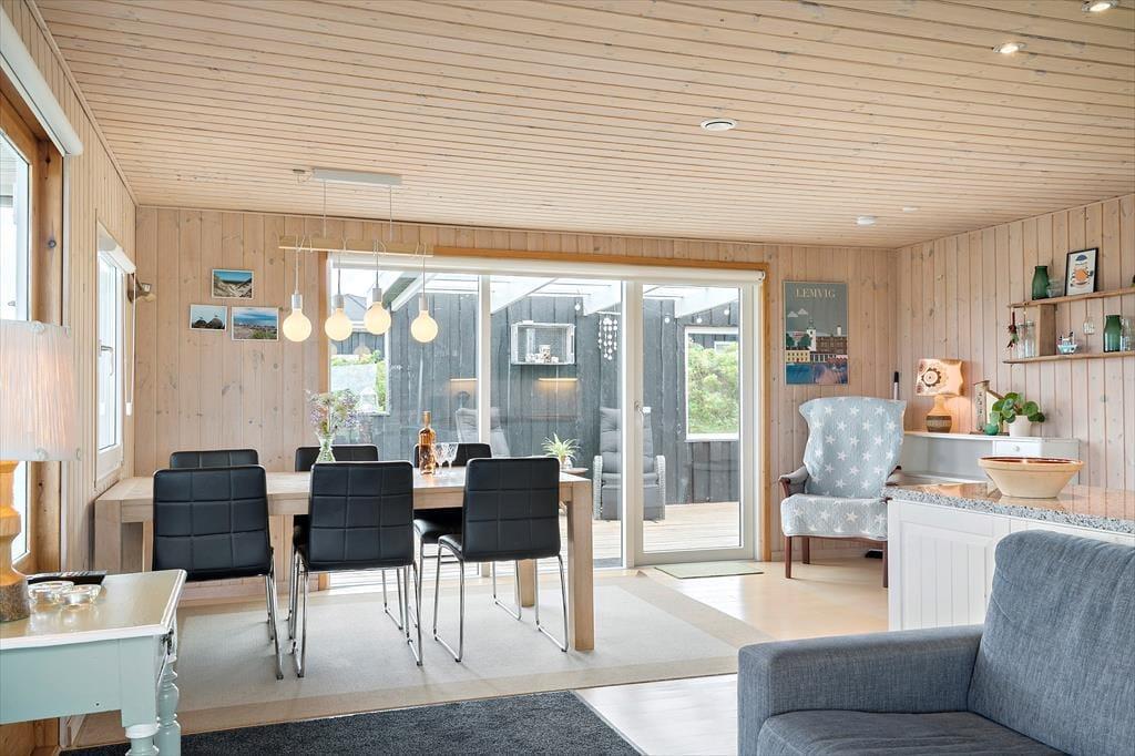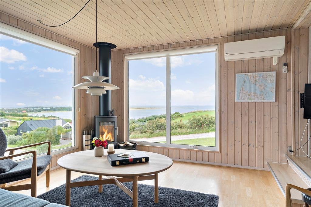 Sommerhuset på Bellisvej 80 byder dig velkommen med en lys og afslappet atmosfære, hvor indretningen inviterer til samvær og ferieafslapning. Her ligger køkken og stue i ét stort, åbent rum, hvilket gør det nemt at være fælles om både madlavning og hyggestunder. Måske dufter det af friskbrygget kaffe, mens børnene spiller kort ved spisebordet, eller også bliver der fortalt ferieminder fra sofaen med fjorden som baggrund gennem de store vinduer. Herinde er der tænkt på, at det skal være let at være sammen – og samtidig er der god mulighed for, at man kan finde sig en stille krog til en stund med en bog eller en middagslur. Den gennemgående hjemlige stemning og det smukke lysindfald gør huset til en fornøjelse at opholde sig i – uanset årstid og vejr.