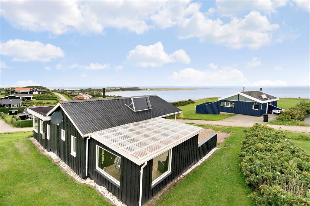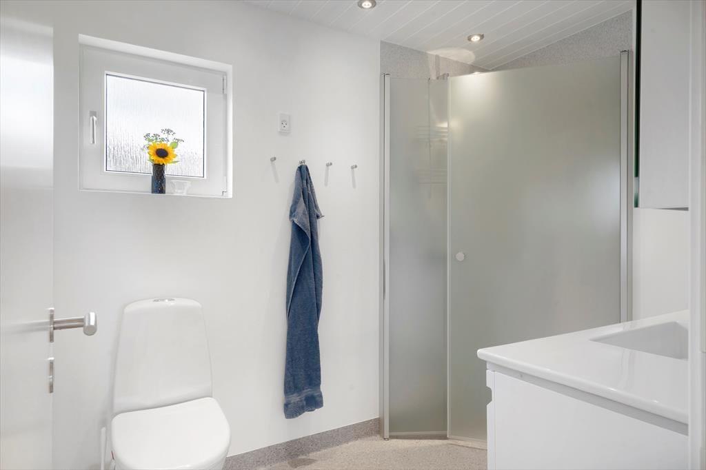 Udenfor venter flere forskellige terrassemiljøer, der indbyder til udeliv i al slags vejr. Den overdækkede terrasse giver læ og skygge på varme sommerdage og forlænger de lune aftener med spil og samtaler i stearinlysets skær. Den åbne terrasse er perfekt til at slikke sol og nyde udsigten over fjorden, der glimter mellem træerne og forandrer sig i takt med dagens gang. Små, afskærmede kroge omkring huset giver mulighed for at finde sin egen private oase – måske med en bog, en kold drink eller bare med tankerne vandrende i takt med bølgerne på fjorden. Og med bare 100 meter til stranden er det oplagt at tage en frisk morgendukkert eller lade børnene bygge sandslotte, mens solen bager og feriestemningen spreder sig.