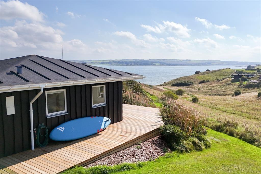 Udelivet folder sig virkelig ud omkring huset. Den nyanlagte terrasse snor sig elegant om tre sider af huset, så du kan vælge netop det hjørne, der passer bedst til dagens solstråler eller vinden i trækronerne. Start morgenen med en kop kaffe mod øst, nyd frokosten under solen mod syd og slut dagen af med et glas vin i aftensolen mod vest. Her er fred og ro i rigelige mængder, og du får følelsen af at have naturen helt for dig selv, da huset ligger ugeneret for enden af Bellisvej. Det naturskønne landskab danner bagtæppe for hele ferien og giver dig lyst til at blive hængende ude, bare lidt længere. Uanset om du nyder en stille stund alene eller deler oplevelsen med familie og venner, bliver terrassen og udsigten hurtigt midtpunktet for jeres feriedage.
