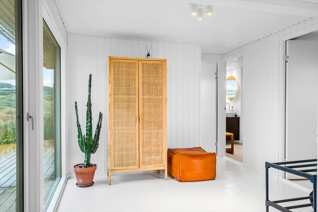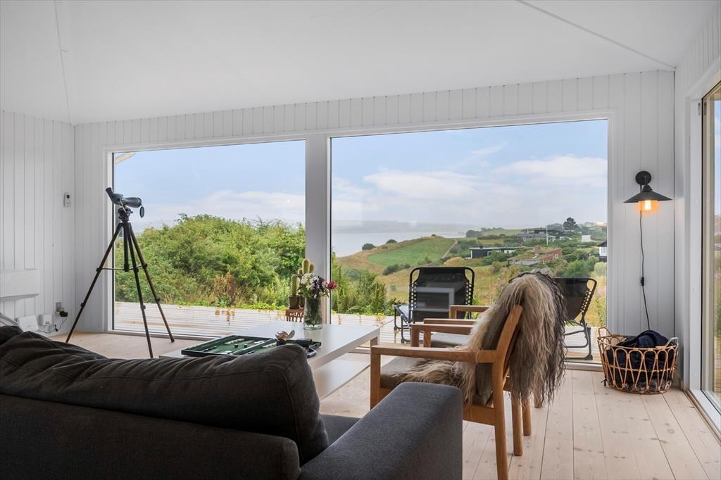 Når du træder ind i sommerhuset, møder du en lys og stemningsfuld indretning, der straks skaber en følelse af ro. De store vinduespartier i stuen lukker naturen helt ind, og giver dig mulighed for at nyde fjordudsigten i al slags vejr – hvad enten du slapper af med en god bog i sofaen eller deler et måltid ved spisebordet. Huset er gennemgribende renoveret og fremstår både moderne og hyggeligt på én gang, så du kan læne dig tilbage og lade feriestemningen indfinde sig fra første øjeblik. Badeværelset er lækkert og veludført – præcis som man håber, når man søger feriekomfort i rolige rammer. Stemningen er afslappet, hjemlig og præget af naturens rolige farver – en skøn kombination, som passer perfekt til en ferie for to eller en lille familie.