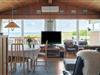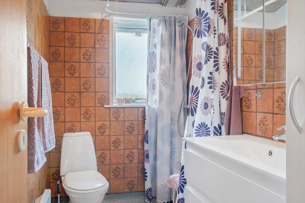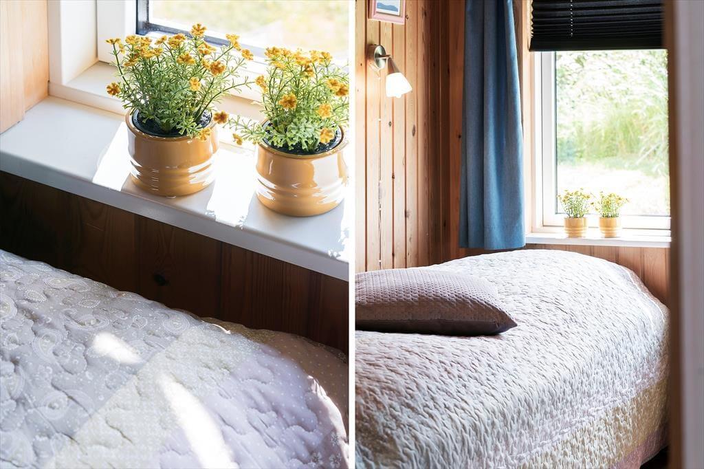 Indenfor i sommerhuset på Violvej 92 møder du en varm og autentisk atmosfære, hvor det er let at finde sig til rette og bare være. Stuen er hjemlig og hyggelig, og brændeovnen i hjørnet sørger for både varme og charme, når vinden suser udenfor, eller regndråberne trommer blidt på ruderne. Herfra har du udsigt direkte mod fjorden gennem store vinduespartier, og det er svært ikke at falde i staver over det betagende sceneri. Køkken og spiseplads ligger i tæt forbindelse med stuen, så fællesskabet let opstår – uanset om der laves morgenmad, drikkes eftermiddagskaffe eller spilles kort på en stille aften. Hele huset emmer af klassisk sommerhusstemning, hvor minder skabes med dem, du holder allermest af.