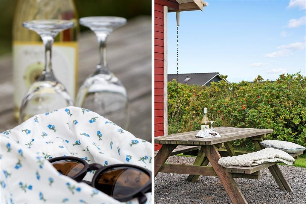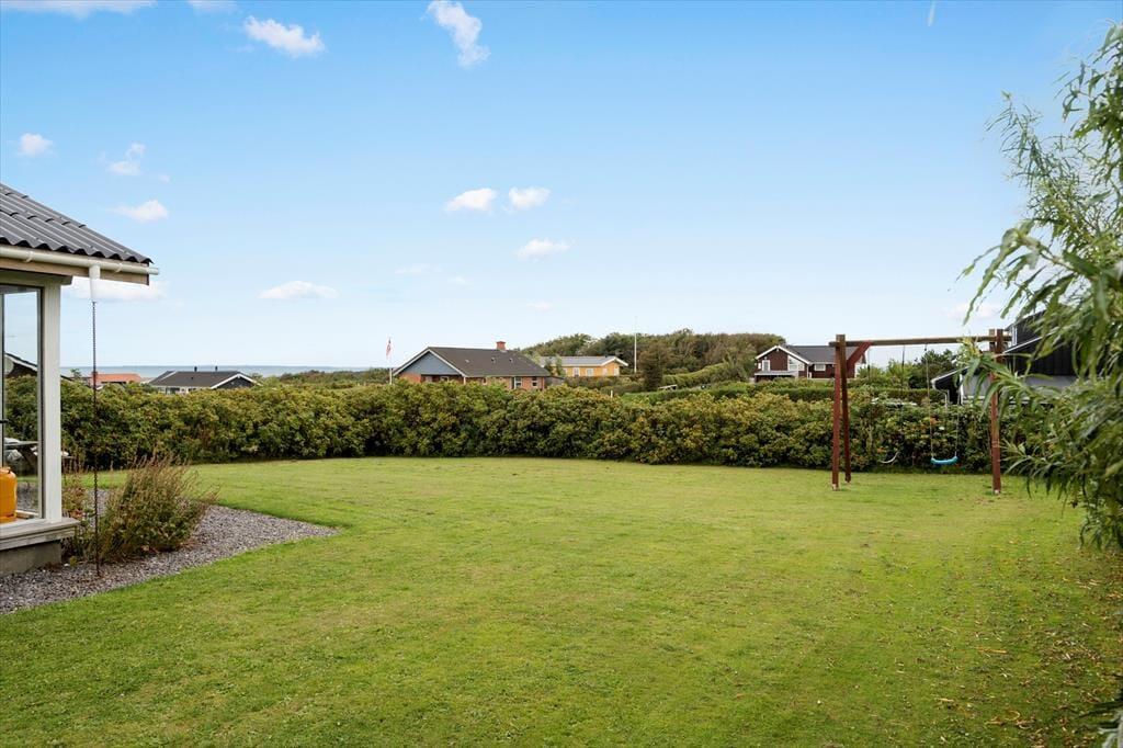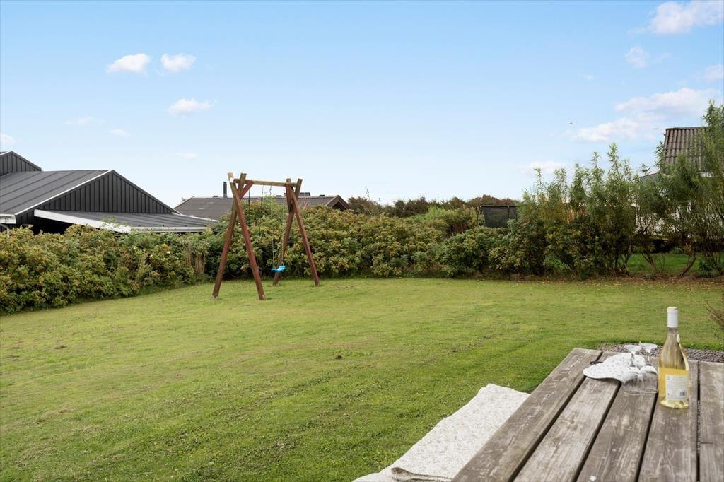 På husets private grund er der skabt fine rammer for udelivet. Haven er omkranset af hæk, så du kan nyde solen og feriedagene i fred og ro, mens børnene leger trygt på græsplænen. Til de mindste er der et gyngestativ, som hurtigt kan blive et populært samlingspunkt for leg, mens de voksne kan nyde en kop kaffe på terrassen. Her er både en sydøst- og en sydvestvendt terrasse, så du har gode chancer for at finde en solrig krog fra morgenstunden og helt ind i aftentimerne. Måske skal aftensmaden tilberedes på grillen, mens I lader dagens indtryk bundfælde sig, og hundene kan nyde at være med under åben himmel.