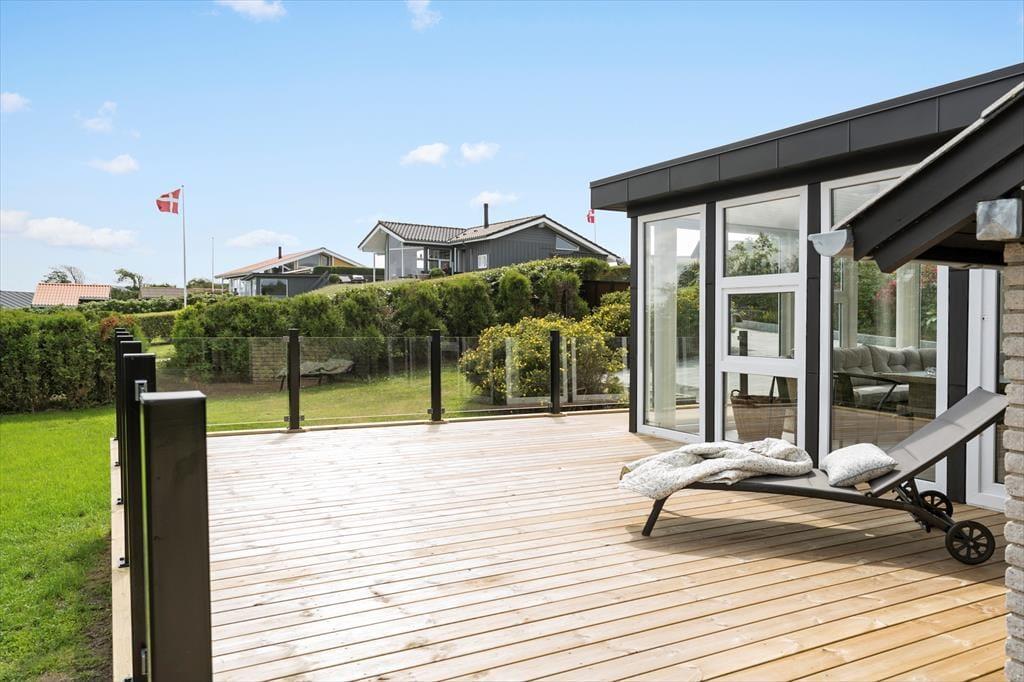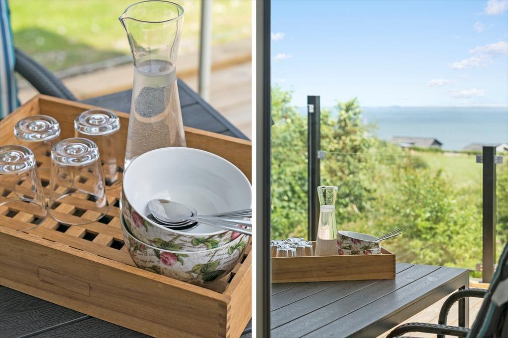 Fra både stuen og udestuen kan du træde direkte ud på husets skønne terrasse, hvor ferieglæden let får plads. Terrassen fungerer som et ekstra opholdsrum i sommerhalvåret og byder både på solkroge, skyggepladser og læ for vinden. Her kan du læne dig tilbage i havemøblerne og nyde en stille morgen, lade børnene lege på den kuperede grund eller samle familien til aftensmad under åben himmel. Terrassens beliggenhed giver mulighed for at følge med i solens gang over himlen, og på de klare aftener kan du opleve et storslået lysfald over fjordlandskabet. Uanset om du søger aktiv udendørstid eller bare vil tage den med ro, så er rammerne til det hele her.