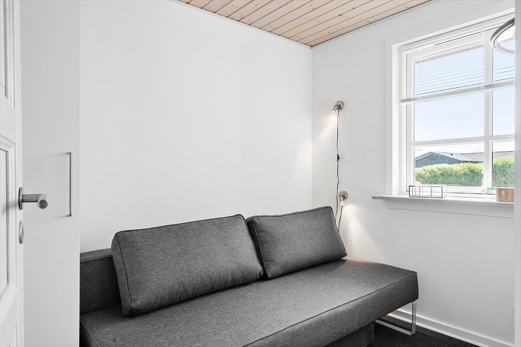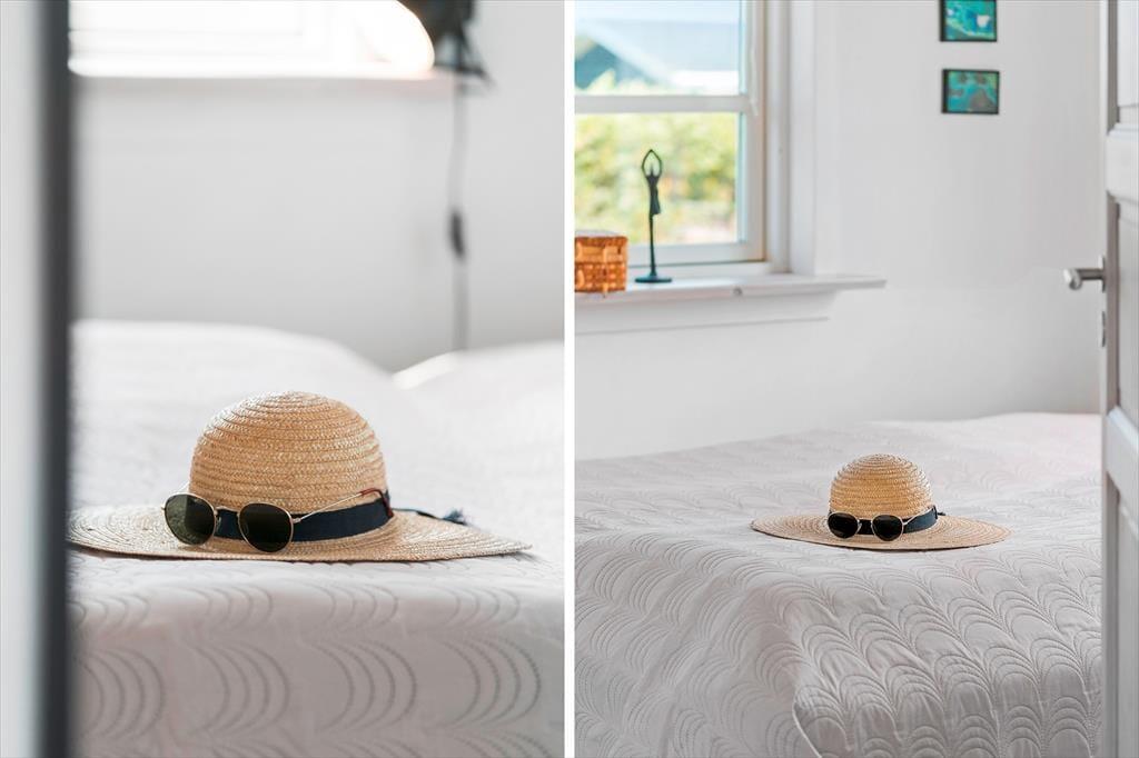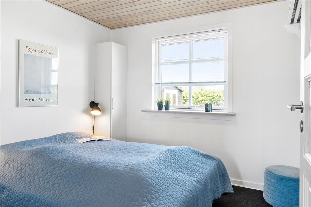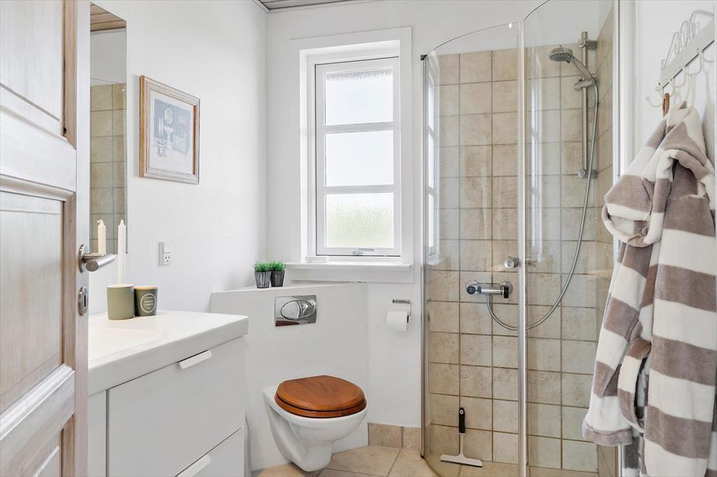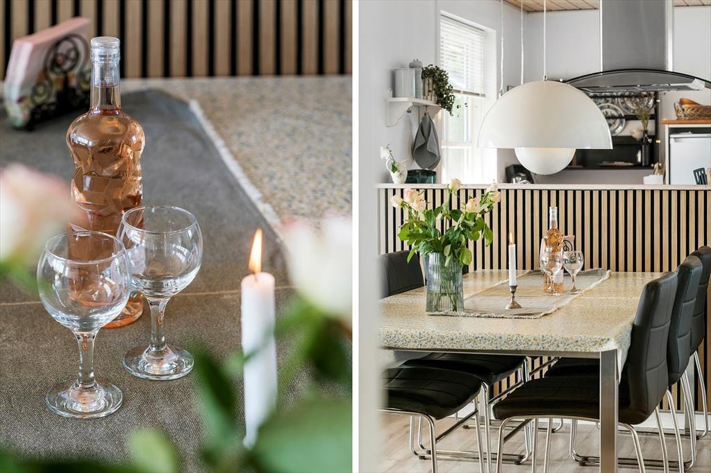 Inde i huset mødes du af en lys og åben atmosfære, hvor især stuen imponerer med store vinduespartier, der lader lyset strømme ind og skaber en let og behagelig stemning. Indretningen er enkel og hyggelig, og her får du nemt følelsen af, at ferien for alvor er begyndt. Brændeovnen står klar til at sprede varme og hygge, når aftenerne bliver kølige – perfekt til en rolig stund i sofaen med en kop te eller en god bog. Stue og køkken ligger i åben forbindelse, hvilket gør det nemt at være sammen, uanset om der bliver lavet mad, spillet spil eller blot slappet af i fællesskab. Det er et sted, hvor både par, venner og familier hurtigt vil føle sig hjemme.
