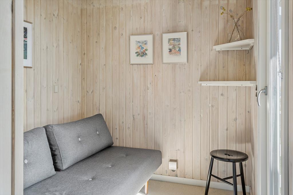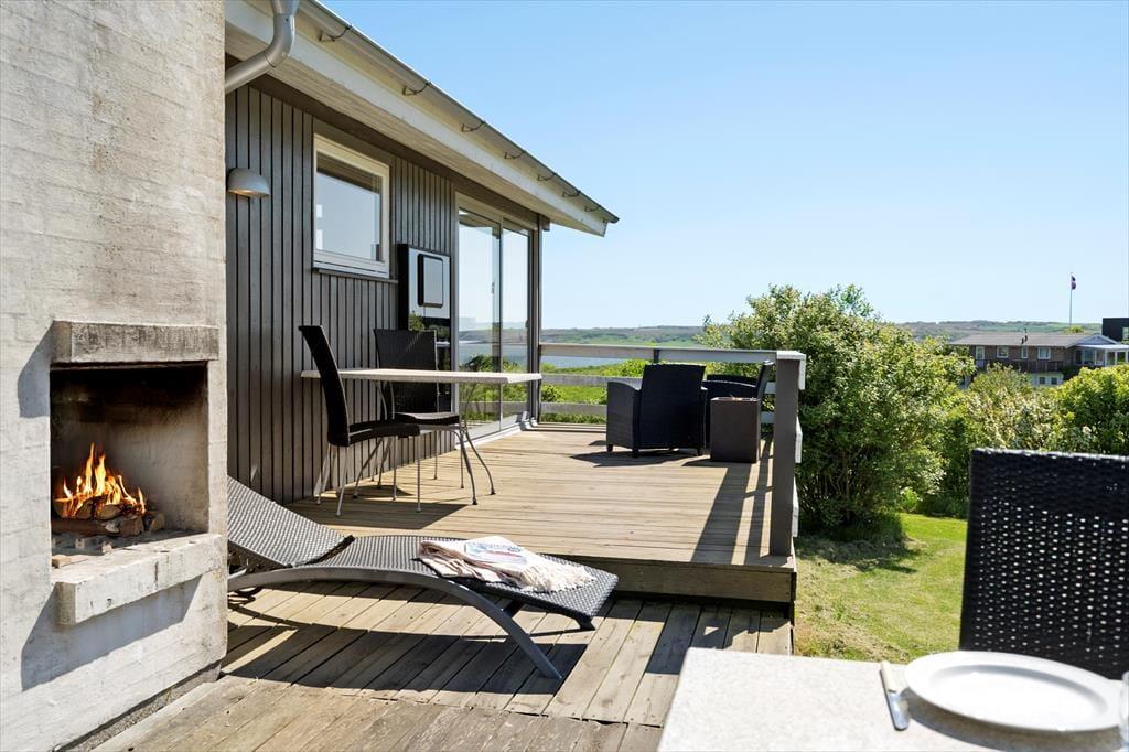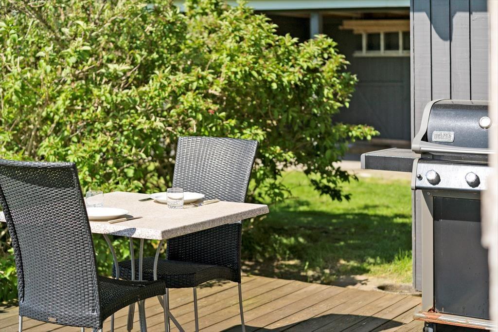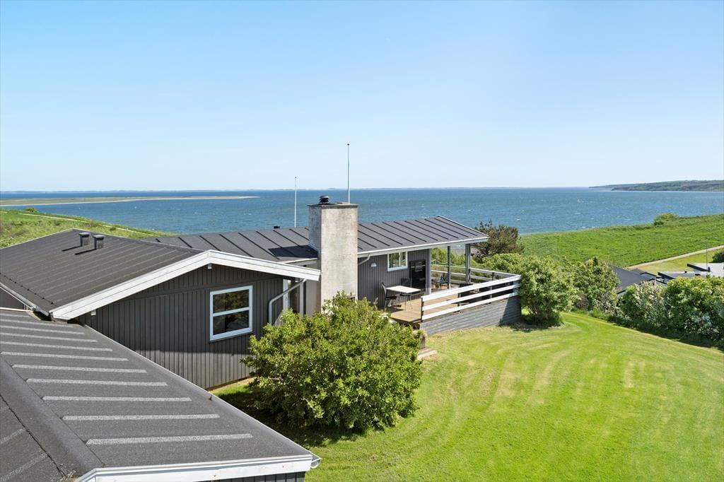 Udenfor venter en dejlig græsplæne og et generøst terrassemiljø, som breder sig omkring tre sider af sommerhuset – og hvoraf en del er overdækket, så du også kan nyde ferien udendørs, selv hvis solen gemmer sig bag en sky. Med kun 75 meter til vandkanten er det oplagt at tage morgenkaffen med ned til stranden eller afslutte dagen med en aftendukkert i fjorden. På terrassen kan du nyde dagens måltider, lade børnene lege i græsset og måske tage en lur i solen med lyden af måger i det fjerne. Uanset om du har brug for at være aktiv eller bare vil slappe af, skaber de fredelige omgivelser ved Violvej 19 en ideel ramme for begge dele. Og når solen går ned, forvandler himlen sig ofte til et farvespil, du kan nyde fra første parket.