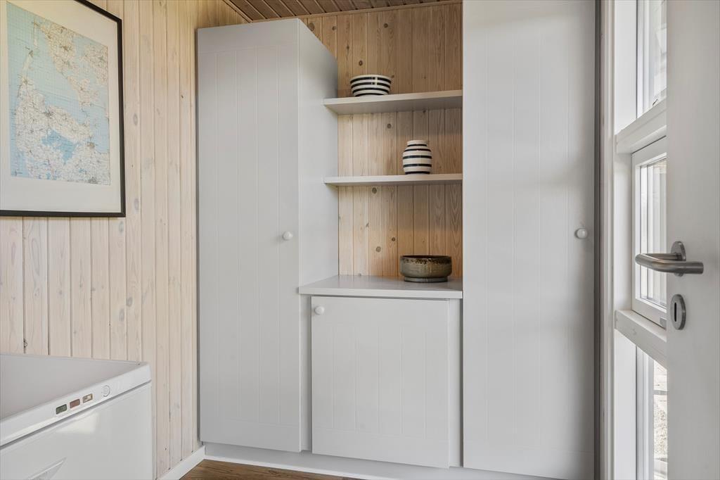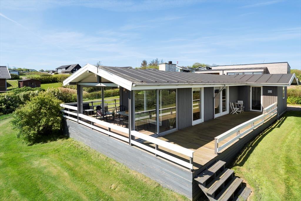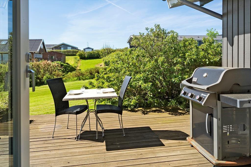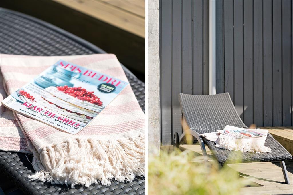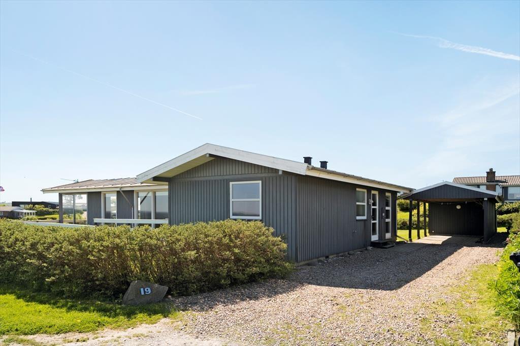 Udenfor venter en dejlig græsplæne og et generøst terrassemiljø, som breder sig omkring tre sider af sommerhuset – og hvoraf en del er overdækket, så du også kan nyde ferien udendørs, selv hvis solen gemmer sig bag en sky. Med kun 75 meter til vandkanten er det oplagt at tage morgenkaffen med ned til stranden eller afslutte dagen med en aftendukkert i fjorden. På terrassen kan du nyde dagens måltider, lade børnene lege i græsset og måske tage en lur i solen med lyden af måger i det fjerne. Uanset om du har brug for at være aktiv eller bare vil slappe af, skaber de fredelige omgivelser ved Violvej 19 en ideel ramme for begge dele. Og når solen går ned, forvandler himlen sig ofte til et farvespil, du kan nyde fra første parket.