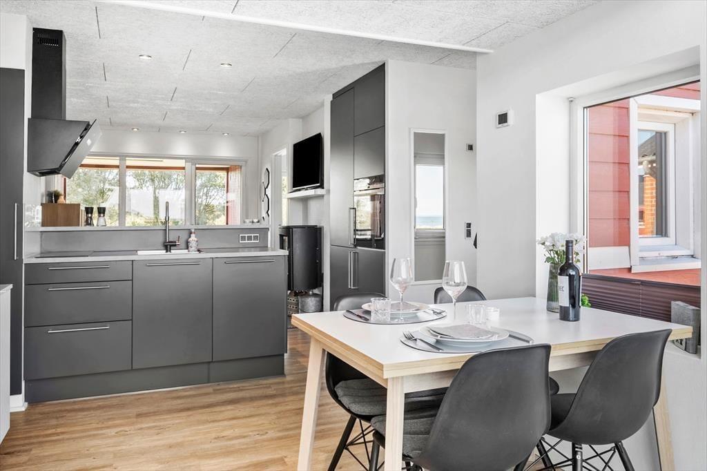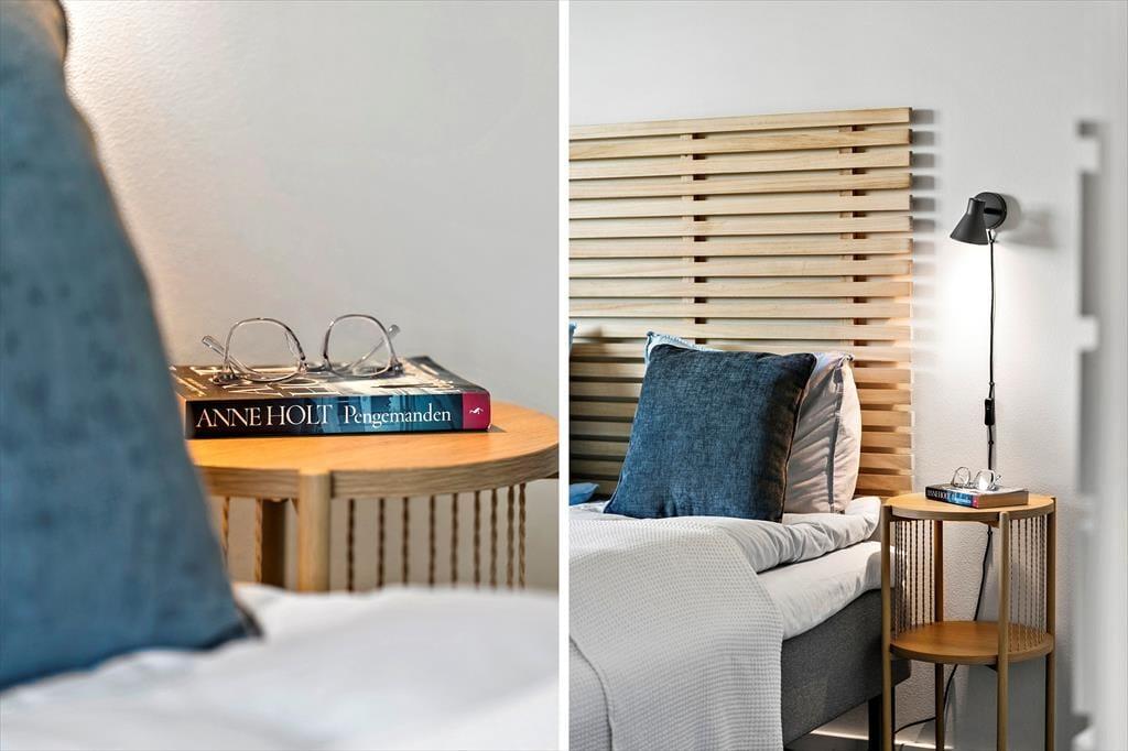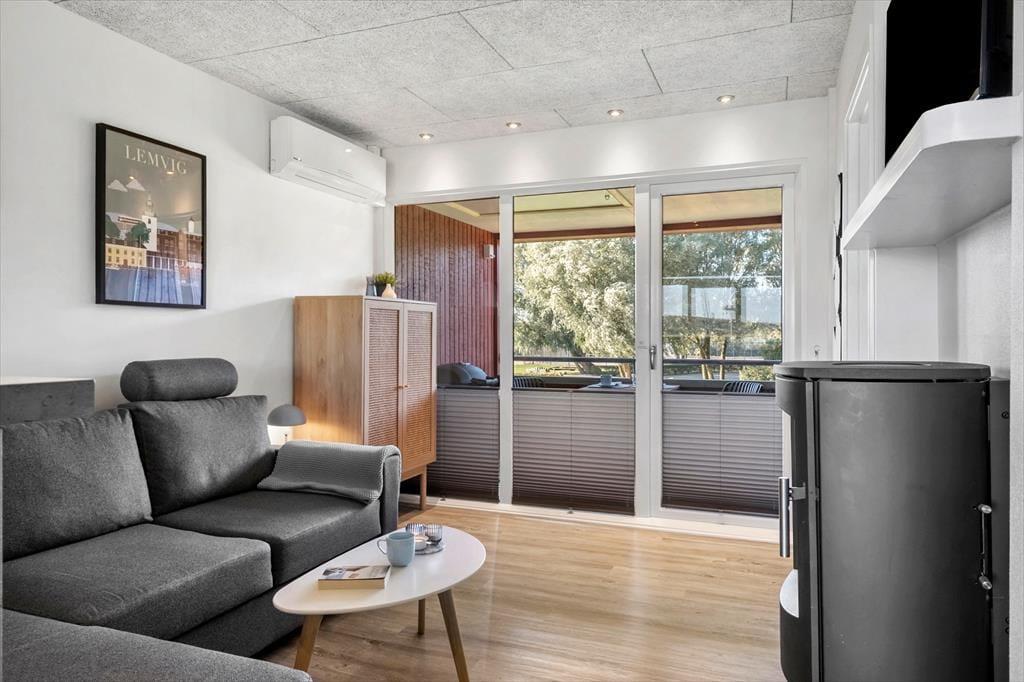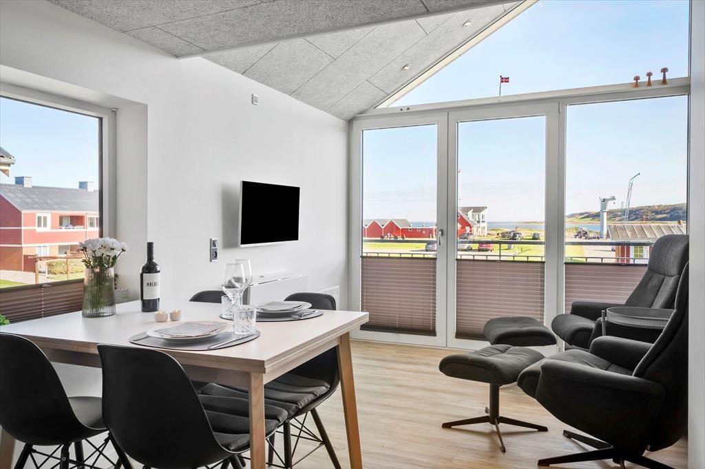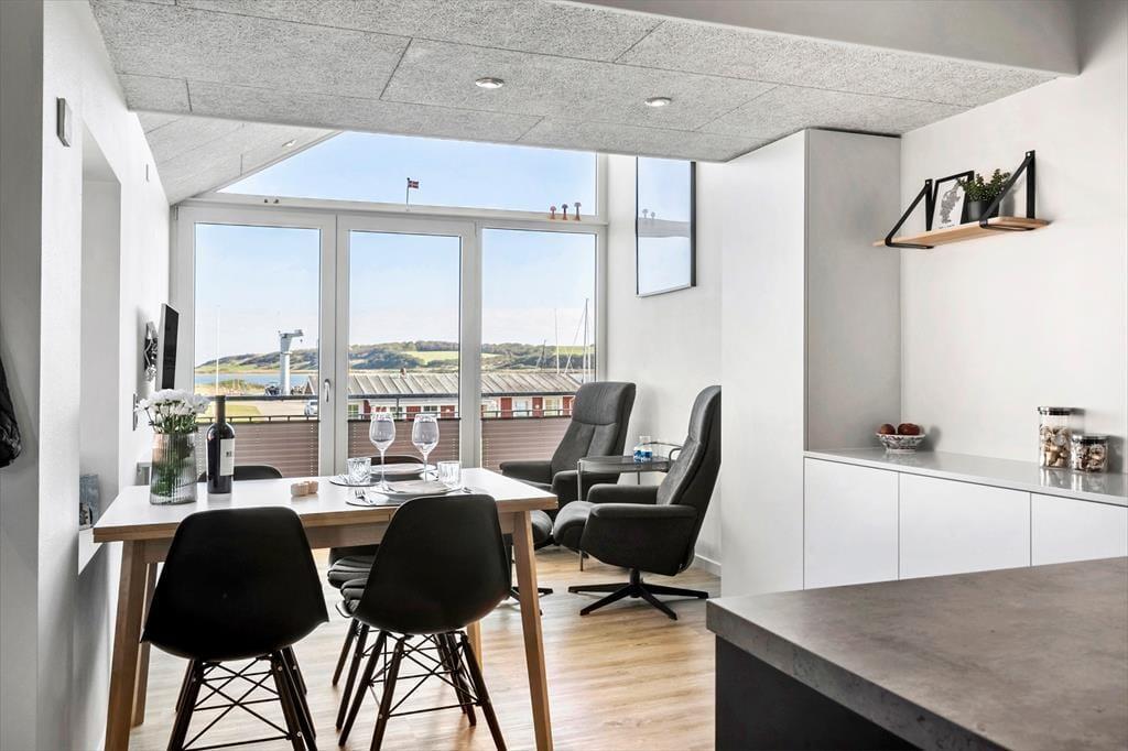 Lejligheden er lyst og hyggeligt indrettet med en atmosfære, der straks får feriestemningen til at sænke sig. Det åbne opholdsrum indbyder til afslapning – her kan du sætte dig godt til rette med en bog eller nyde en stille stund med udsigt til fjorden. Det funktionelle køkken gør det nemt at tilberede et lækkert måltid, og spisningen bliver ekstra hyggelig, når du samtidig kan nyde udsigten gennem de store vinduer. Om aftenen kan du trække dig tilbage, mens roen fra vandet udenfor og den lune stemning indenfor fuldender den perfekte feriedag.