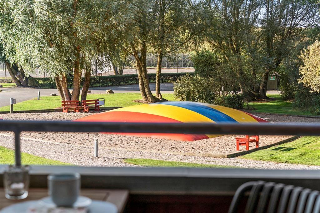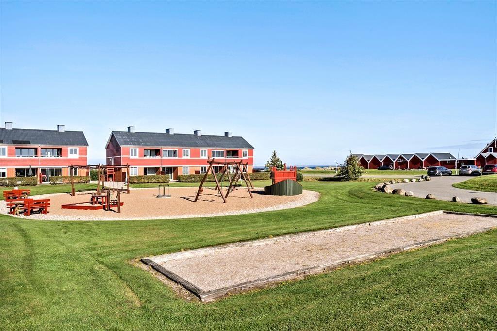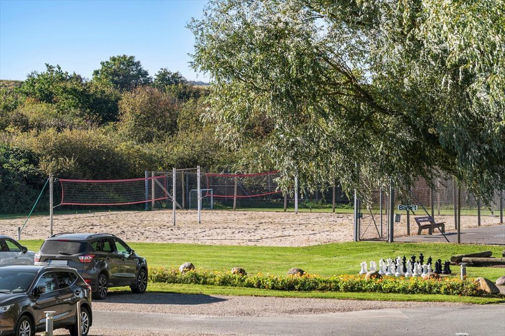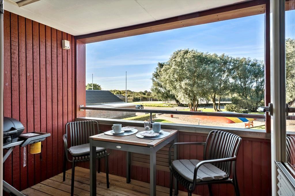 På den dejlige balkon kan du følge dagens rytme – fra de første solstråler om morgenen til aftenens gyldne lys over fjorden. Her er der rig mulighed for at koble helt af, og når du får lyst til aktivitet, ligger mulighederne lige for dine fødder. Du har nemlig gratis adgang til en lang række fælles faciliteter: svømmehal med sauna, stor legeplads, petanquebane, hoppepude, beachvolleybane, tennisbane og meget mere. Der er også tænkt på de aktive gæster – golfbanen ligger lige i nærheden, og i skuret kan du nemt opbevare både golfkøller og cykler, samt at der findes lappegrej og en pumpe, hvis du vil udforske området ad de naturskønne stier langs fjorden.
