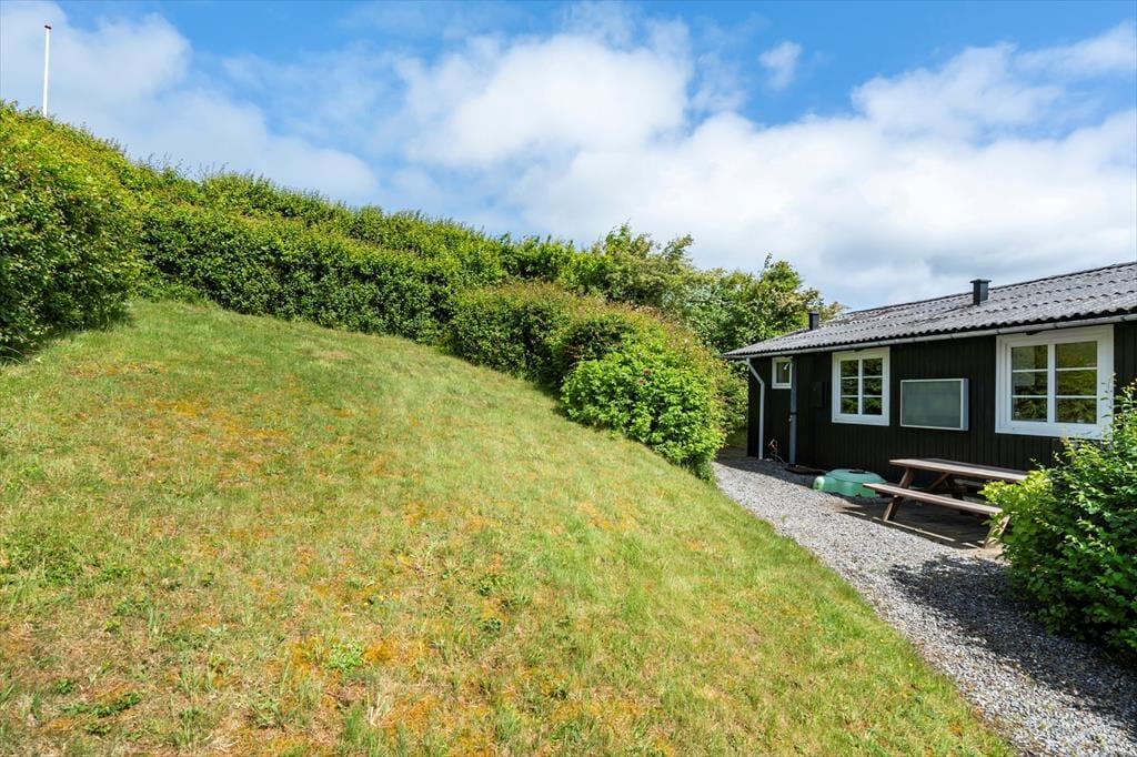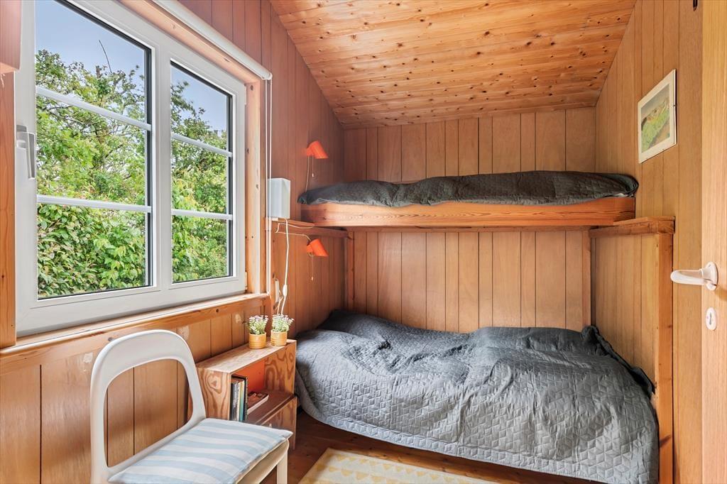 En af husets helt store fordele er den hævede terrasse, som ligger smukt placeret over den naturlige grund og giver dig et fantastisk udsigtspunkt. Fra morgenstunden kan du nyde din kaffe med udsigt over fjorden og høre fuglene hilse dagen velkommen. Terrassen er oplagt til både måltider under åben himmel og stille stunder i eftermiddagssolen. Rundt om huset breder naturgrunden sig med sin vilde charme, og her er rigelig plads til leg og bevægelse for både børn og voksne. Det er nemt at finde sig et uforstyrret hjørne til afslapning, og på de lune aftener er der noget ganske særligt ved at lade dagen rinde ud i det fri, mens fjordens vand glitrer i det sidste sollys.