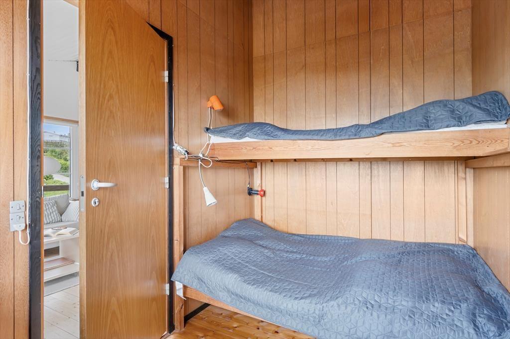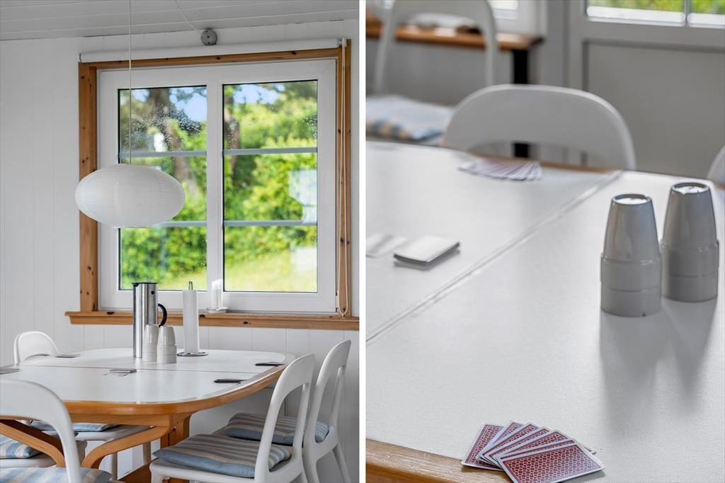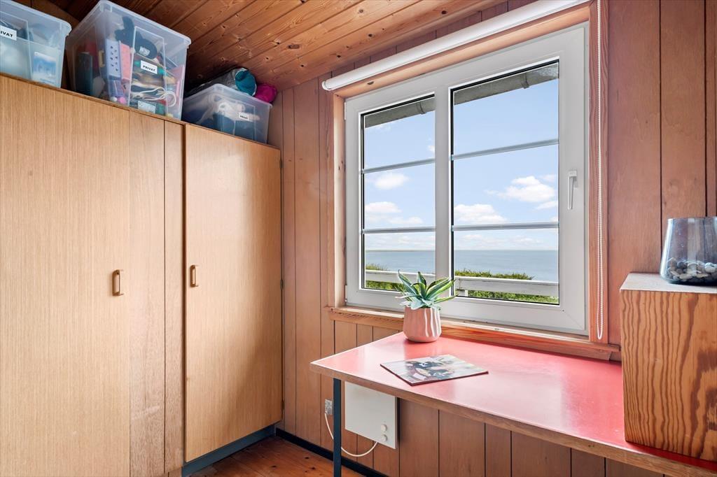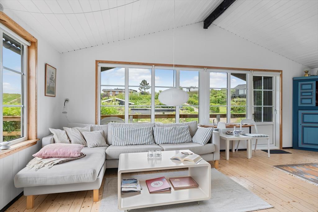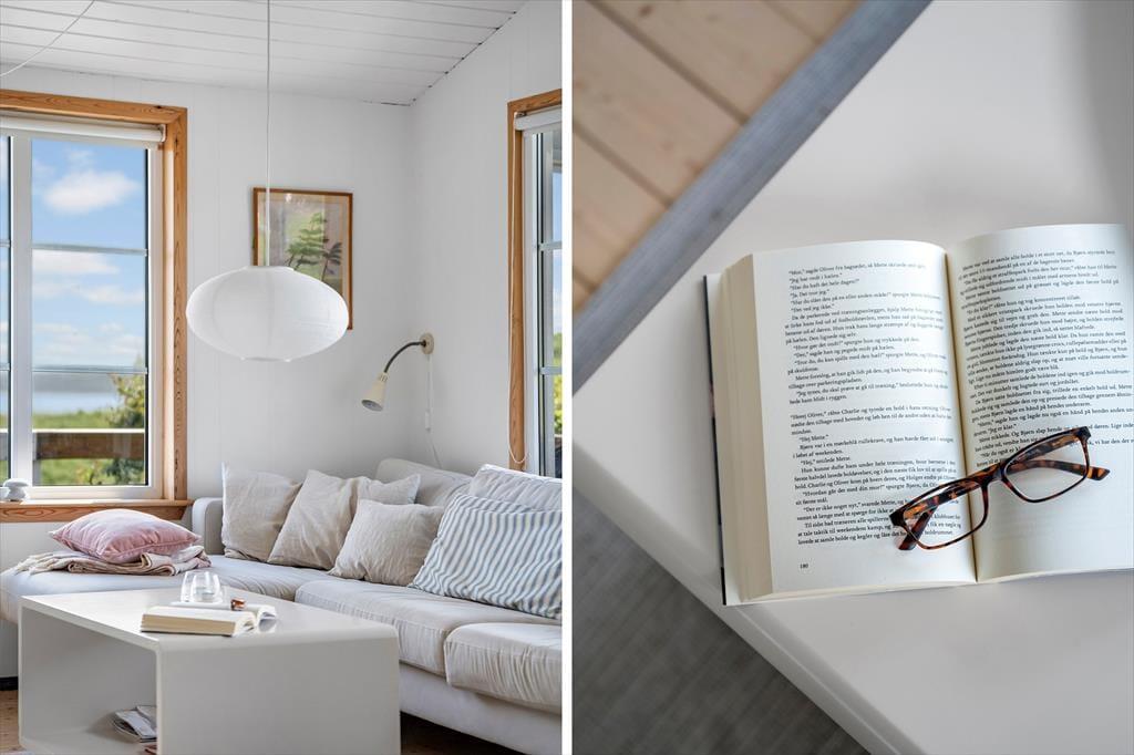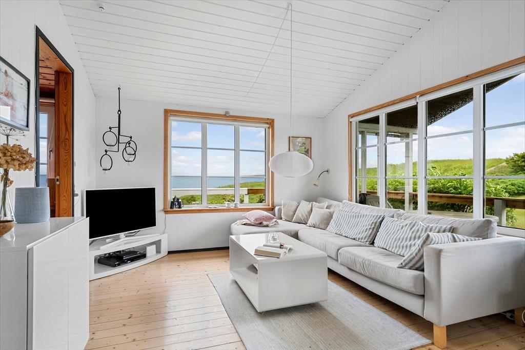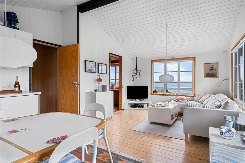 Det lyse og charmerende træsommerhus tager venligt imod dig, så snart du træder indenfor. Indretningen er hyggelig og harmonisk med træpaneler, der skaber varme, og vinduespartier, som inviterer naturens lys og farver ind i stuen. Her er det oplagt at synke ned i sofaen med et tæppe og en god bog, mens du lader blikket følge Limfjordens bevægelser i horisonten. Køkken og opholdsrum ligger i åben forbindelse og gør det nemt at være sammen – uanset om nogen står ved gryderne, og andre leger brætspil ved spisebordet. Huset har alt, hvad der skal til for at skabe hyggelige og afslappede dage for hele familien – eller måske for et par, der bare vil nyde hinanden og omgivelserne i fred og ro.
