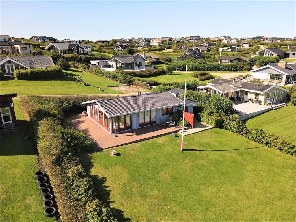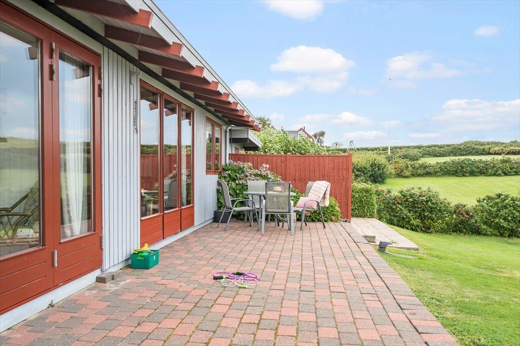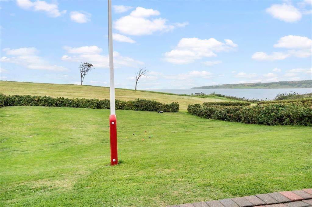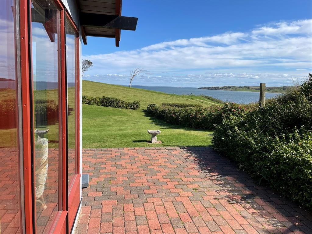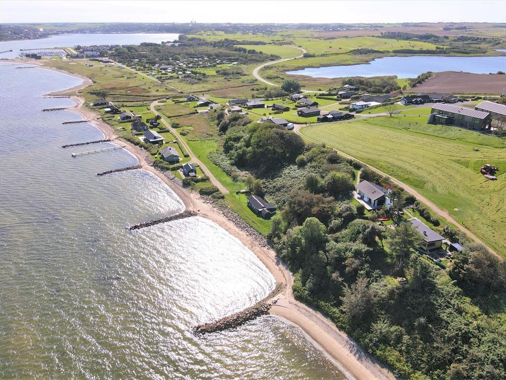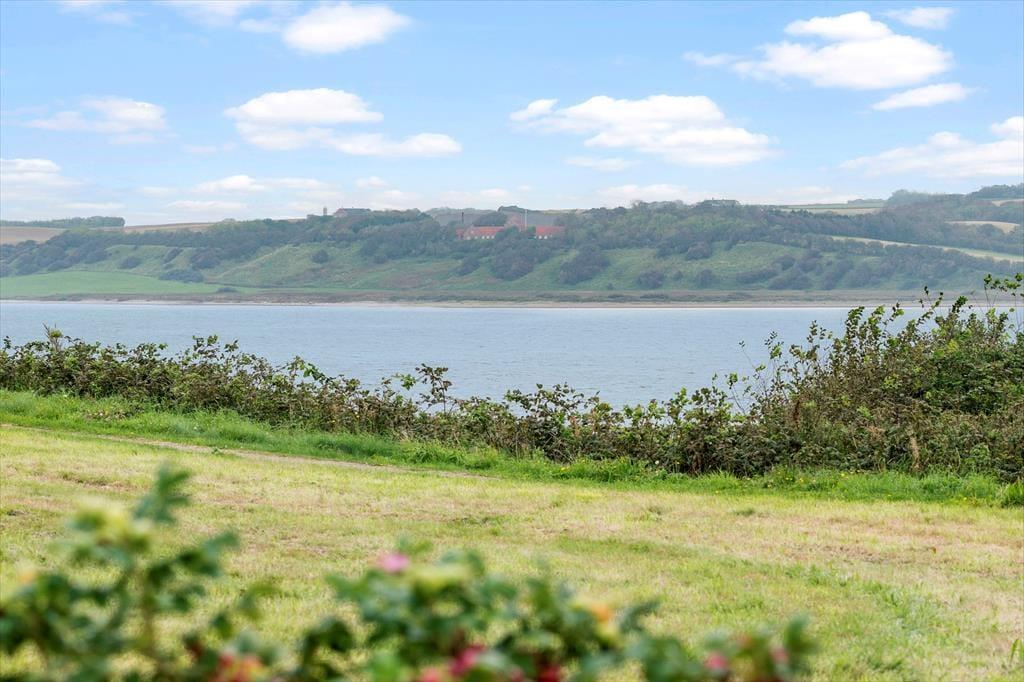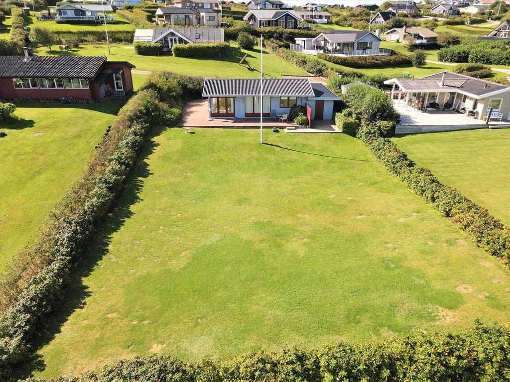 Udenfor inviterer den grønne græsplæne til mange timers boldspil, leg og afslapning under åben himmel. Børnene kan lege frit, mens de voksne slår sig ned med en bog eller tænder op i grillen – måske til et aftensmåltid under åben himmel, hvor solen langsomt går ned bag fjorden. Med kun 75 meter til stranden er det oplagt at starte morgenen med en frisk dukkert eller at bruge dagen ved vandet med sandslotte, krabbefiskeri og picnic. Huset har fine terrasseområder, hvor du kan finde læ for vinden eller nyde solen hele dagen. Det er med andre ord nemt at få ferien til at føles lang og afslappet i det fri.