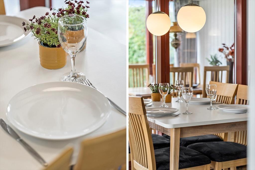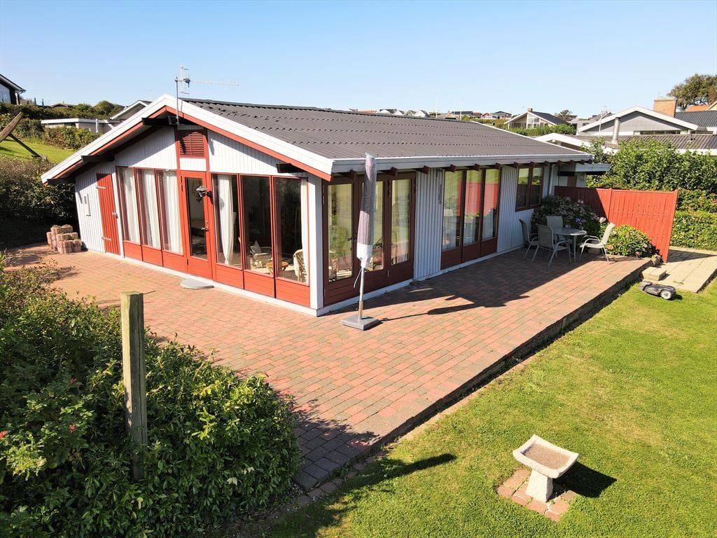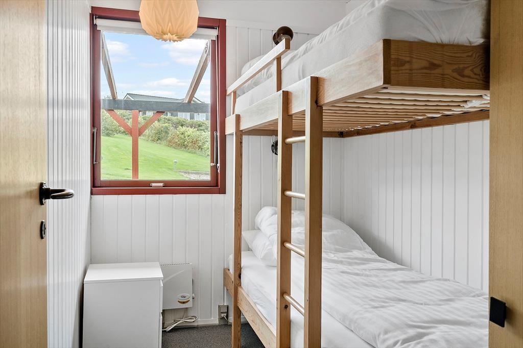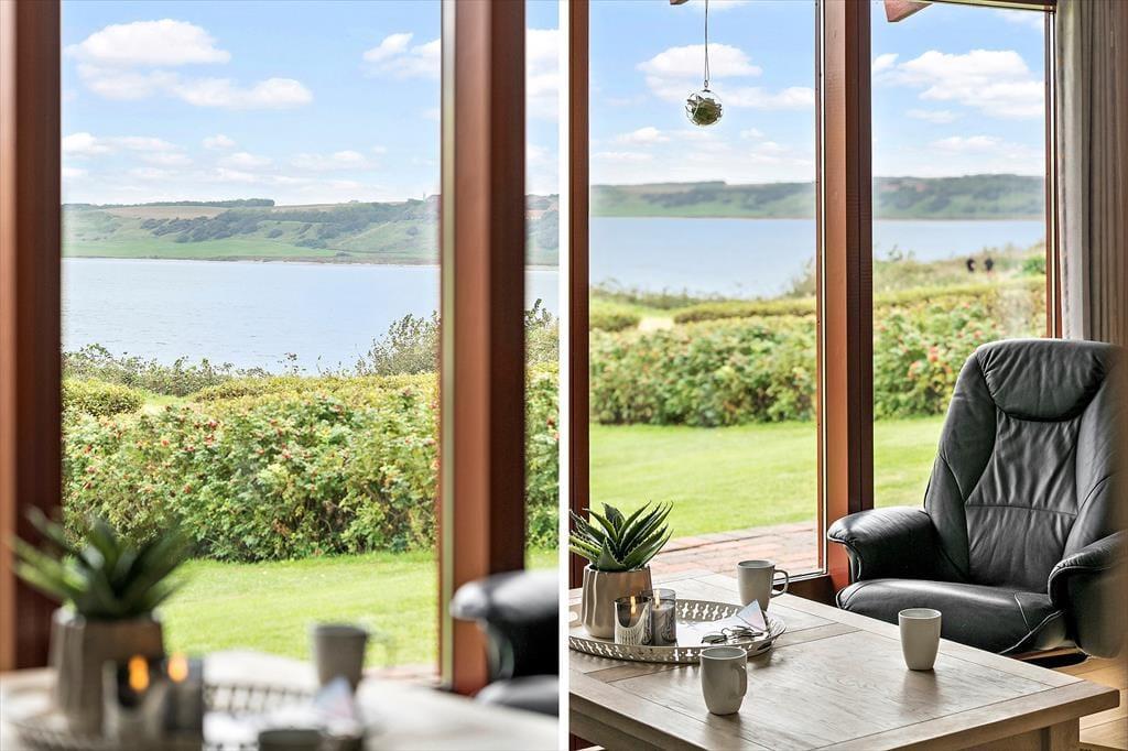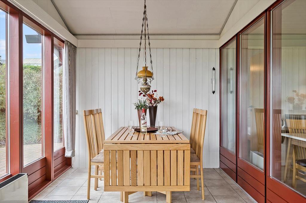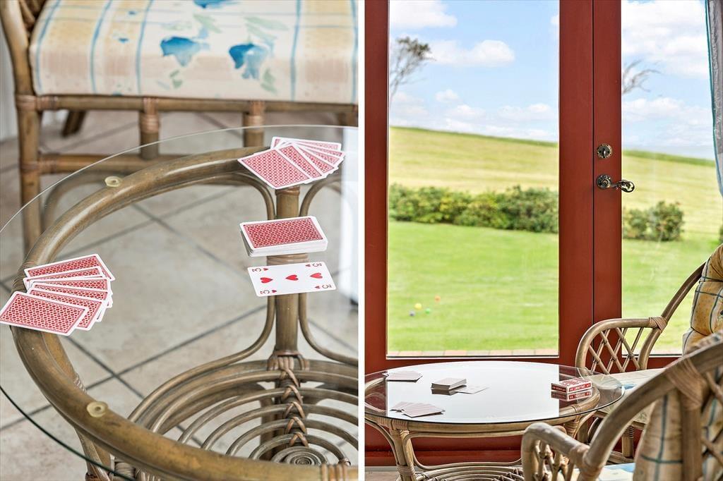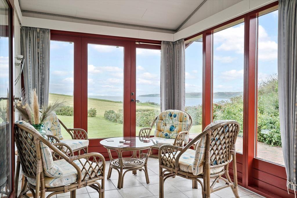 Når du træder ind i sommerhuset, mødes du af en lys og venlig indretning, der emmer af klassisk feriestemning. Huset er praktisk og enkelt møbleret, og i det åbne køkken- og stueområde er det let at være sammen – uanset om I laver mad, spiller kort eller bare slapper af med en god film. Et af husets særlige kendetegn er den hyggelige udestue, som ligger med skøn udsigt over området og fjorden i baggrunden. Her kan du sidde i tørvejr og varme omgivelser, mens du nyder lyset, naturen og måske en stille kop kaffe eller et glas vin i godt selskab. Det er en oplagt plads at trække sig tilbage til – uanset årstid og vejr.