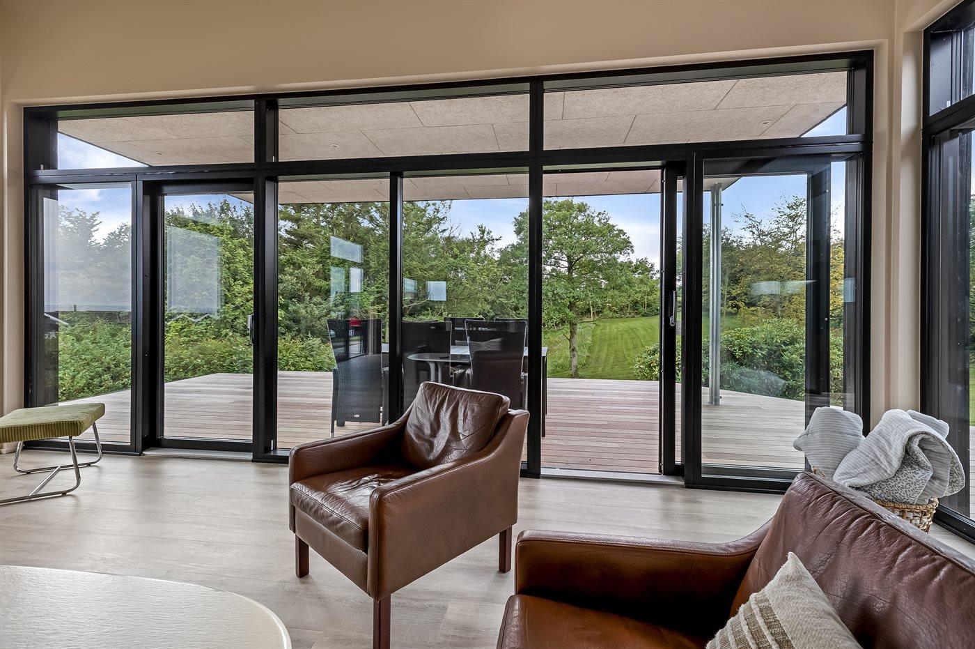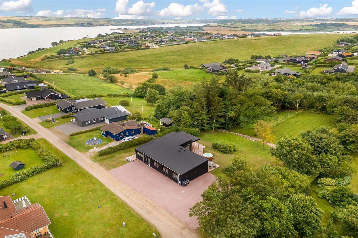 Luksuriøst feriehus ved Lem Vig med spa, biopejs og flot udsigt over fjorden.