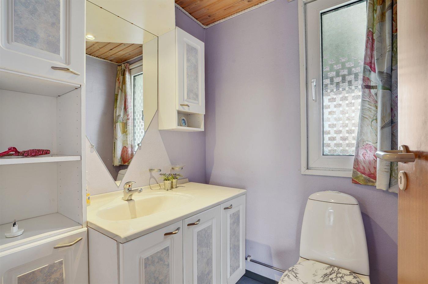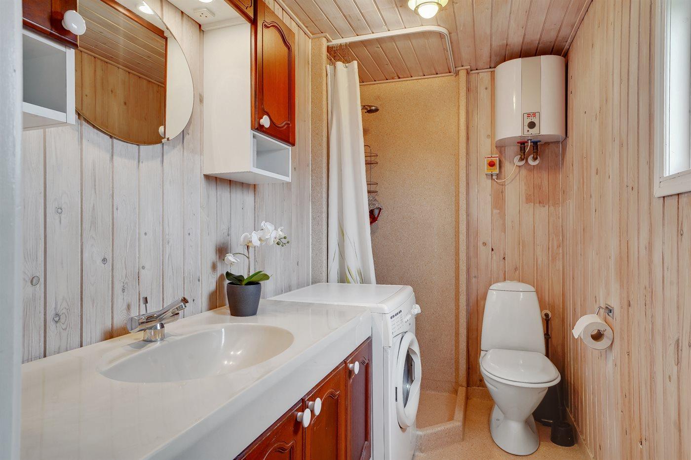 Der er 1 badeværelse med bruser og 2 toiletter, heraf 1 gæstetoilet. Der er gulvvarme på 1 badeværelse. Der er gulvvarme på gæstetoilettet.