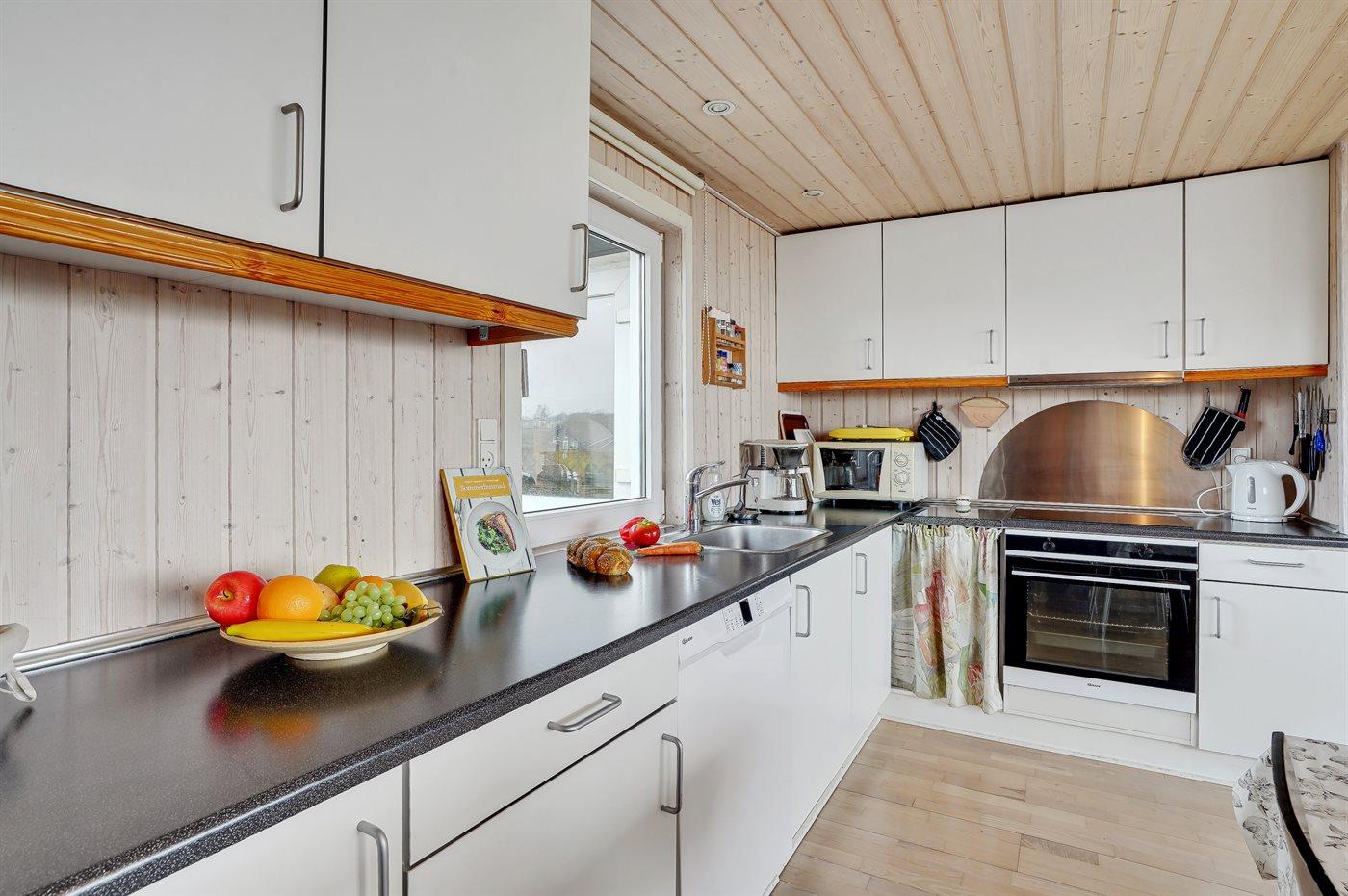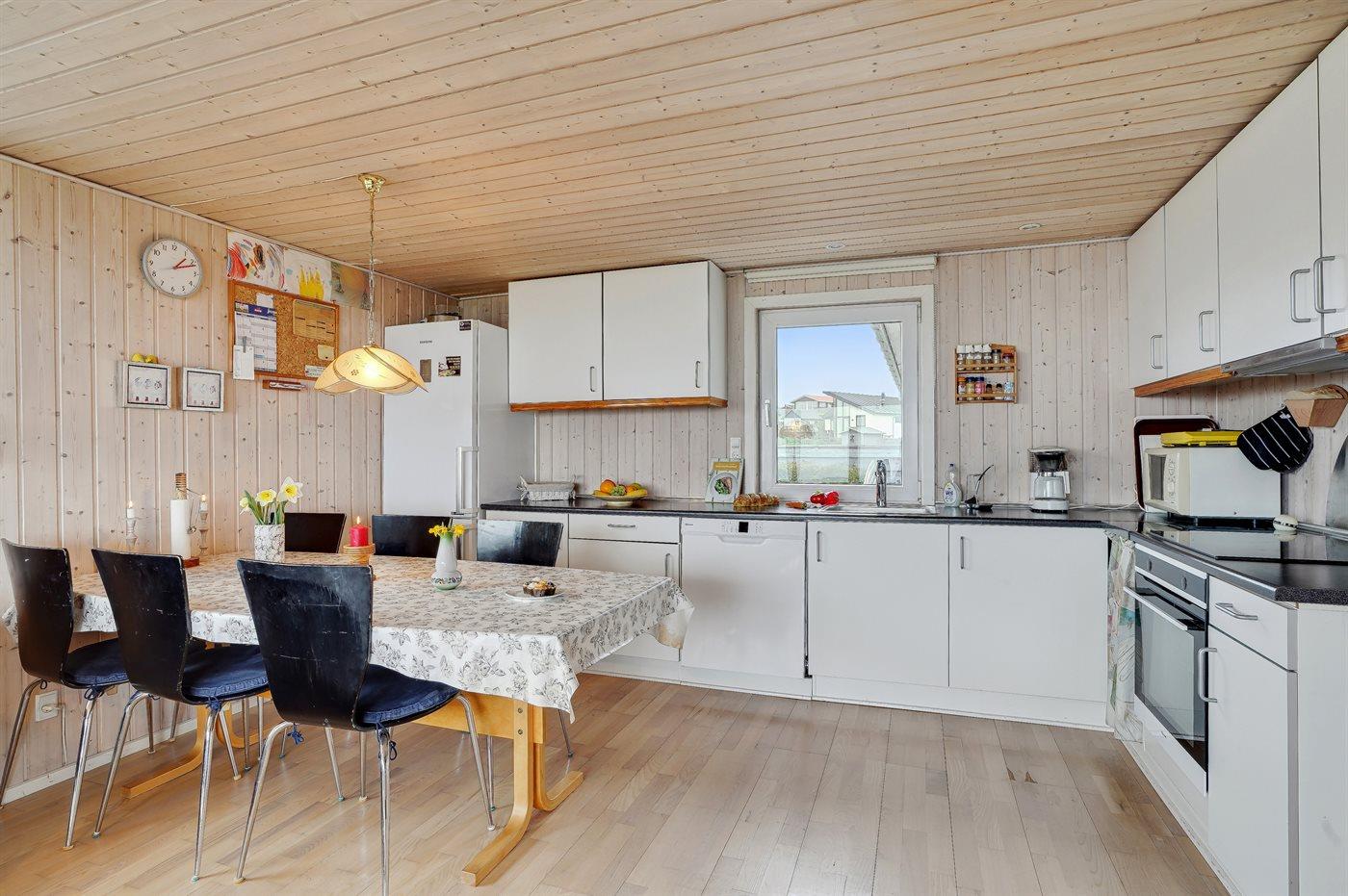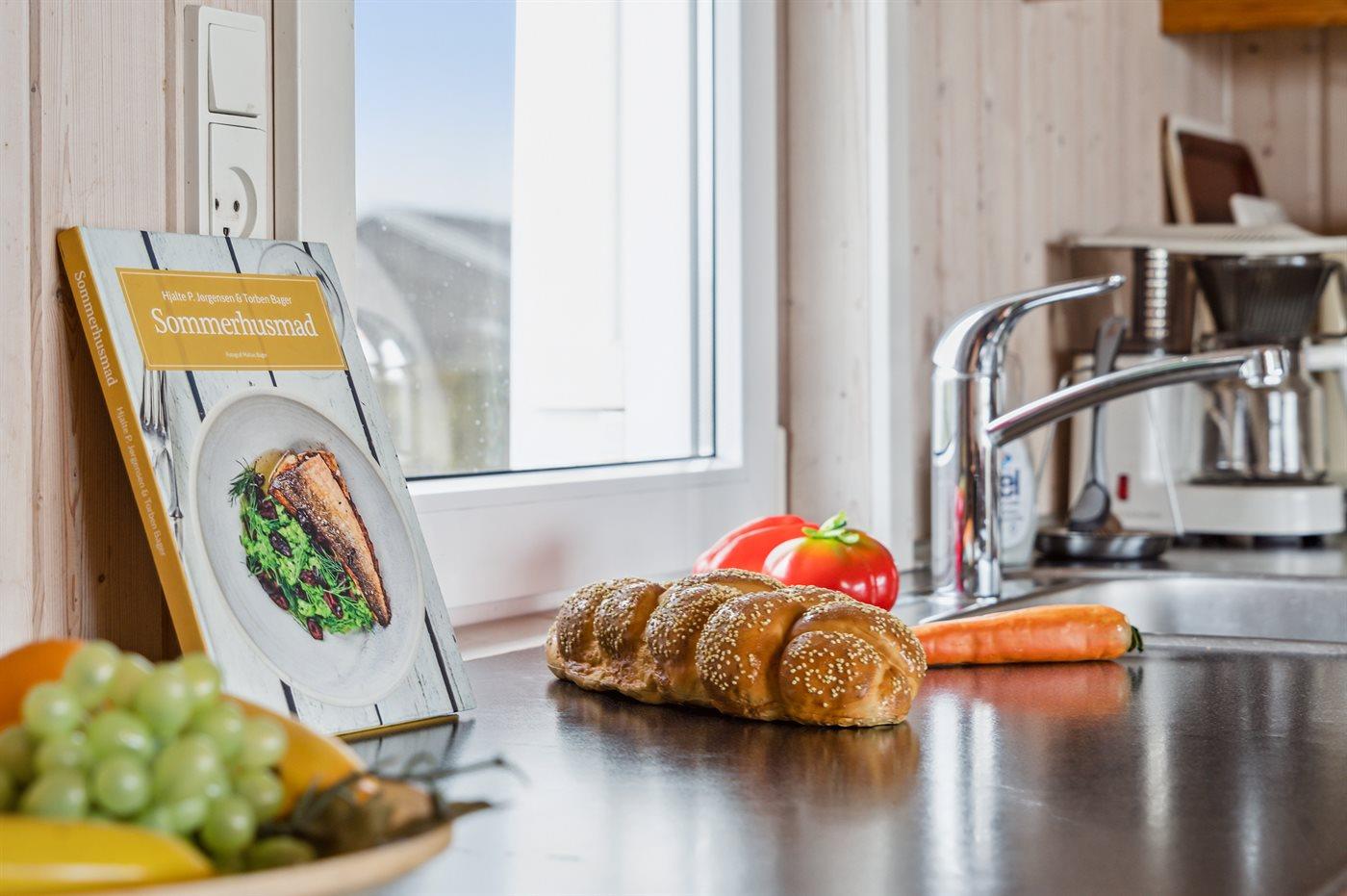 Køkkenet er udstyret med 1 køleskab. Der er 4 keramiske kogeplader, varmluftovn, mikrobølgeovn samt opvaskemaskine.