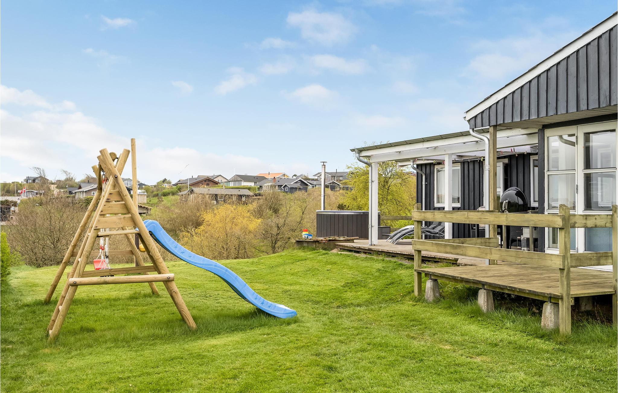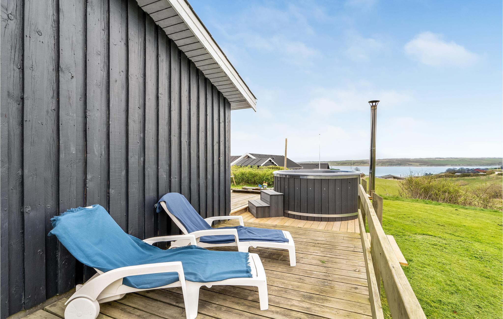 Dette dejlige feriehus ligger på en stor naturgrund med en flot og unik udsigt over fjorden. Huset ligger i et roligt ferieområde som indbyder til gå-, løbe- og cykelture. Det er hyggeligt indrettet, og er velegnet til såvel børnefamilier som par. Af byer i nærheden kan Lemvig fremhæves - også kaldet Vestjyllands bjergby. Byen ligger i et flot kuperet område, og er en hyggelig handelsby. Harboøre, som er en mindre stationsby, ligger kun 12 km fra feriehuset. Lidt vest for selve Harboøre by ligger Flyvholm Redningsstation, der nu fungerer som et museum. Lidt længere væk (22 km) ligger Thyborøn, som byder på flere seværdigheder. Her kan nævnes Kystcentret Thyborøn, hvor læring om naturen ved Vesterhavet og Limfjorden foregår ved leg og brug af sanser. Jyllands Akvariet, som byder velkommen til en forunderlig verden under vandet, og Sneglehuset, som er en hel unik bygning, dekoreret med millioner af snegle og skaller, både ude og inde - alt sammen lavet af én enkelt mand gennem et helt liv!