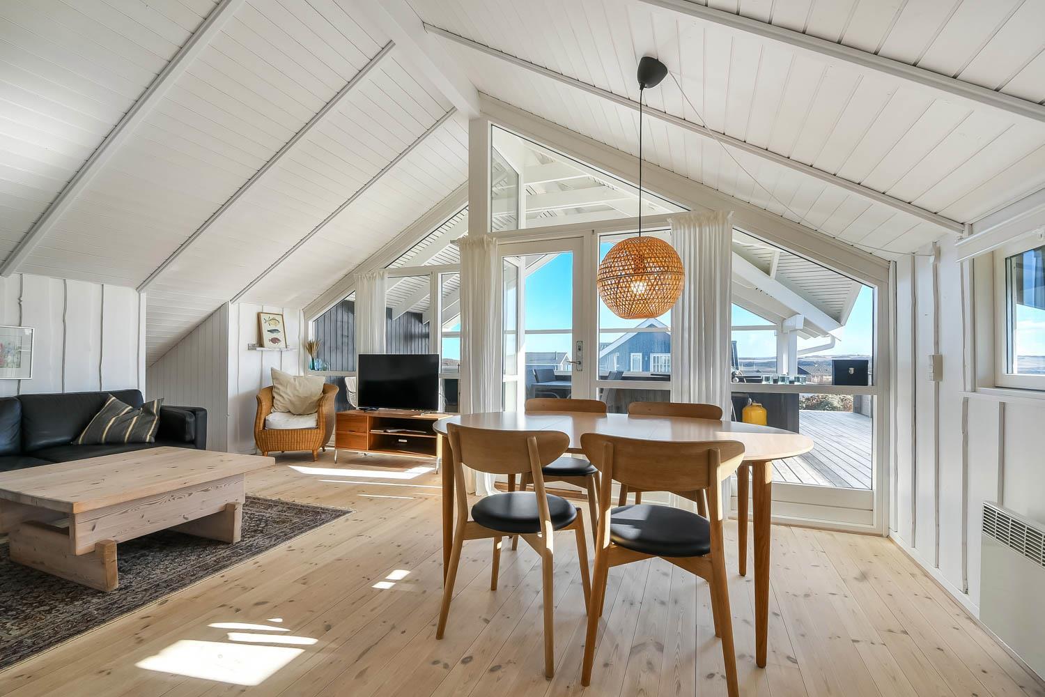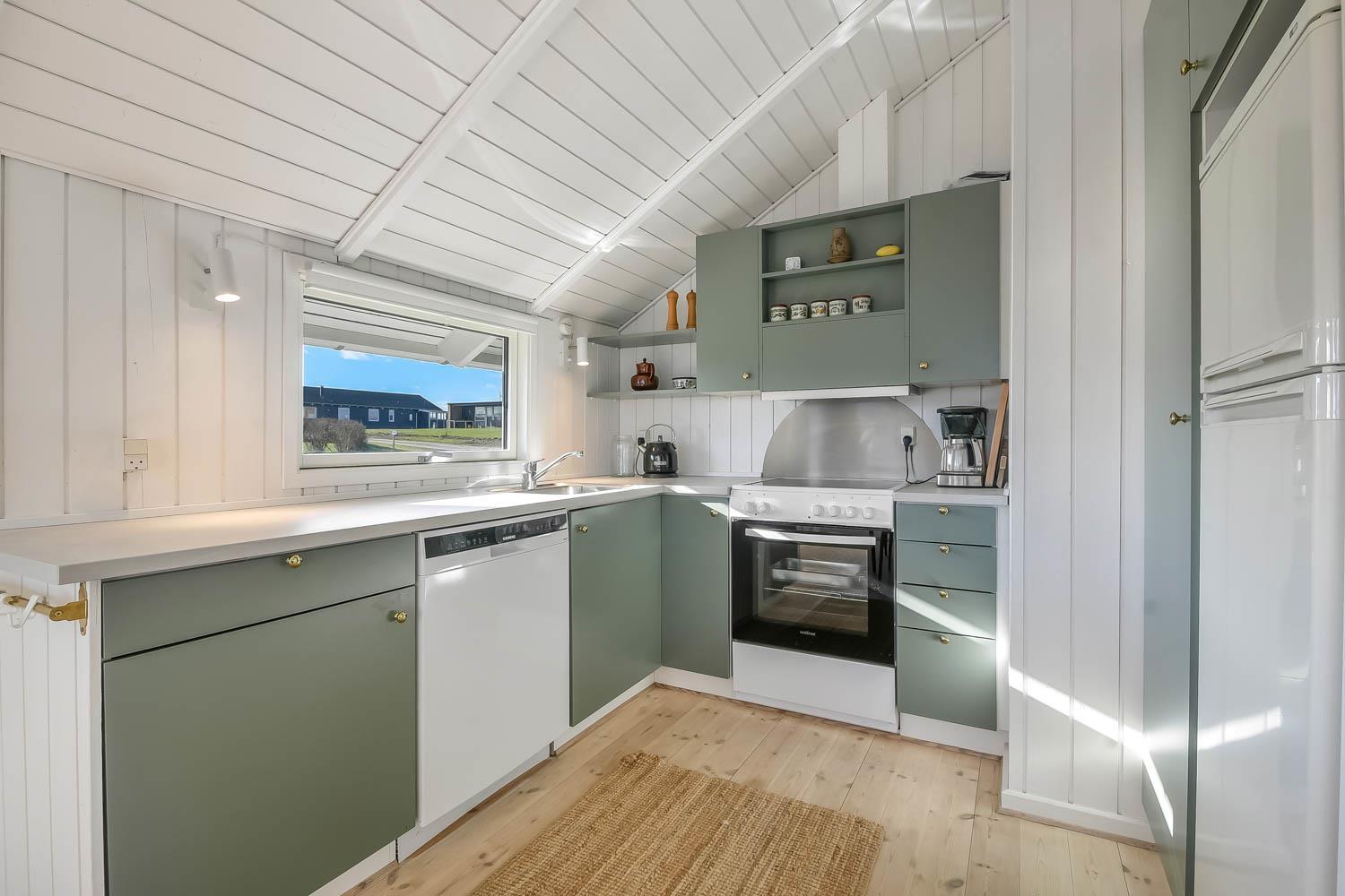 Feriehus på ca. 72 m2. fra 1998 og er delvis renoveret i 2022. Kombineret opholdsstue og køkkenhjørne med loft til kip samt store vinduespartier, med flot kig til Limfjorden. Opholdsstue med hyggelig møblering, smart-TV med danske og tyske programmer samt mulighed for streaming af TV-programmer / radio-programmer / Apps via Chromecast. Tæt ved køkkenhjørnet er spisebordet praktisk placeret. Køkkenhjørne med elektrisk komfur, emhætte, opvaskemaskine, og køleskab med fryseboks. Derudover 2 soveværelser (1DS, 1DS) med nye hårde gulve. Badeværelse med toilet, håndvask, bruser og klinkegulv med gulvvarme. Rygning er ikke tilladt i huset. Max 2. husdyr tilladt.