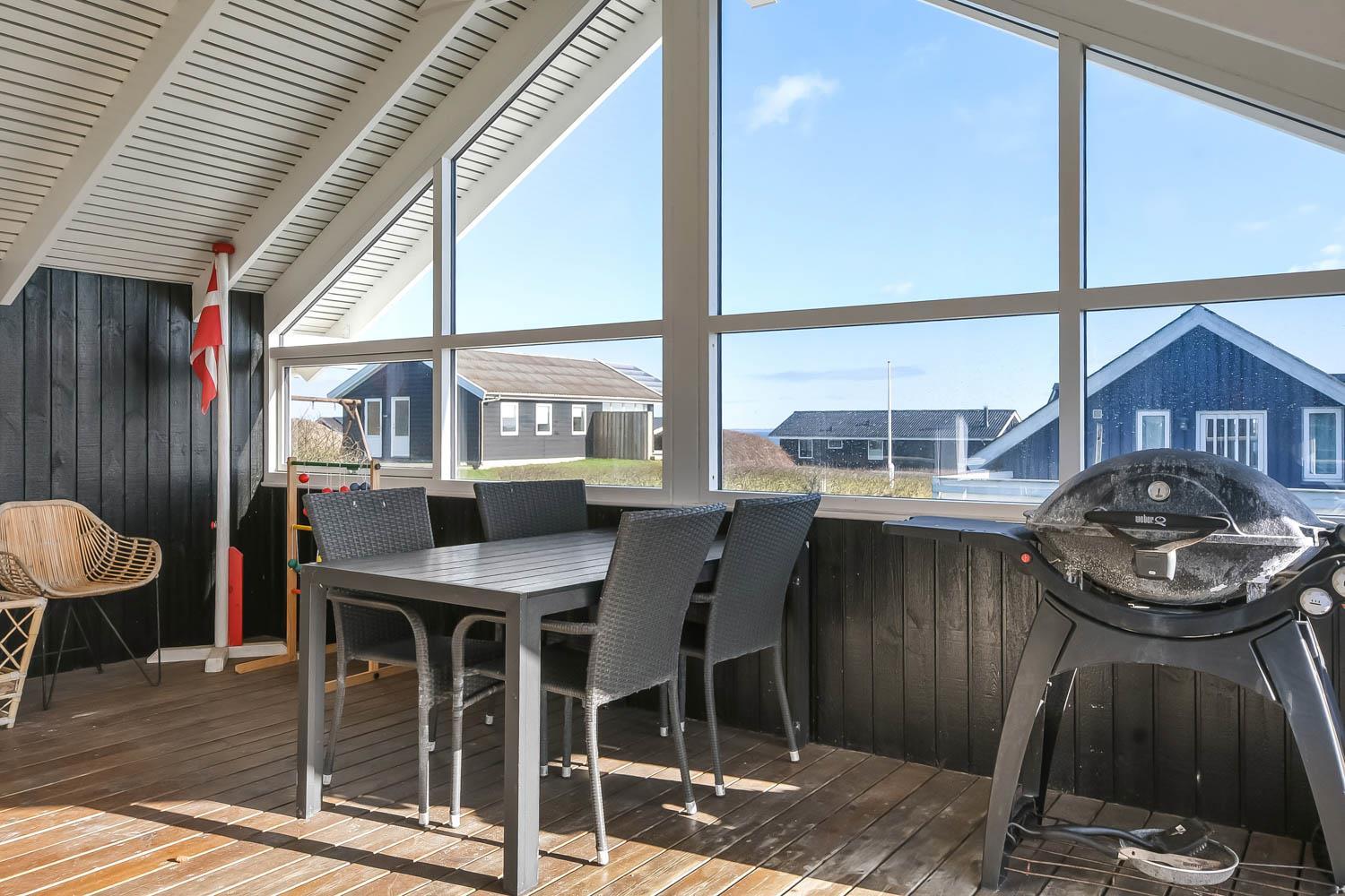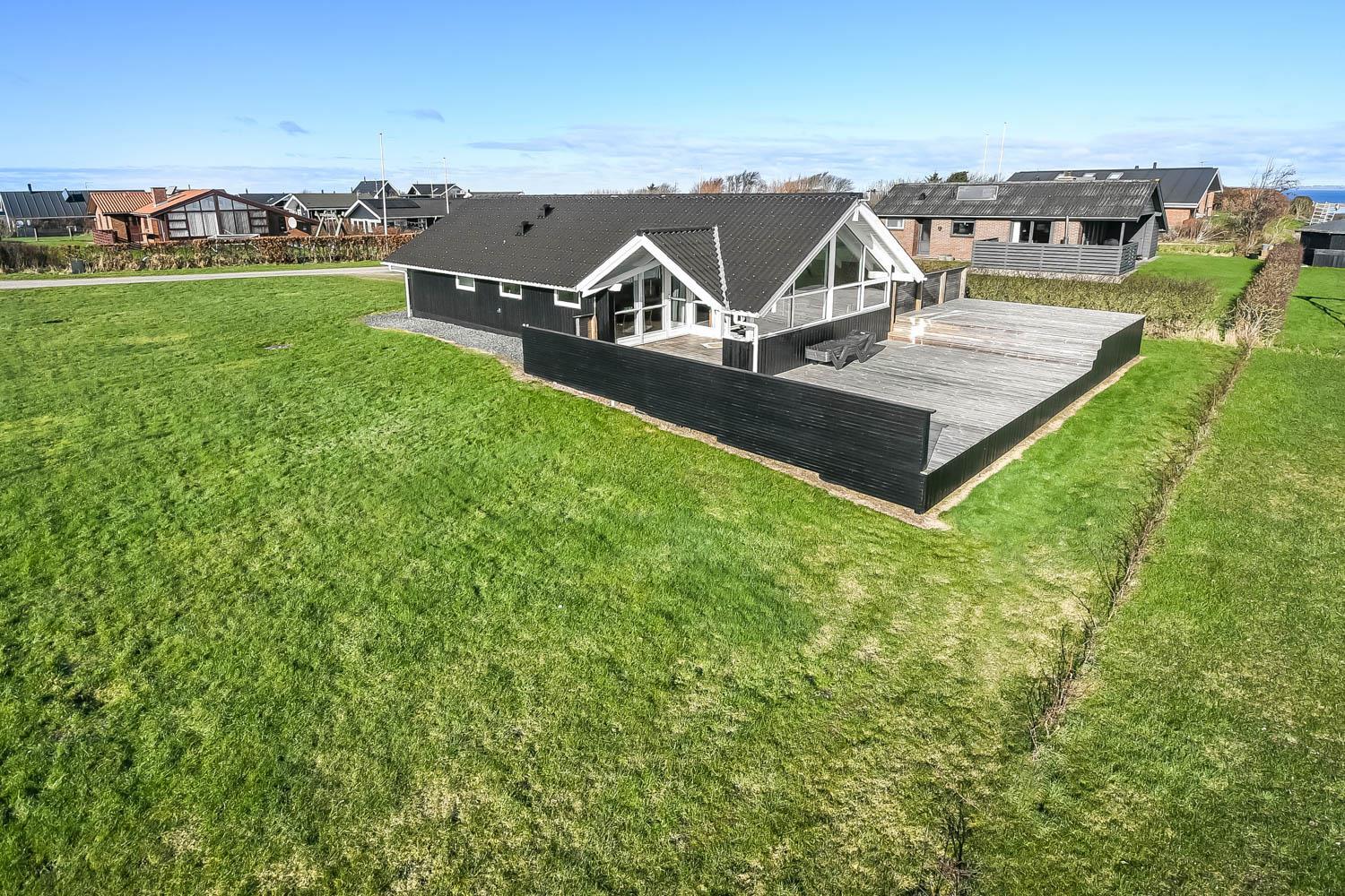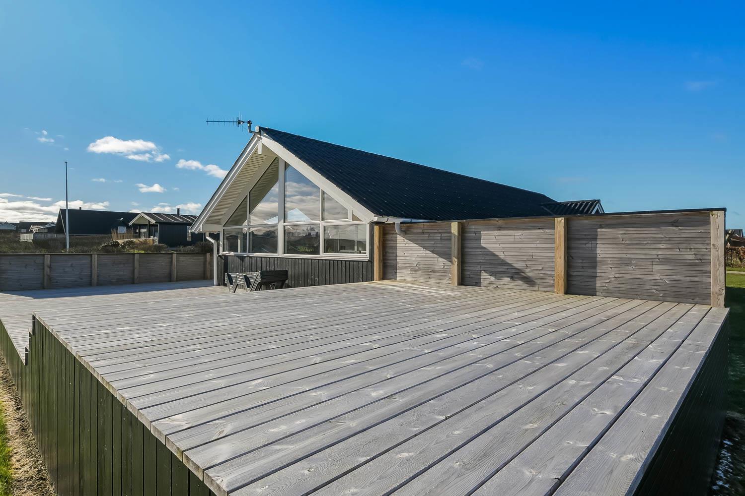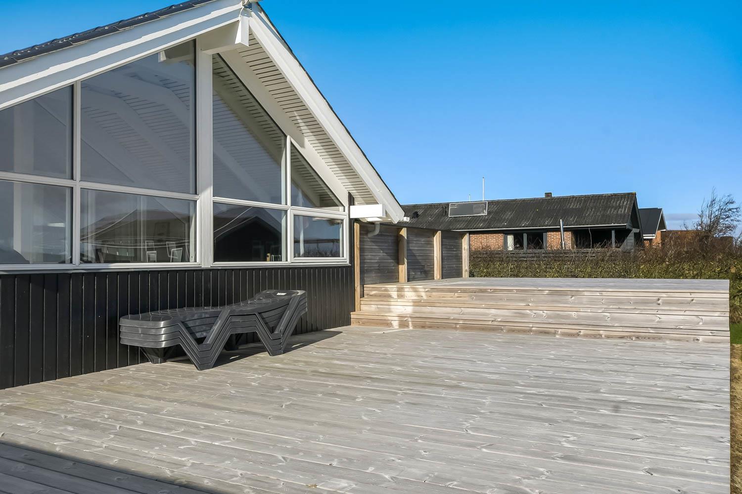 Husets store overdækket træterrasse er noget helt særligt. Herudover findes der også altid en plads i solen på huset terrasse som ikke er overdækket. Fra begge terrasser er der flot kig til Limfjorden. Havemøbler, solvogn og grill kan flyttes rundt på terrasserne efter behag. Højt, ugeneret beliggende på en stikvej på en velholdt grund på ca. 844 m2 kun 500 m. fra Limfjorden. Fra huset findes der stisystemer, som på få minutter fører direkte ned til fjord, badestrand og badebroer. Nær ved huset ligger også den nye flotte naturlegeplads i træ med rutsjebaner, gynger og meget andet. Her findes også iskiosk og restaurant. Der er i øvrigt kun ca. fire km til Lemvig by, som er en livlig handelsby med mange butikker, fiskerestaurant, biograf, skaterbane, museum mm.