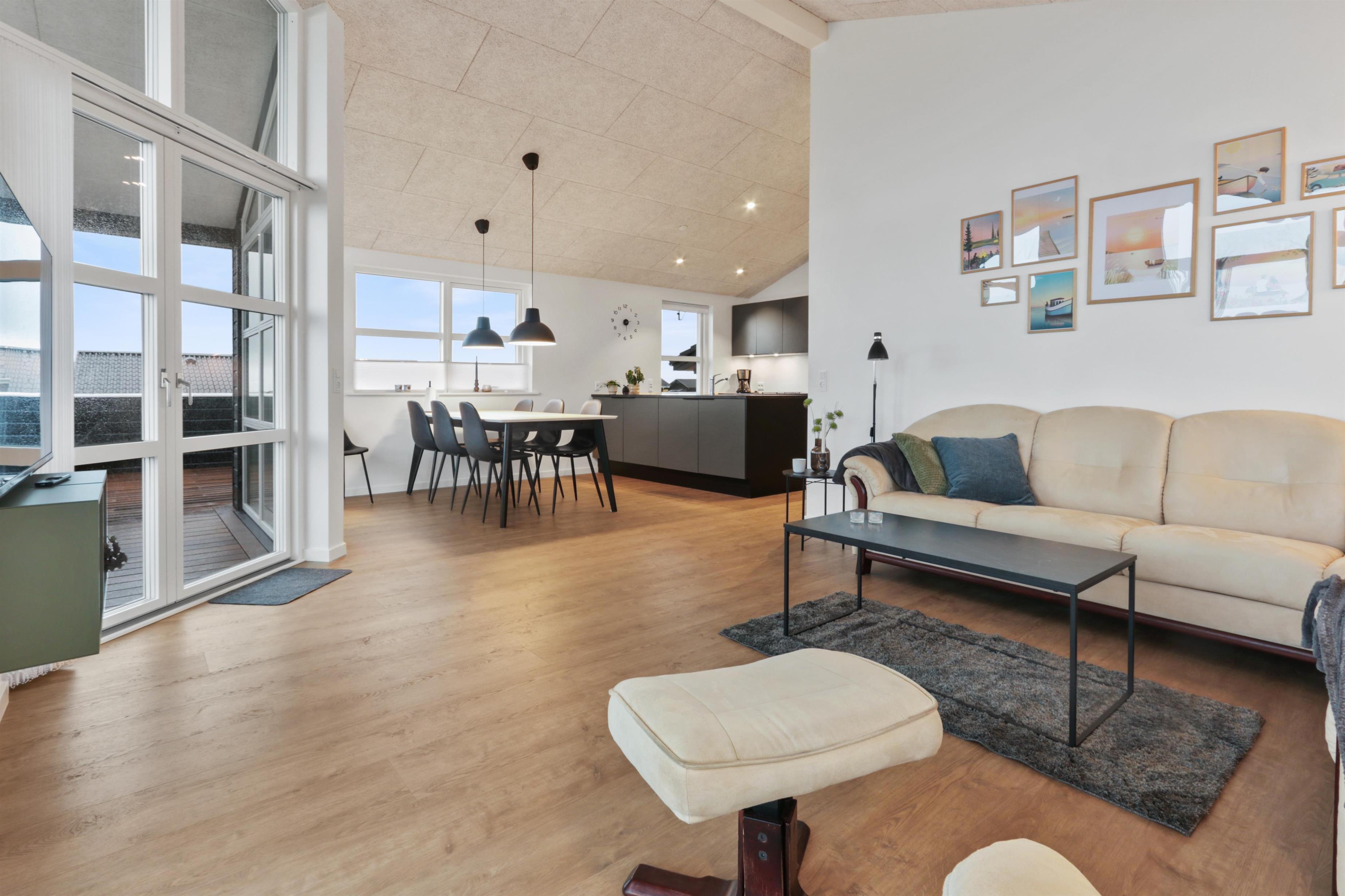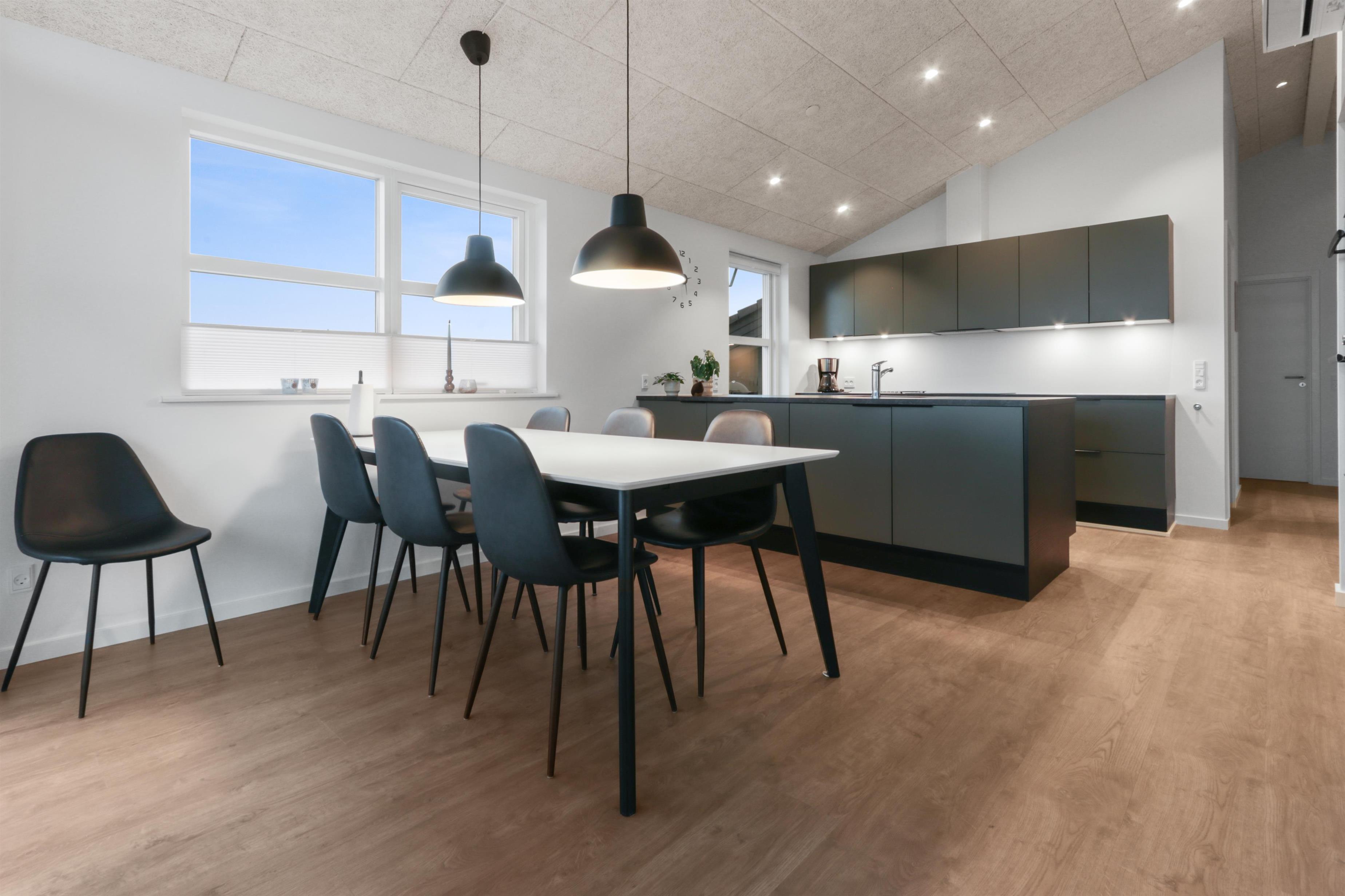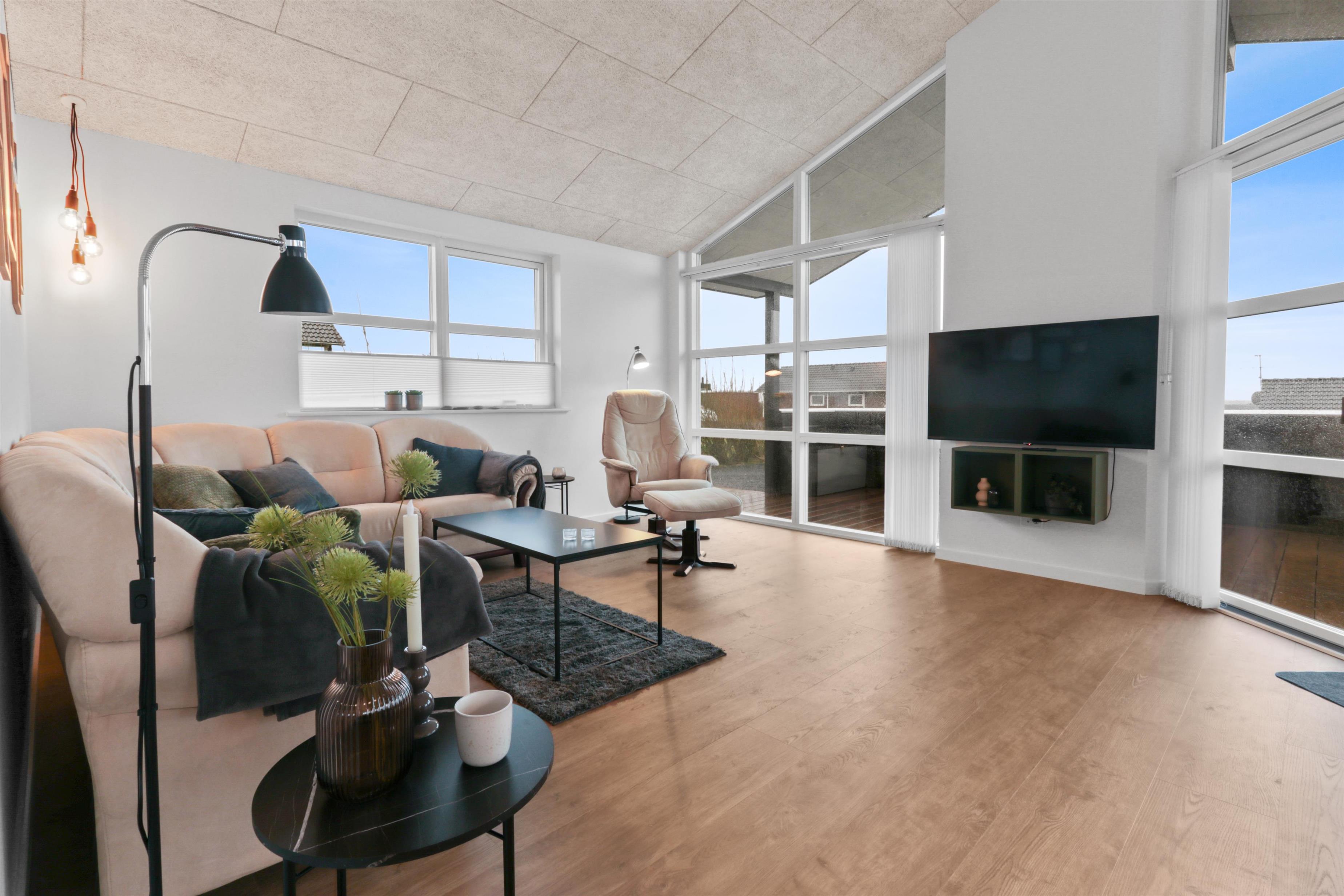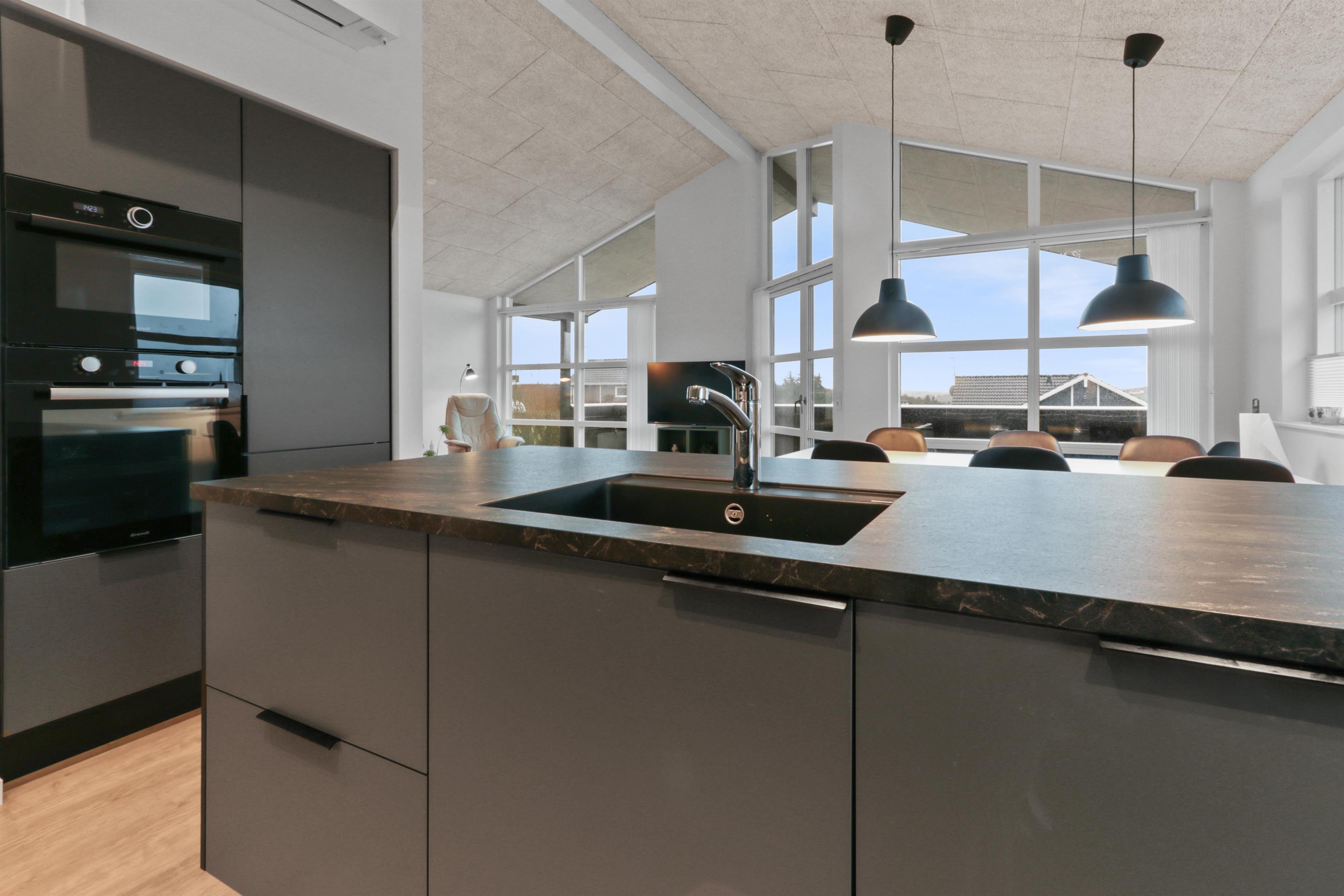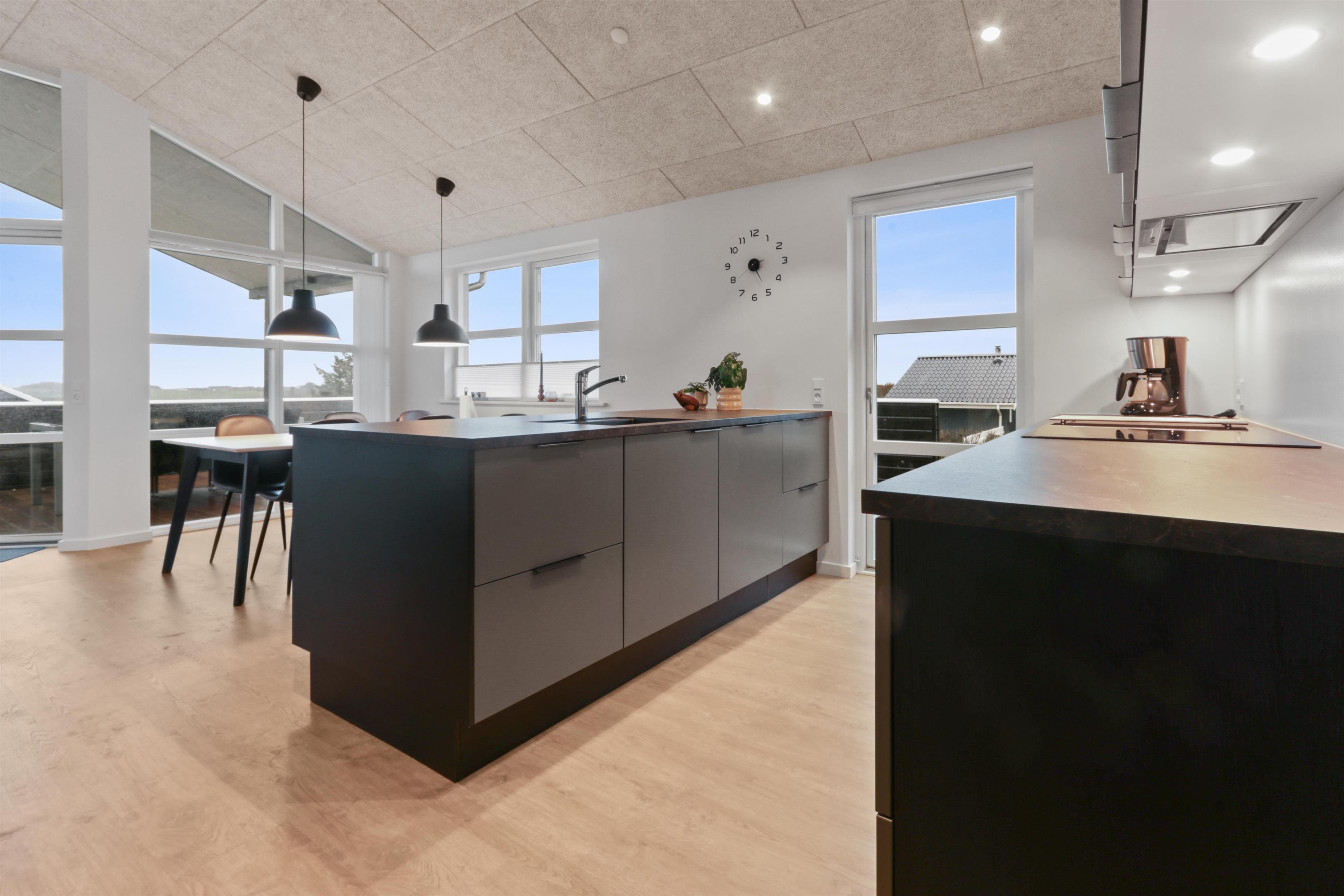 Flot, moderne feriehus på 97 m2. Praktisk, indbydende entré, med siddeplads når skoene skal snøres. Kombineret opholdsstue og køkkenhjørne med loft til kip samt store vinduespartier, som bekræfter den unikke udsigt. Godt udstyret køkkenhjørne i flotte, moderne farver. Alt i service og køkkengrej samt glaskeramiske kogeplader, emhætte, mikrobølgeovn, indbygningsovn, airfryer, opvaskemaskine, køleskab med fryseboks. Dejlig opholdsstue med polstermøbler, spisebord, smart-TV med mulighed for streaming af radio- og Tv-programmer samt danske og tyske programmer. Varmepumpen begrænser udgiften til forbrug på alle årstider. 3 gode soverum med lækre nye madrasser (1DS, 1DS, 1DS). 2 flotte badeværelse med bruser, toilet, håndvask, klinkegulv med gulvvarme. I det ene badeværelse er der også vaskemaskine og tørretumbler. Praktiske hårde gulve i hele huset som er lette at rengøre. Ikke ryger hus. Max 1. husdyr tilladt.