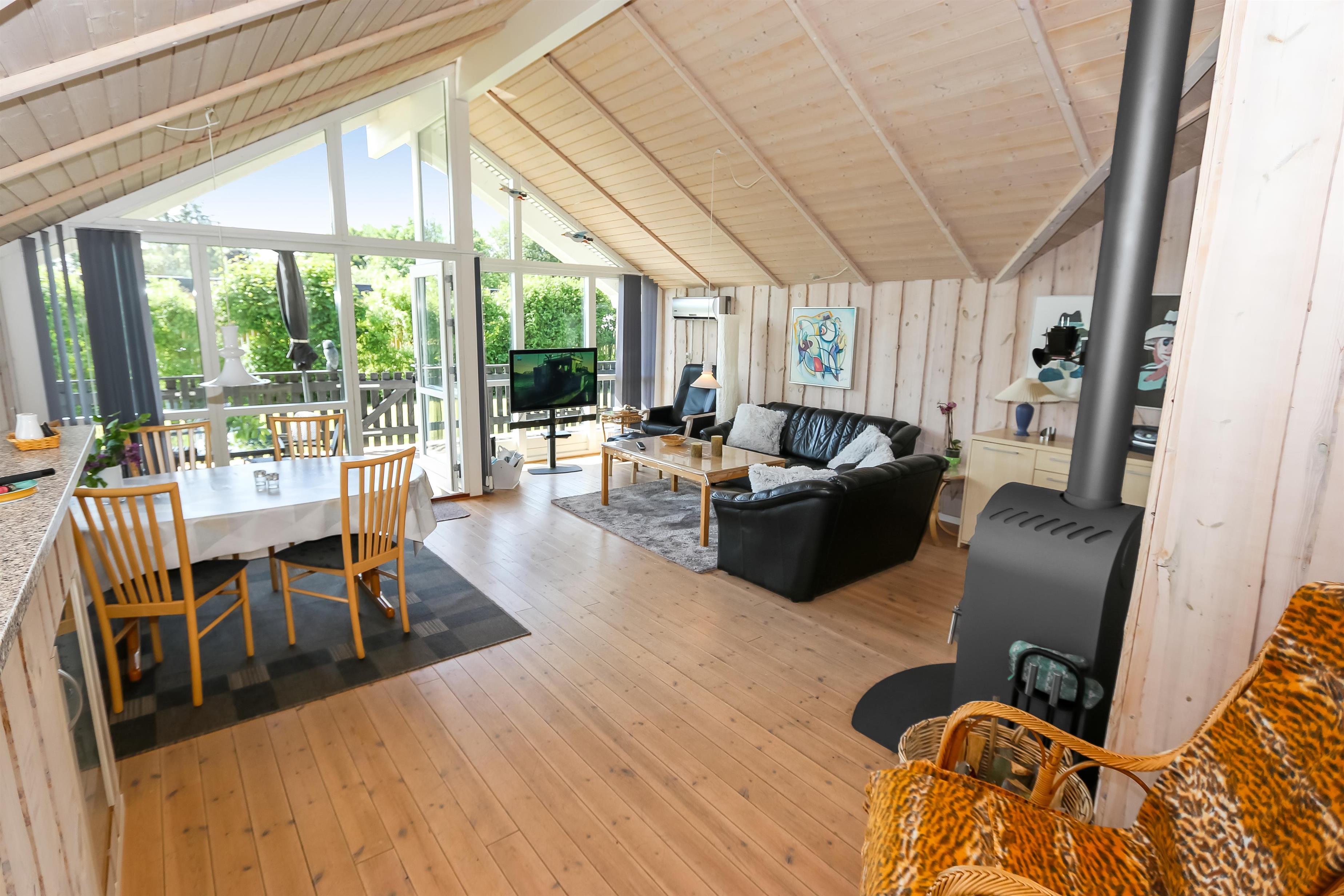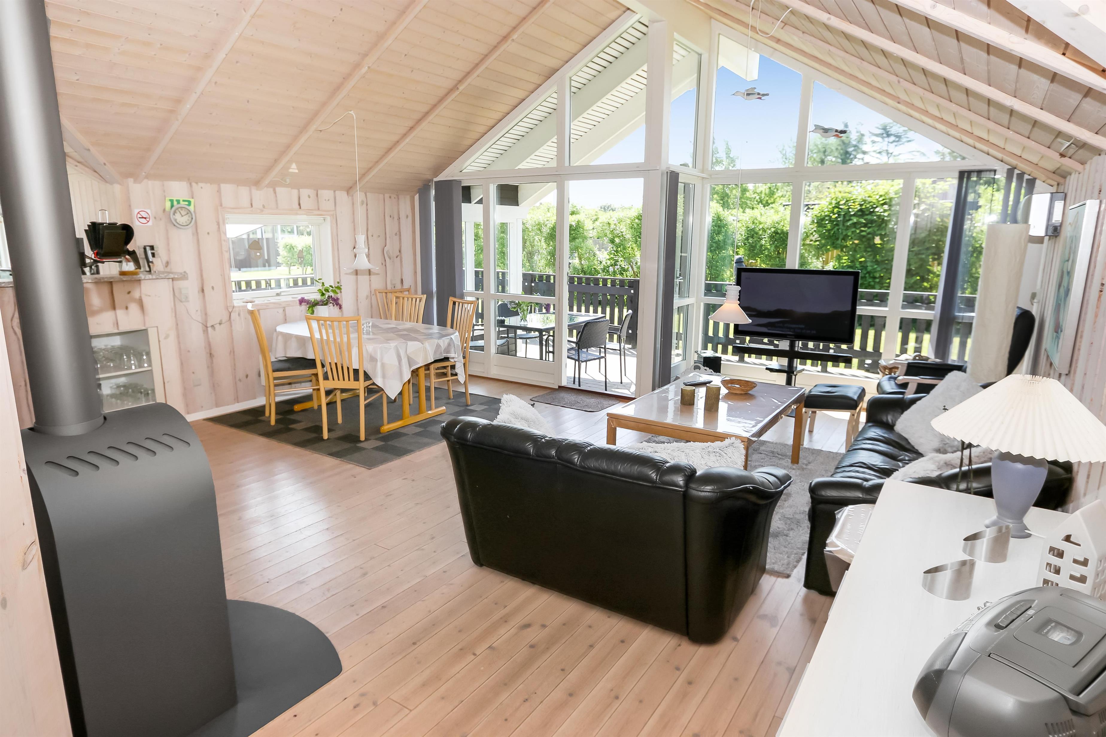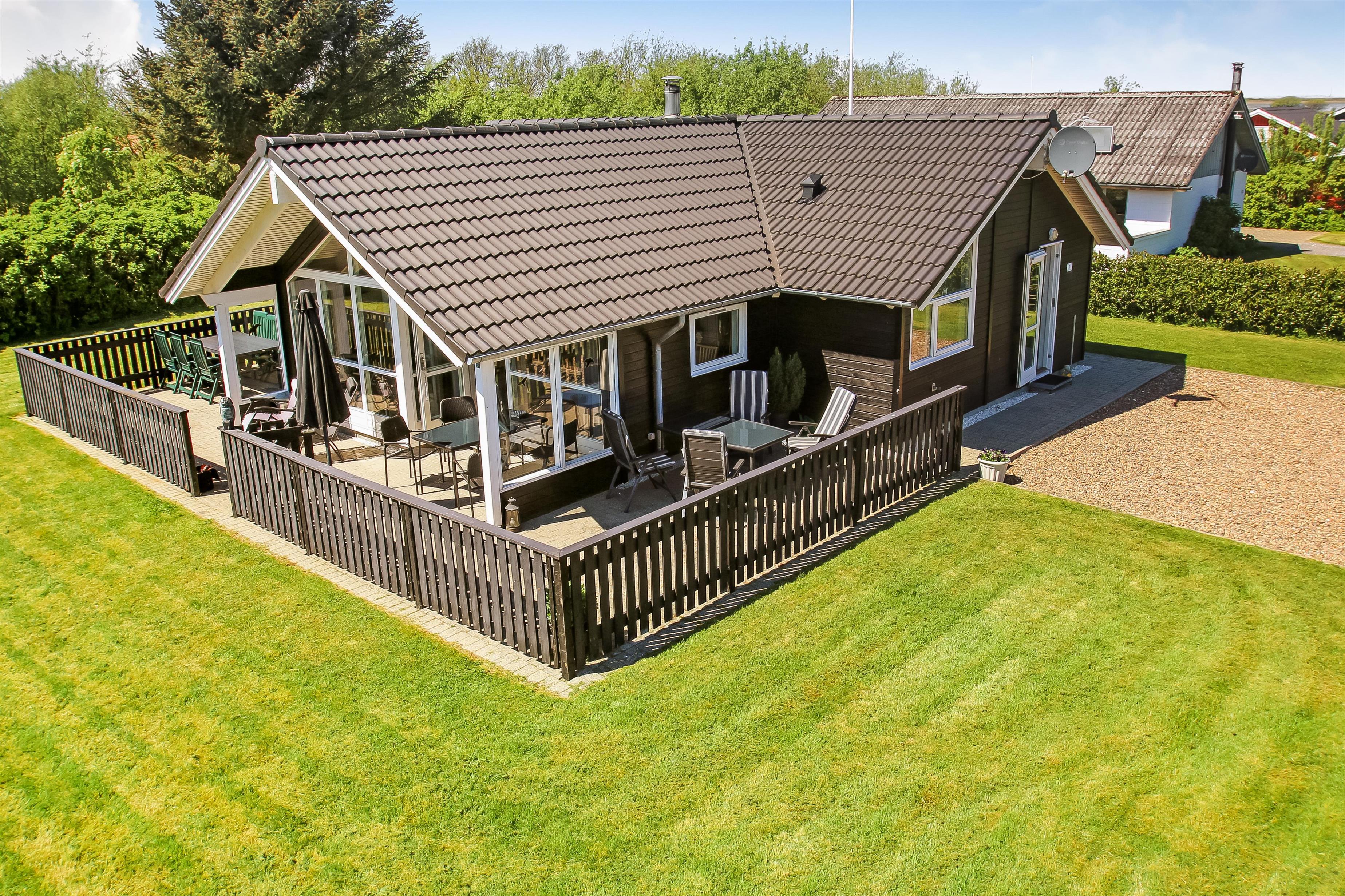 Beliggende på en ca. 1.100 m2 stor, velholdt grund kun 200 fra Limfjorden. Stort, delvist overdækket og indhegnet terrasseanlæg med havemøbler, solsenge og grill. Terrassen går hele vejen rundt om huset. For enden af den velholdte græsplæne er der lavet en fantastisk, udendørs, naturlig aktivitets område . Her er der altid læ samt en plads i solen. Der er bålplads, sandkasse og trampolin. Det perfekt område til leg og hyggeligt samvær. Perfekt til familier med mindre børn. Et lækkert feriehus på alle årstider. Fra huset findes der er dejligt stisystem som fører direkte ned til vandet på få minutter. Ca. 400 m fra huset ligger den nye flotte naturlegeplads i træ med fodboldbane og rutsjebane. Der er kun fire km til Lemvig, som er en livlig handelsby med mange butikker, fiskerestaurant, museum m.m. Tager man bilen er en tur til Thyborøn en oplevelse i sig selv og klares på 20 min. Her er der flere forskellige aktiviteter som fiskeriauktion, Sea War Museum eller besøg det spændende Jyllandsakvarie, hvor børnene kan se og røre ved fisk og krabber, eller besøg det helt unikke Sneglehus. Dagen sluttes af med is i hånden, mens at I går tur langs havnekajen og ser på alle fiskekutterne.