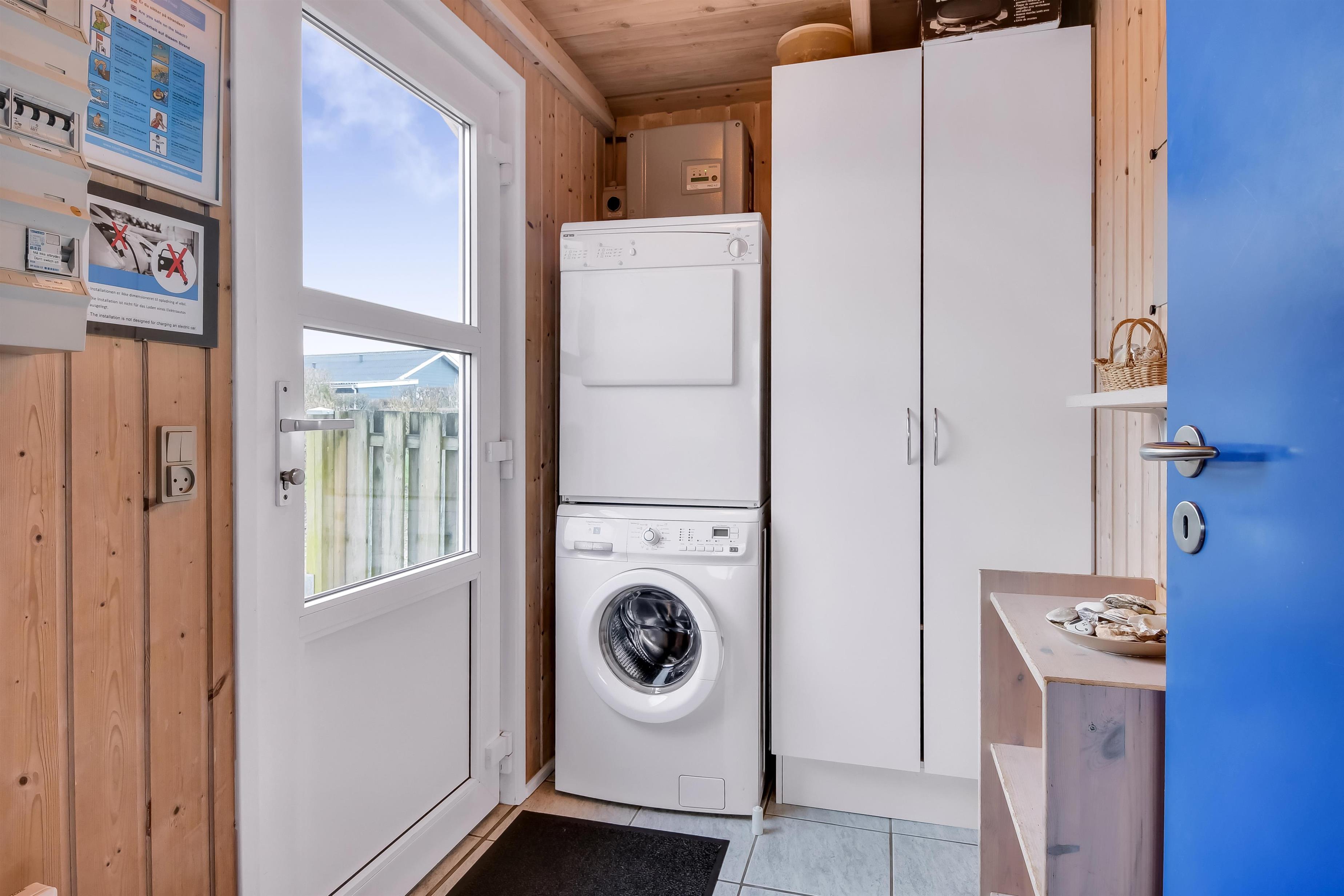 Køkkenet er velindrettet og kombineret med stuen, som byder på kamin, farve-tv med DR1 og satellit (med tyske kanaler). Der er installeret varmepumpe for ekstra komfort.