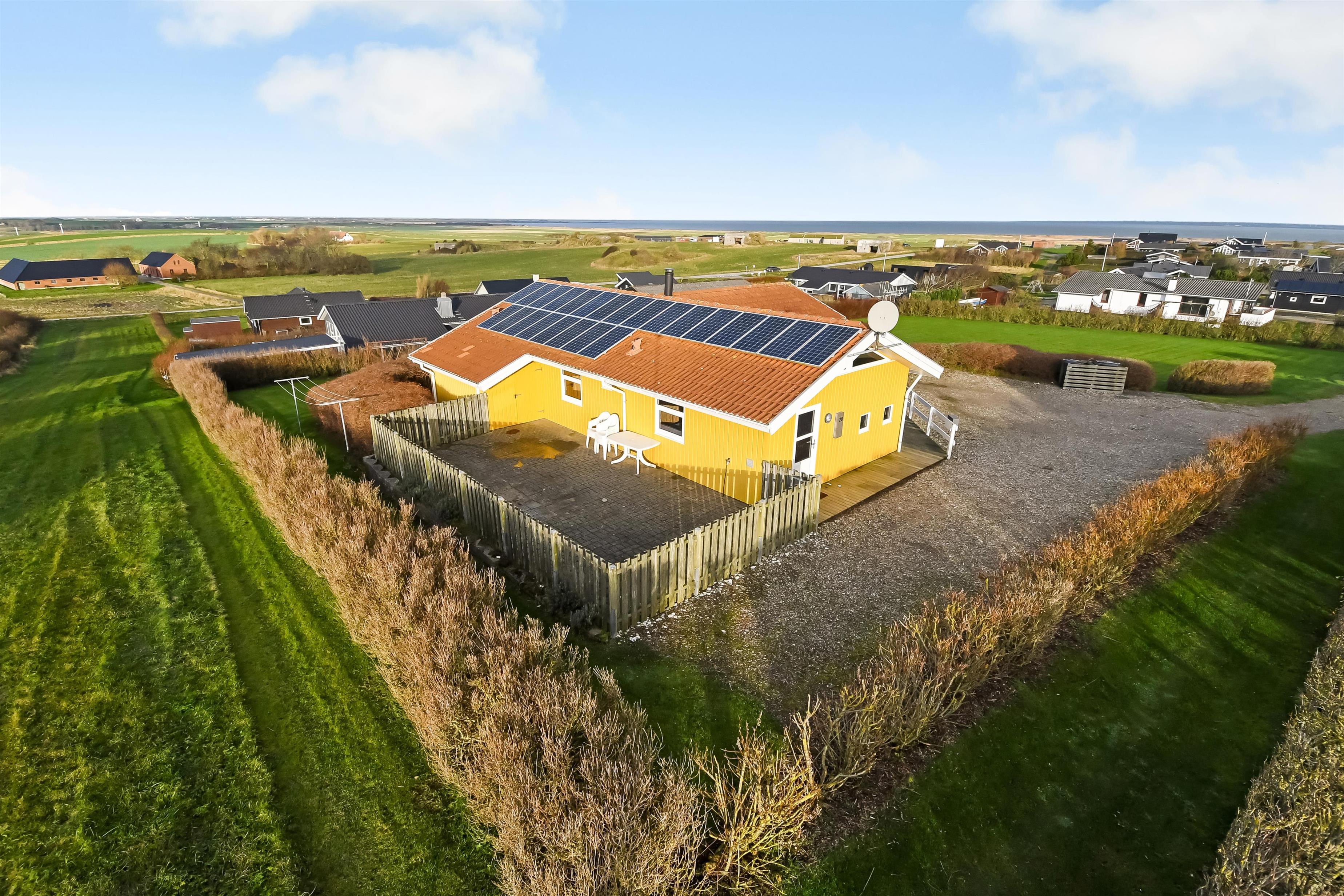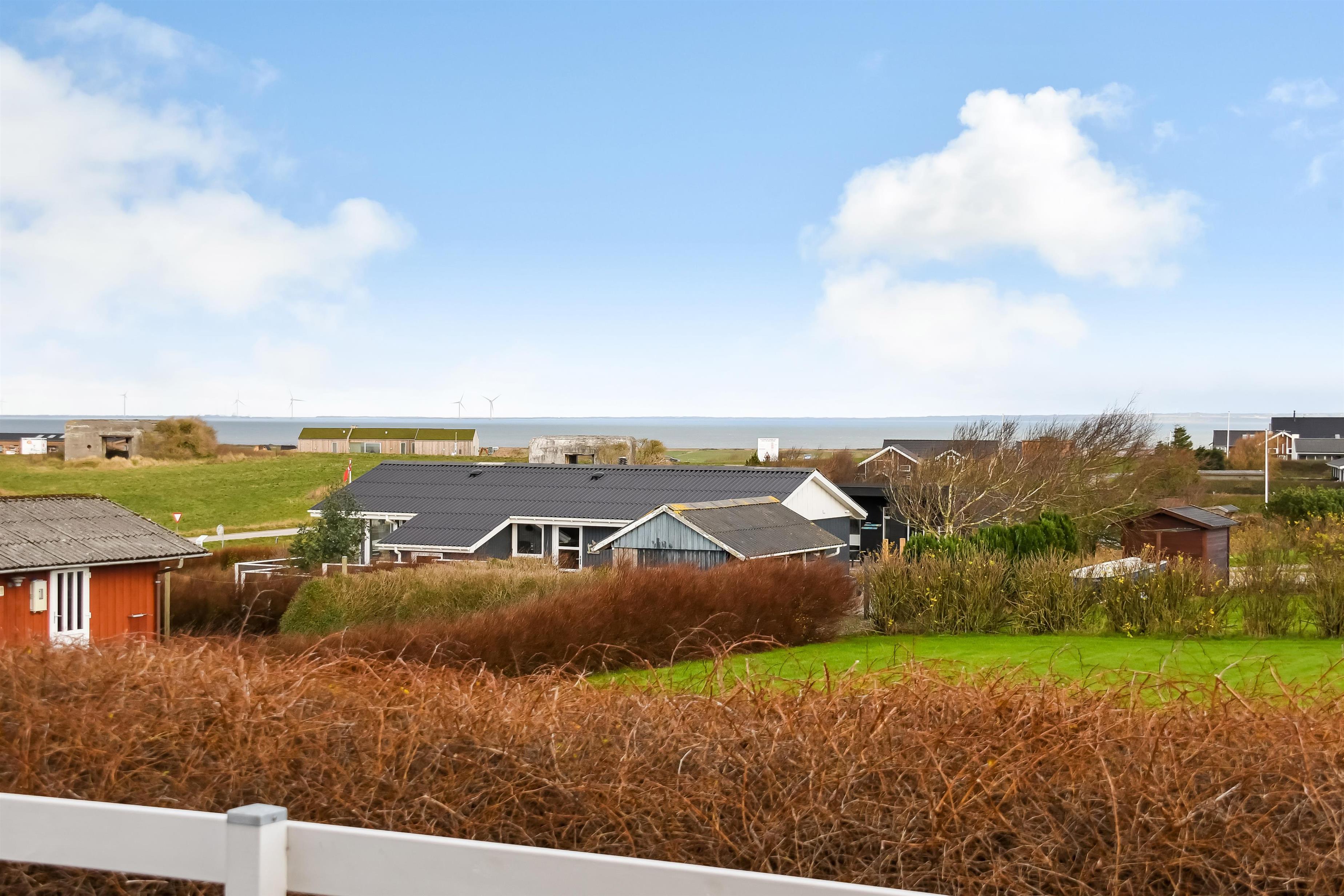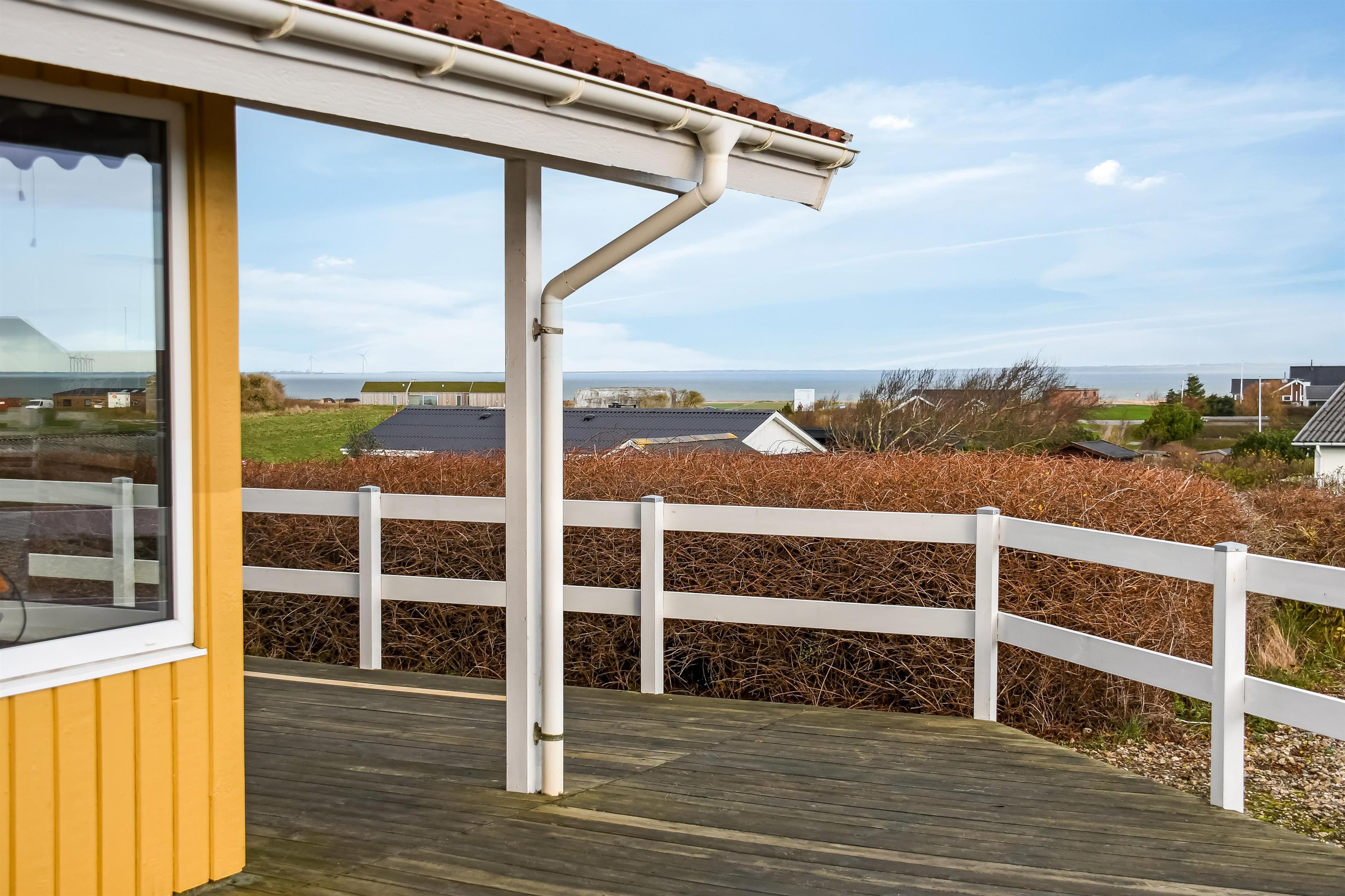 Udendørs er der en 125 m² stor terrasse, som omgiver huset, og der er altid et læfyldt sted at nyde solen. Til de mindste er der gynge og sandkasse, så børnene kan lege trygt. Nær ved huset ligger også den flotte naturlegeplads i træ med rutsjebaner, gynger og meget andet. Tæt ved huset findes også iskiosk og restaurant, som har åbnet i sæsonen. Der er i øvrigt kun ca. 6 km til Lemvig by, som er en livlig handelsby med mange butikker, fiskerestaurant, biograf, skaterbane, museum mm.