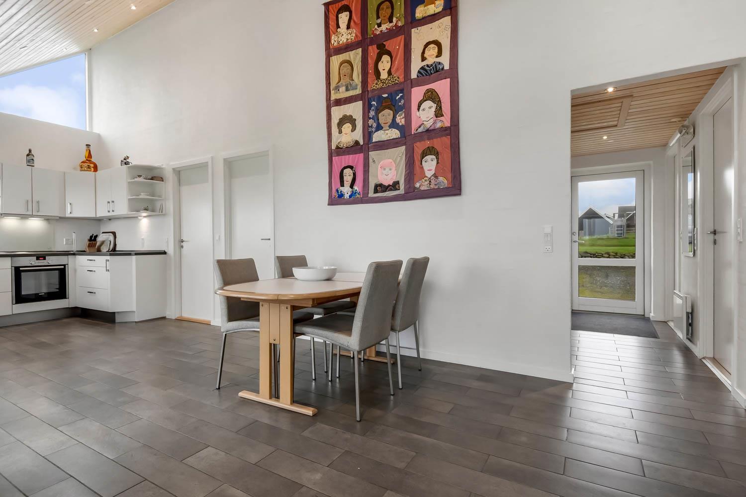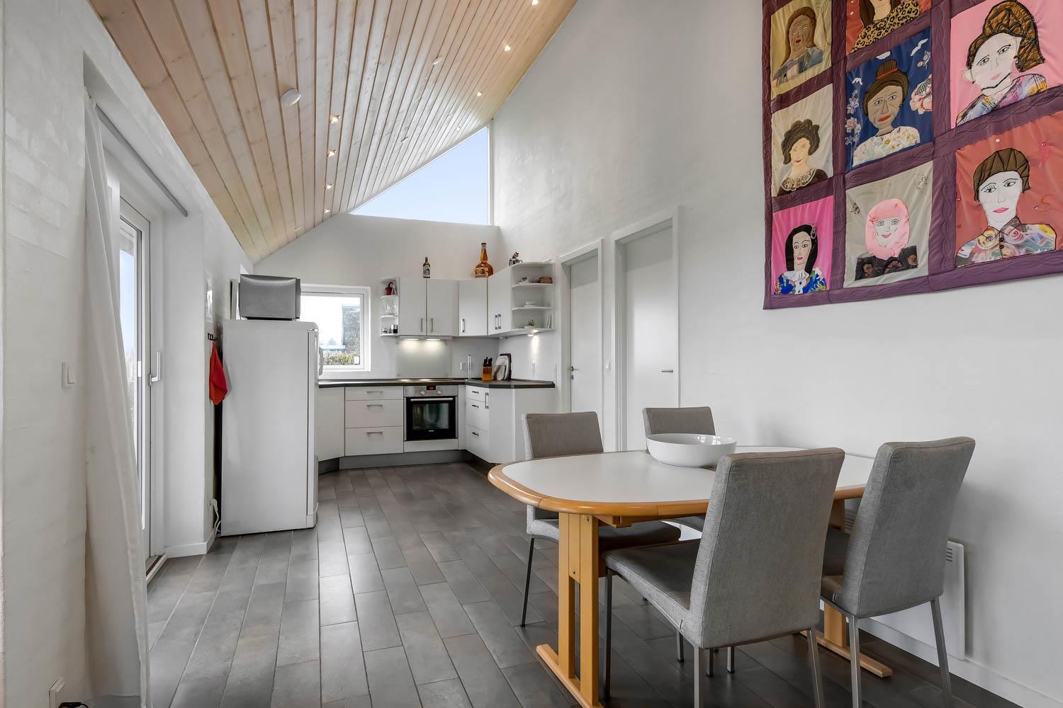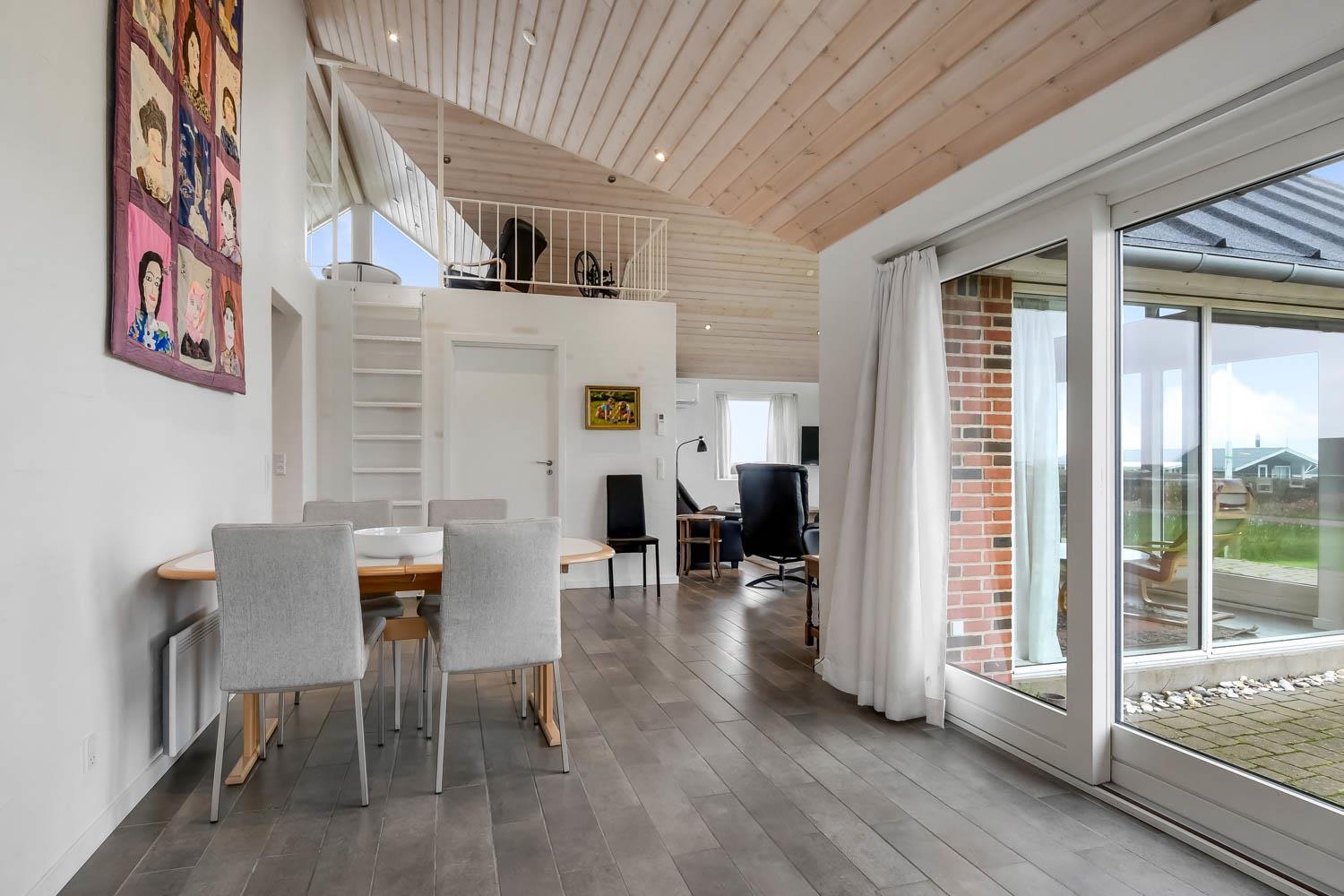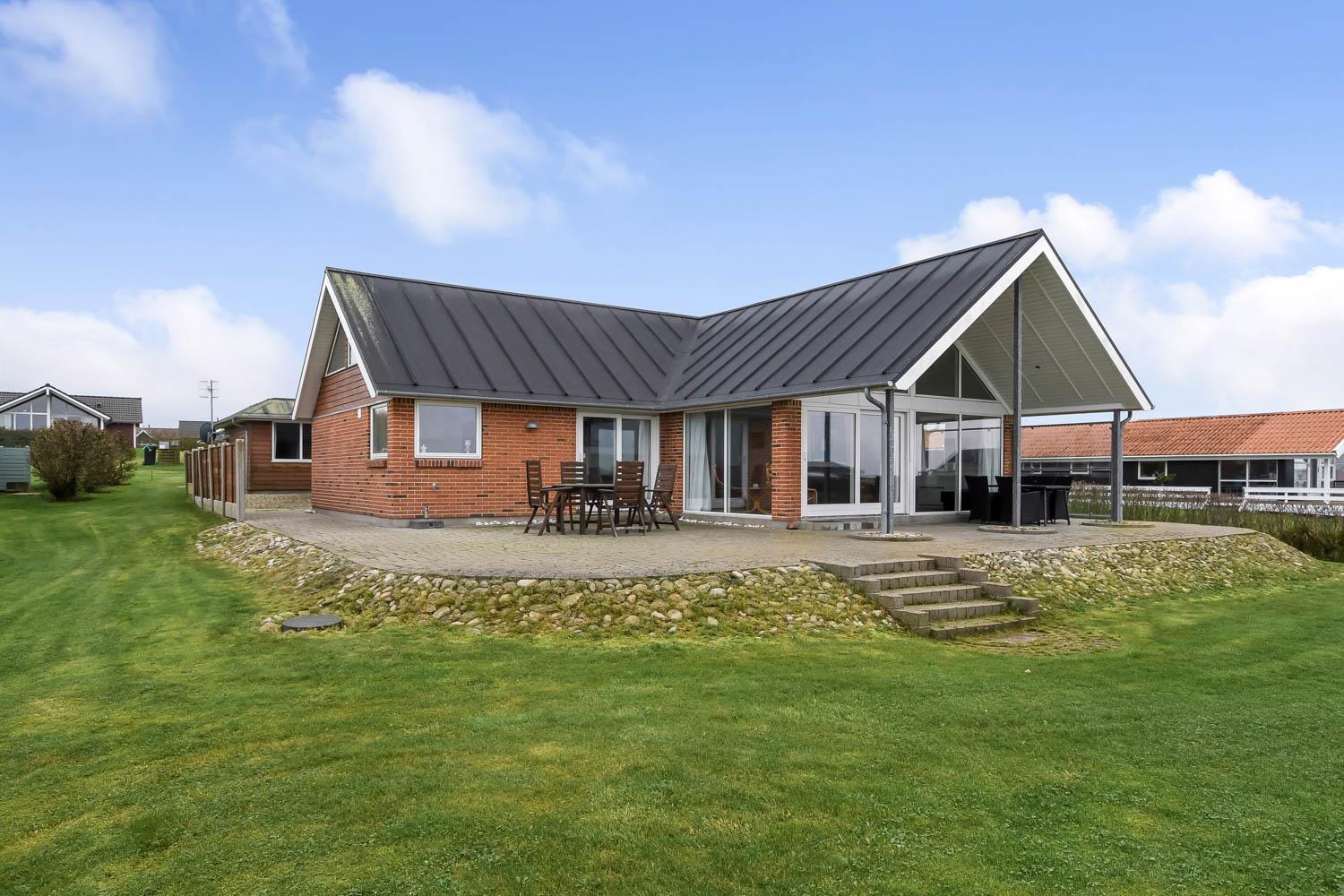 Beliggende på en ca. 800 m2 stor grund med en fantastisk flot udsigt over Limfjorden. Flot udført, delvis overdækket terrasse med havemøbler, liggestole samt udsigt til Limfjorden. Mulighed for massere af aktivitet da huset har et separat aktivitetsrum med siddepladser, bordfodbold, bob og fjernsyn med spillekonsol. Ved huset indkørsel er der en dejlig lukket terrasse med havemøbler hvor den næsten altid er læ. Fra huset findes der er dejligt stisystem som fører direkte ned til vandet på få min. Ca. 400 m fra huset ligger den nye flotte naturlegeplads i træ med fodboldbane og rutsjebane. Dette hus skal opleves. Der er kun fire km til Lemvig, som er en livlig handelsby med mange butikker, fiskerestaurant, museum m.m. Tager man bilen er en tur til Thyborøn en oplevelse i sig selv og klares på 20 min. Her er der flere forskellige aktiviteter som fiskeriauktion, Sea War Museum eller besøg det spændende Jyllandsakvarie, hvor børnene kan se og røre ved fisk og krabber, eller besøg det helt unikke Sneglehus. Dagen sluttes af med is i hånden, mens at I går tur langs havnekajen og ser på alle fiskekutterne.