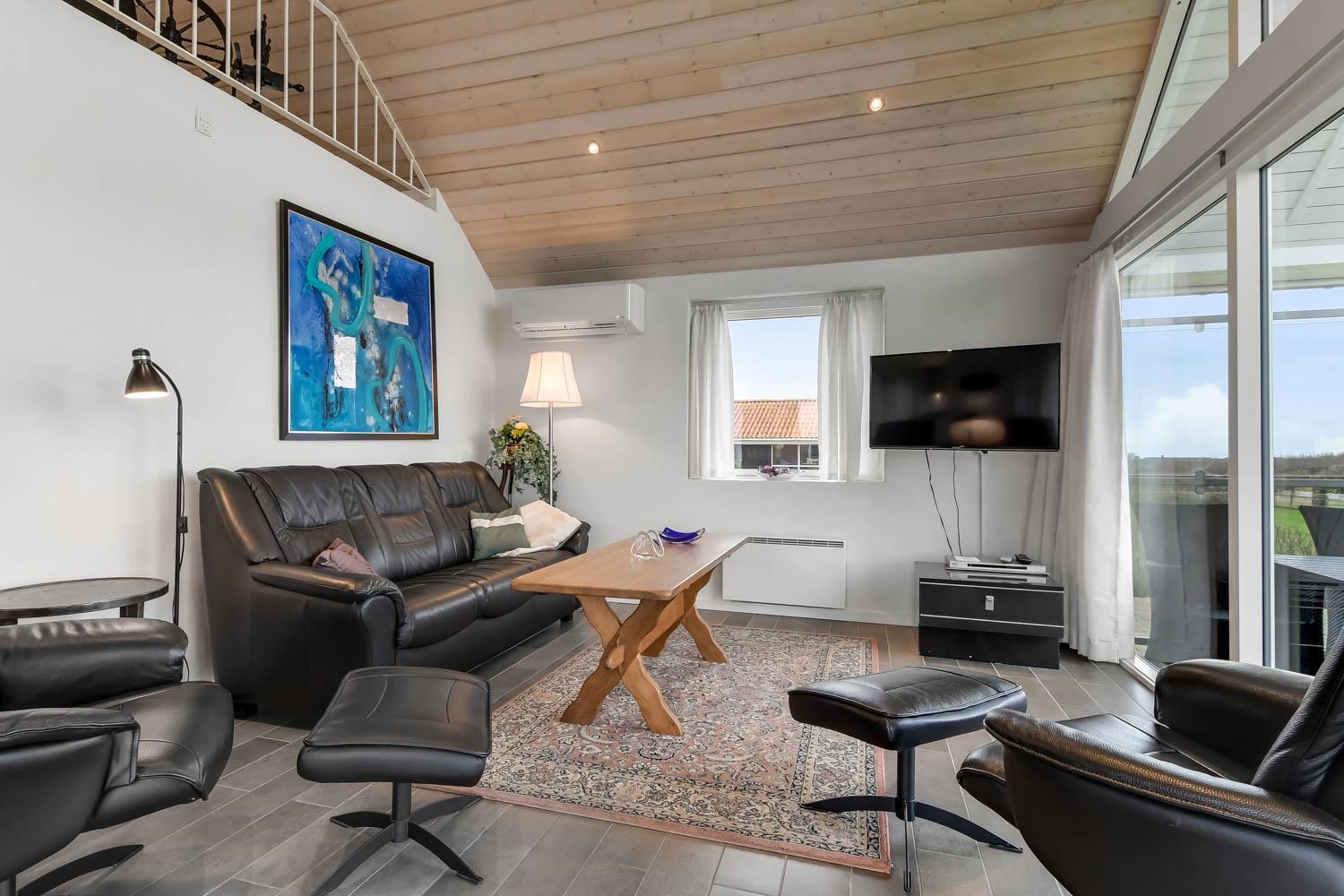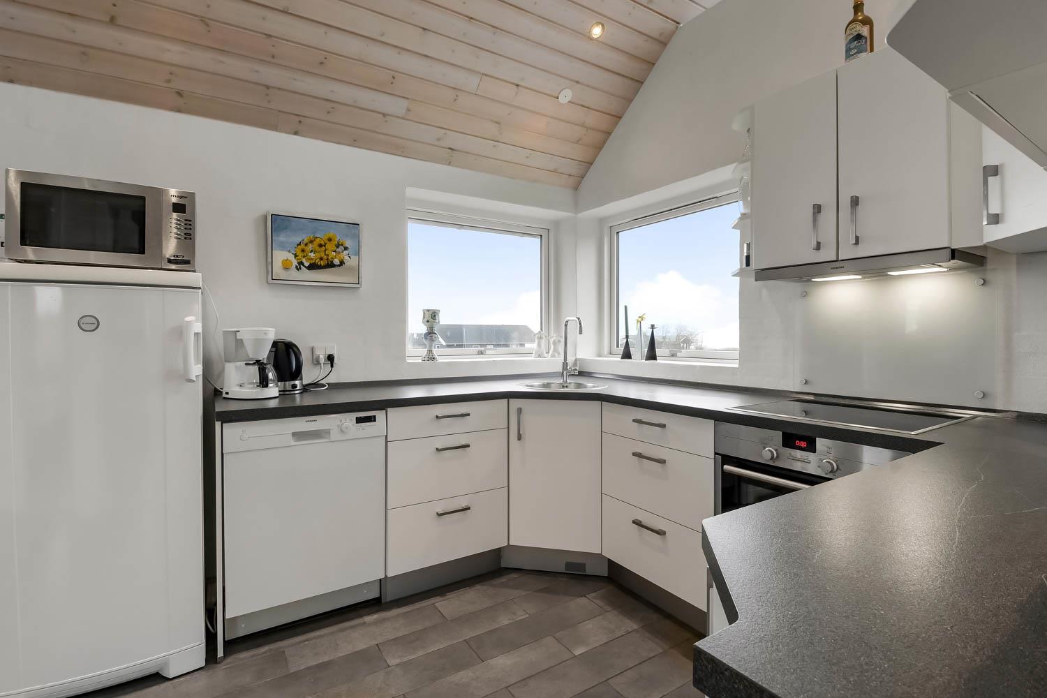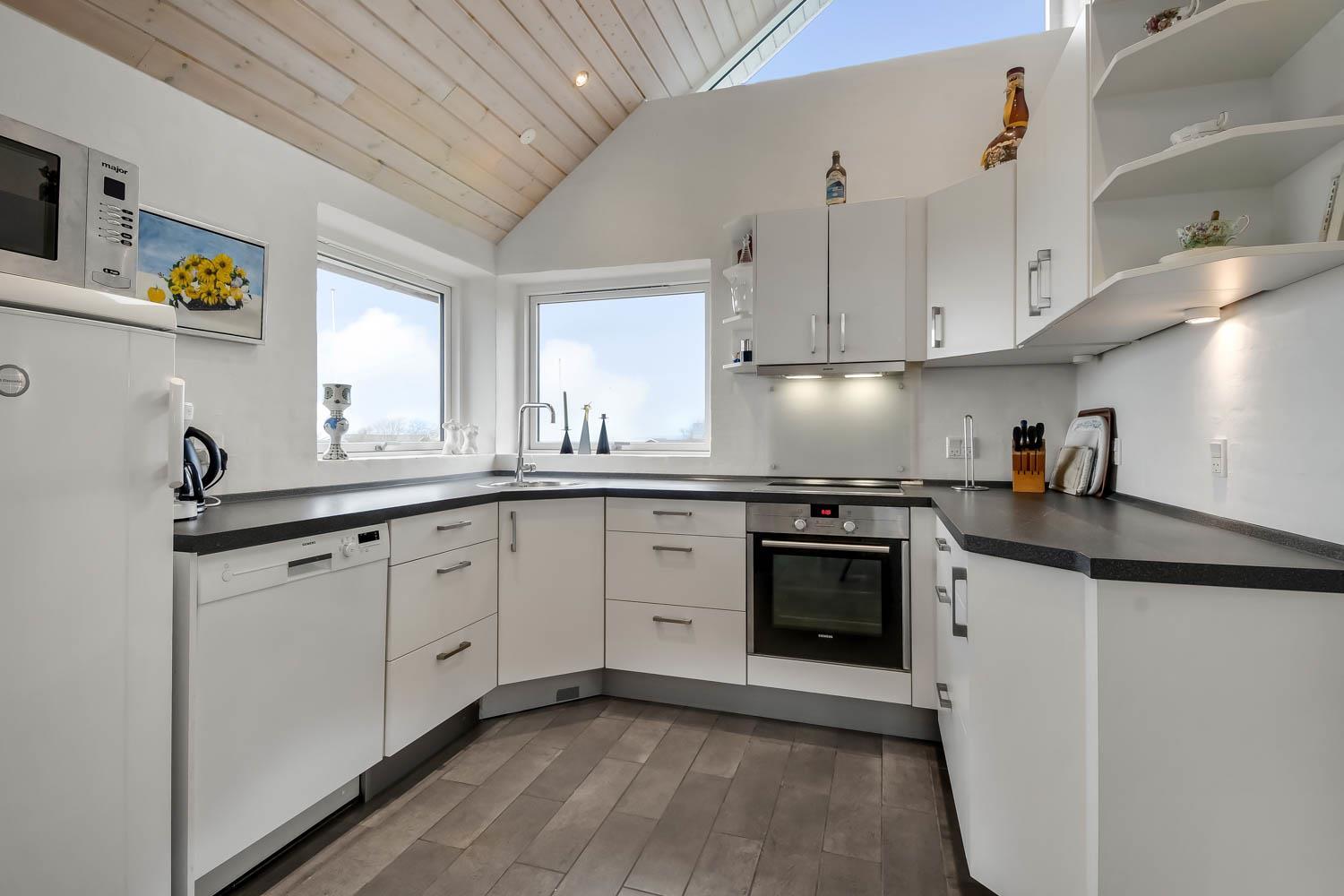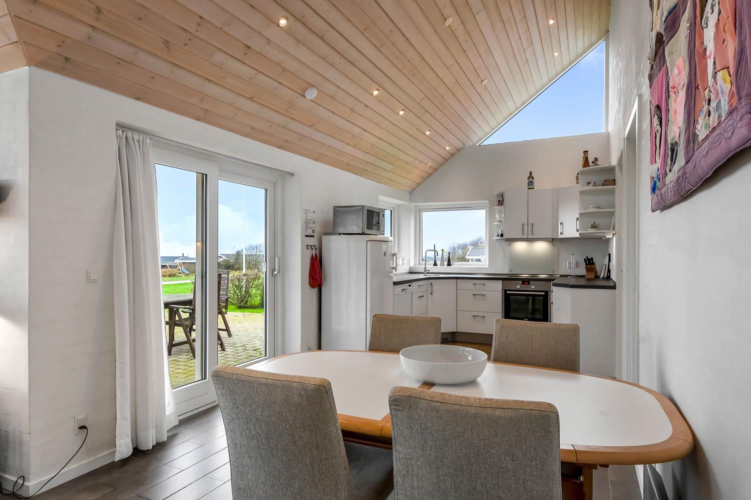 Særdeles velholdt feriehus fra 2013. 3 gode soverum (1DS, 1DS, 1ES) samt en hems, som kan tilgås af stejl stige, hvor du kan sidde og nyde udsigten over landskabet. Veludstyret køkkenhjørne med alt i service og køkkengrej, opvaskemaskine, glaskeramisk komfur, emhætte, mikroovn og køleskab med fryseboks. Sæt maden på spisebordet som er placeret tæt ved køkkenhjørnet. Opholdsstue med specielle, rustikke møbler, fladskærms- farve TV med tyske og danske programmer, DVD-, CD-afspiller og radio. Stort flot badeværelse med bruser, toilet, håndvask, spabad, gulvvarme, vaskemaskine og tørretumbler. Ekstra toilet med toilet, håndvask og gulvvarme. Klinkegulve i alle opholdsrum og soverum med trægulve. Huset er meget rengøringsvenligt og har varmepumpe som giver et lavere forbrug. Ikke ryger hus. Husdyr ikke tilladt.
